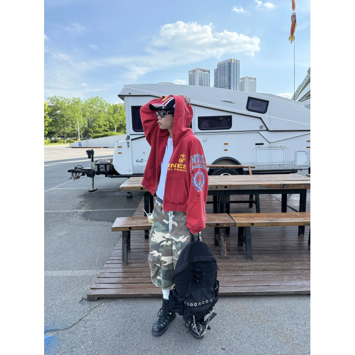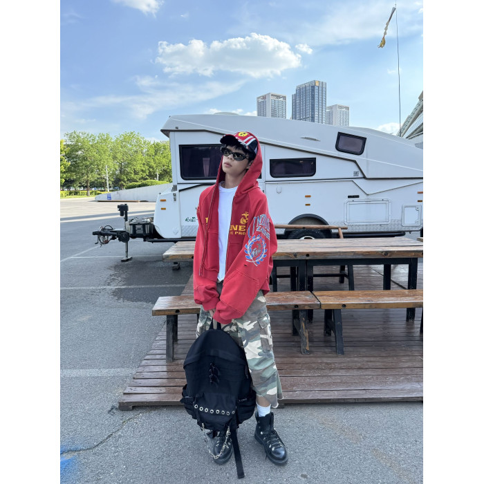 GRAILZ LEARL PROJECT G/R水洗解搆拼接連帽刺綉印花衛衣外套男女