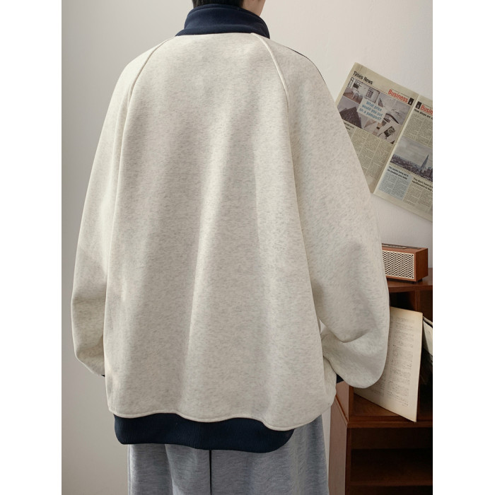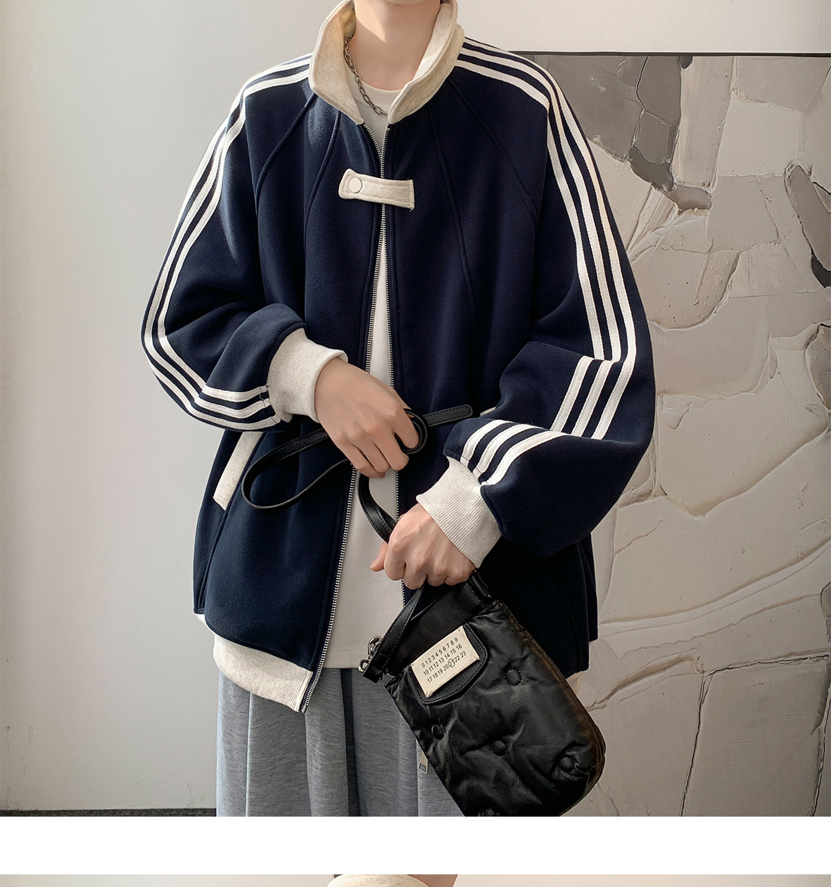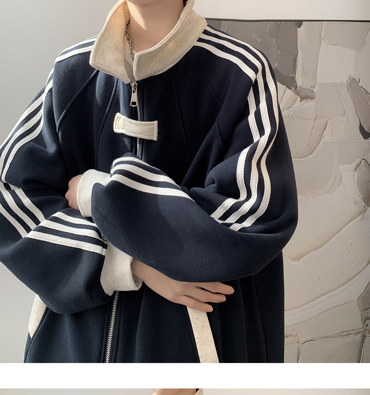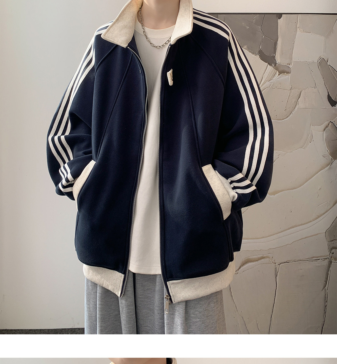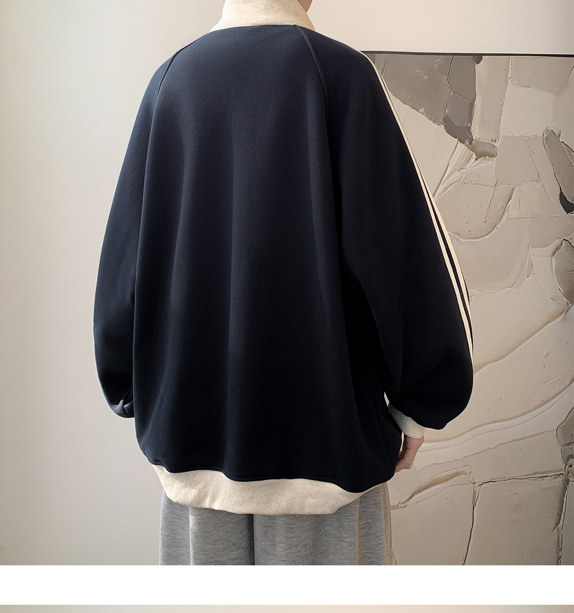 真維斯美式拼接立領開衫衛衣男秋季青少年寬松痞帥條紋棒球服外套