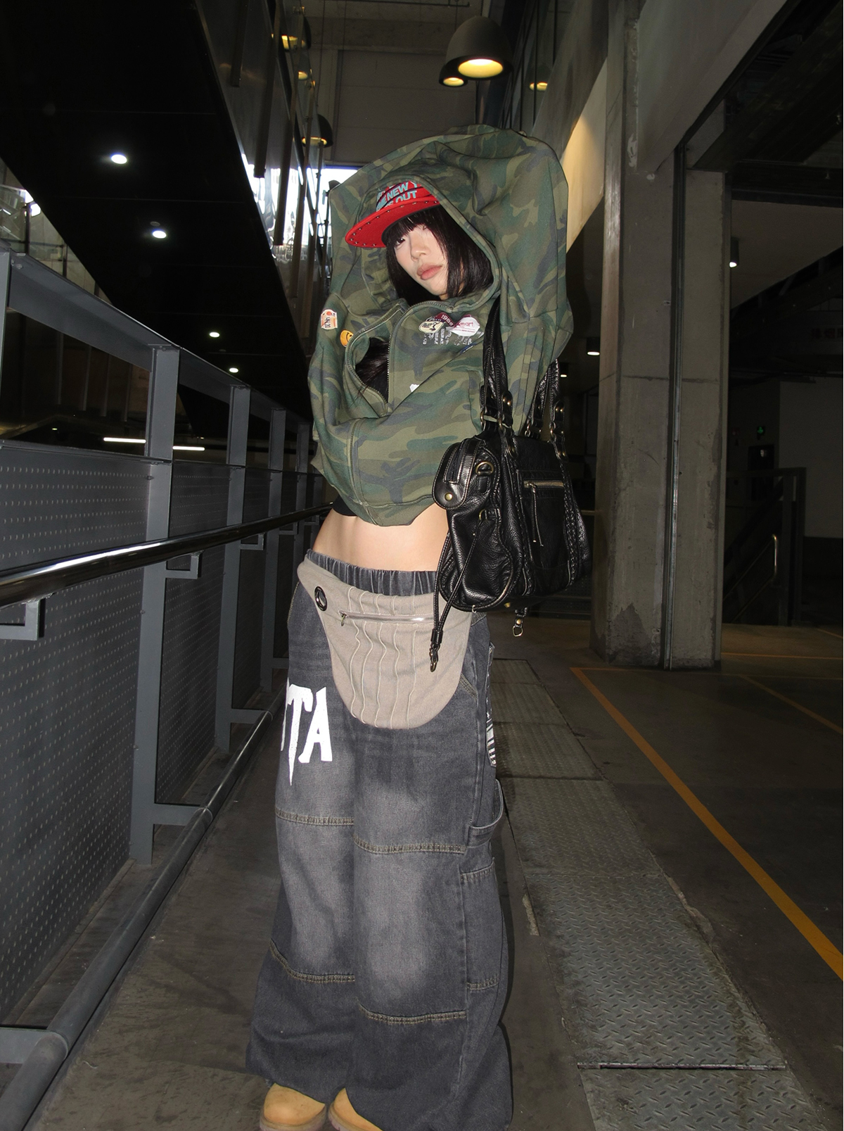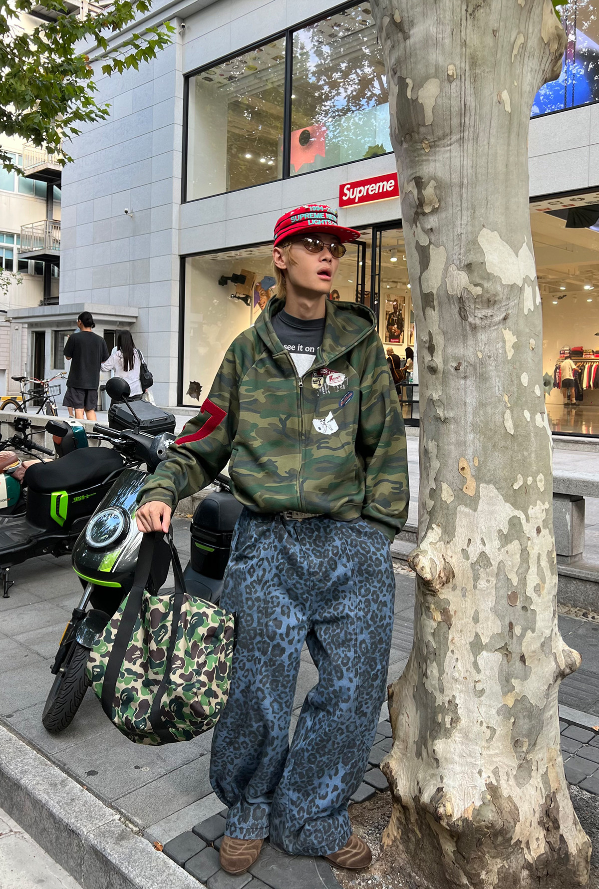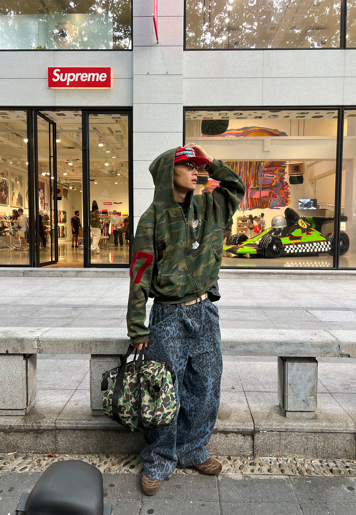 EAHO 美式潮牌迷彩加絨開衫連帽衛衣男女秋冬寬松休閒百搭帽衫