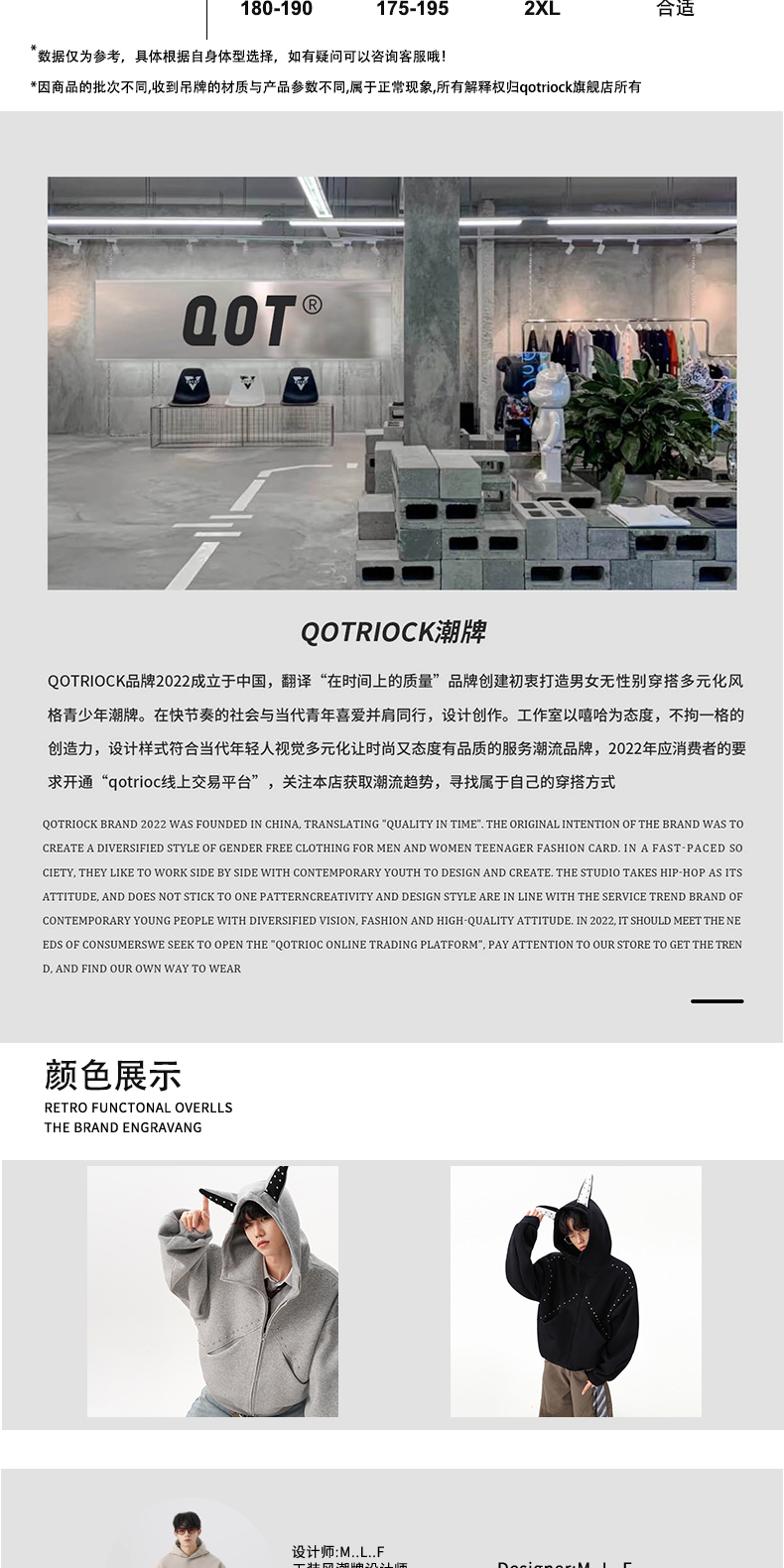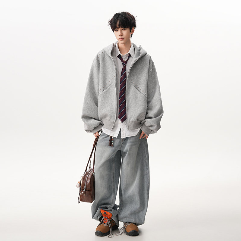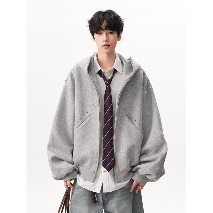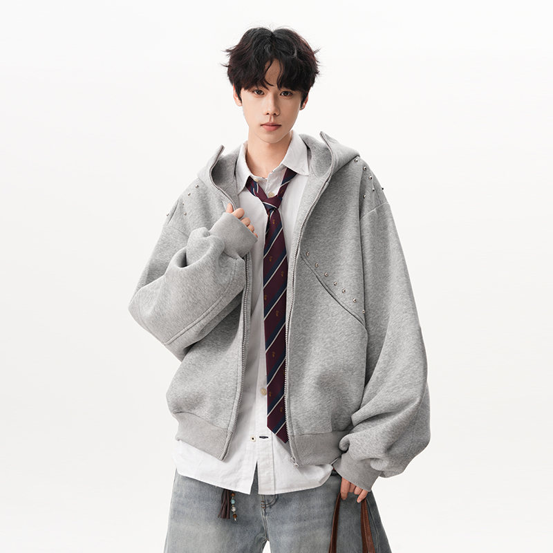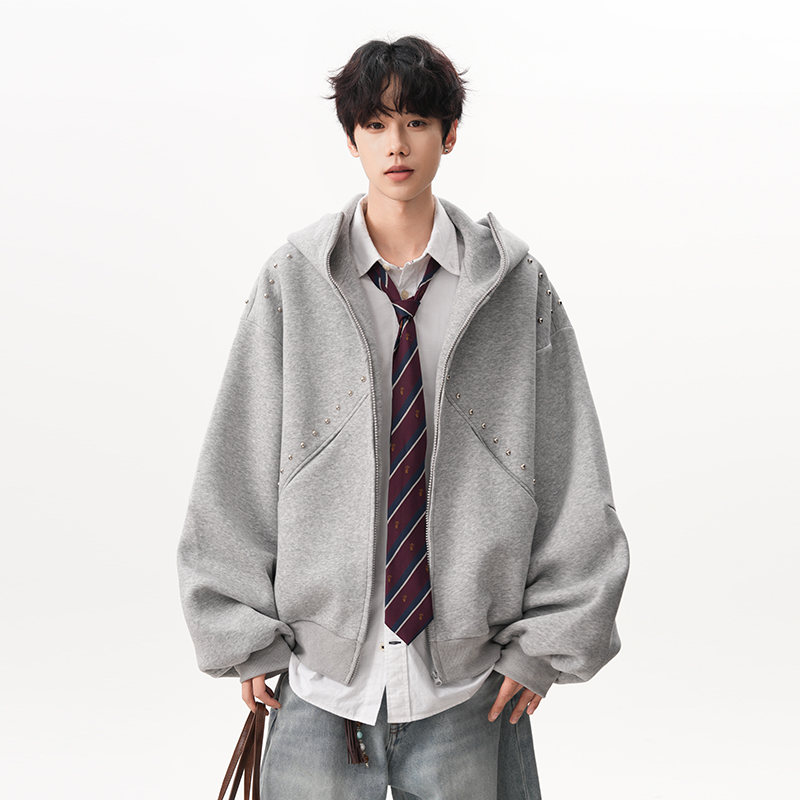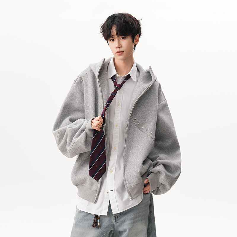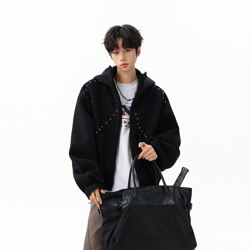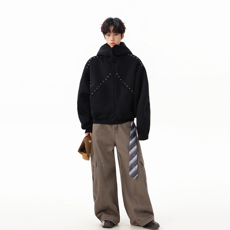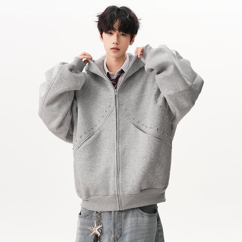設計感鉚釘拼接杜賓犬耳連帽衛衣男女秋季潮小衆百搭重磅情侶外套