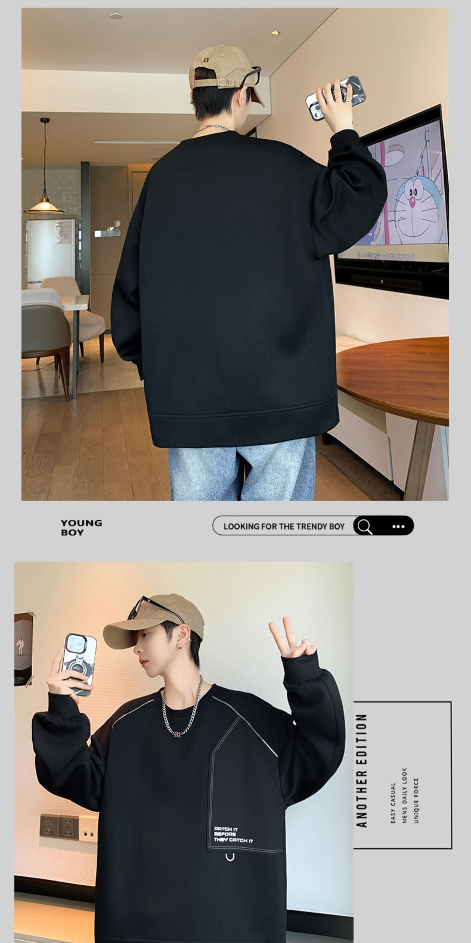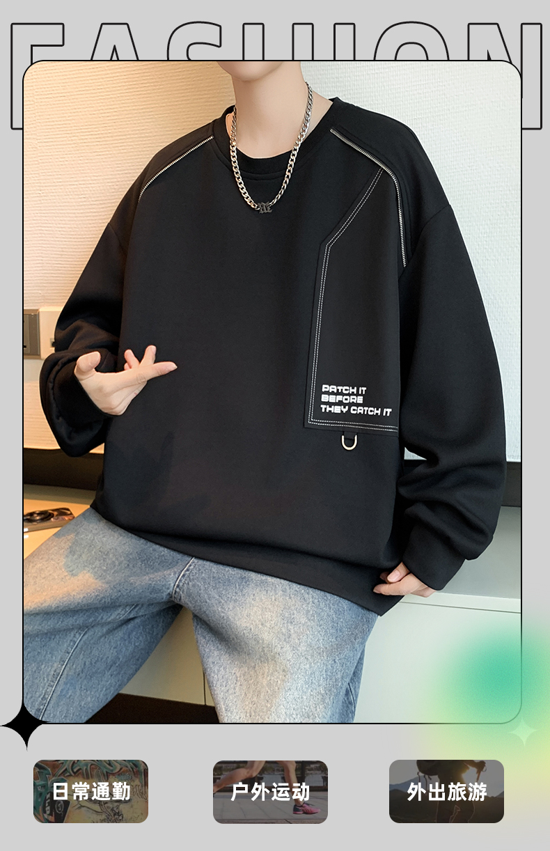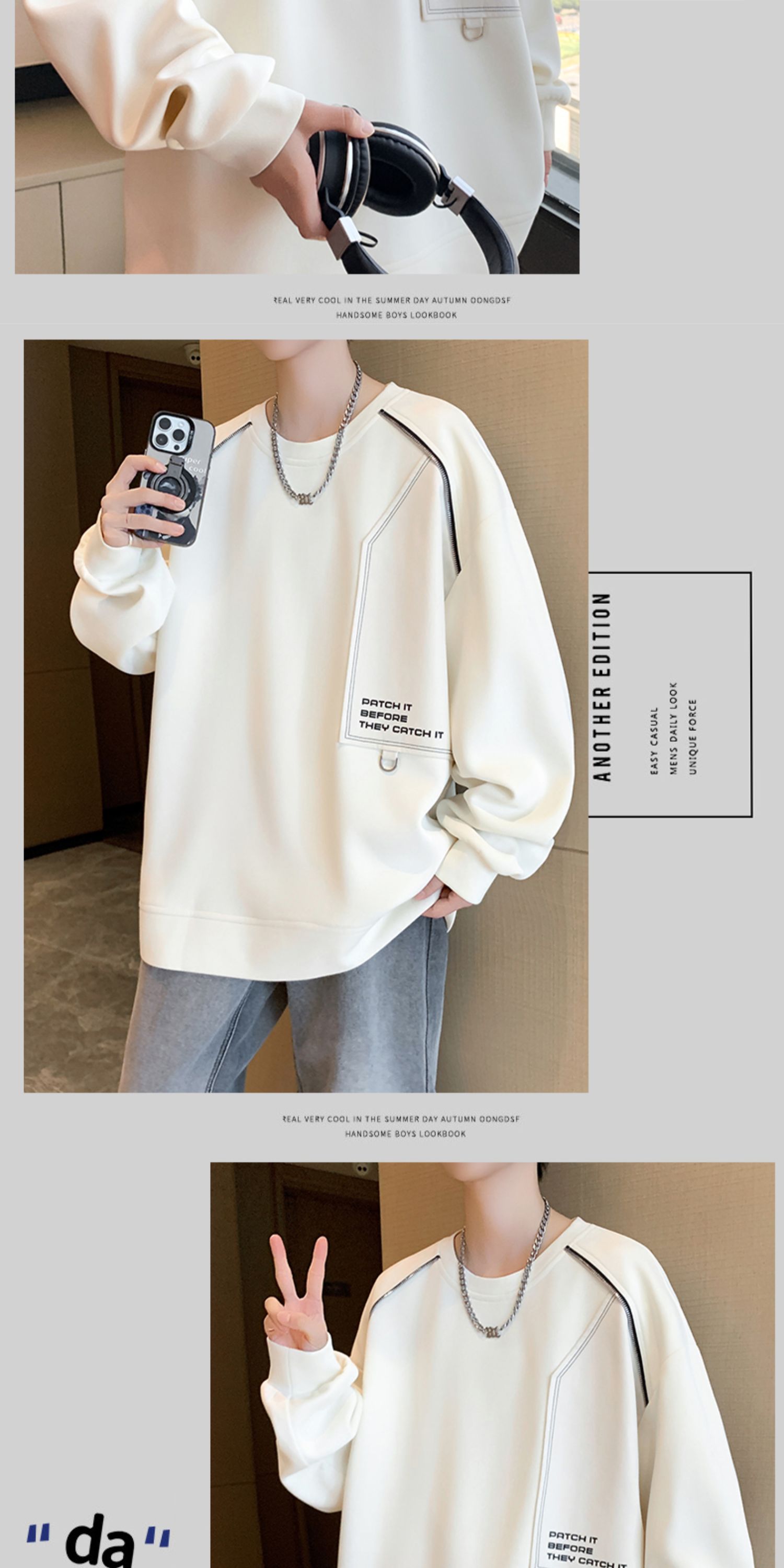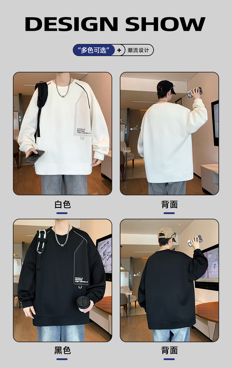 結搆分割衛衣男秋冬季潮牌重磅加絨打底衫寬松內搭上衣青少年體恤