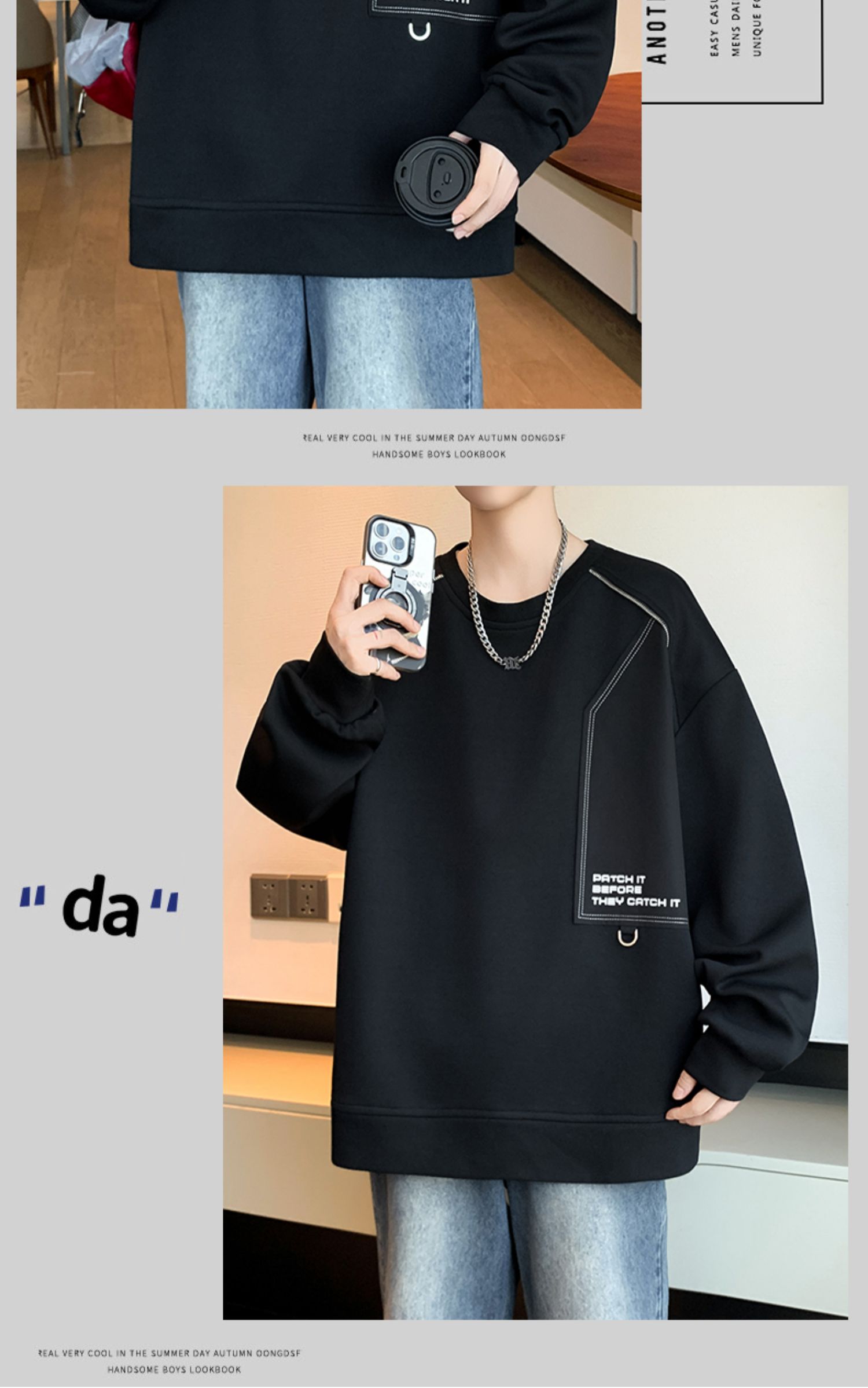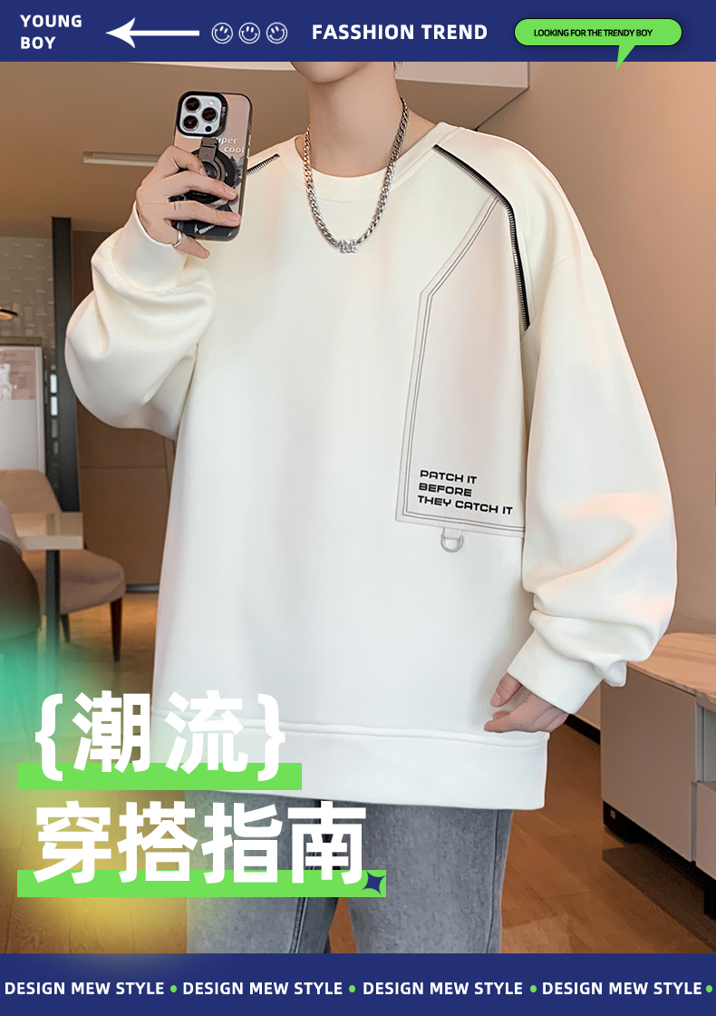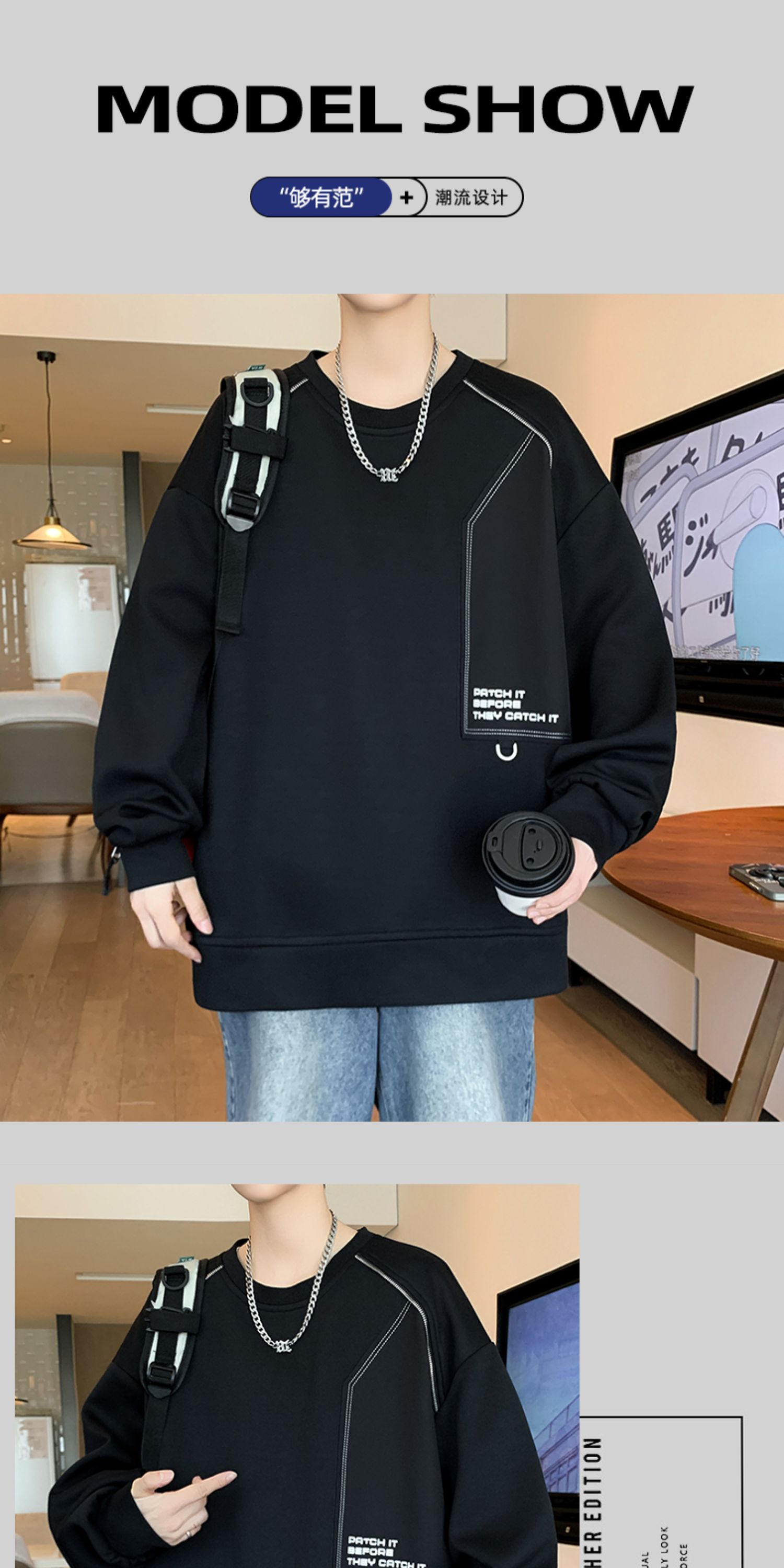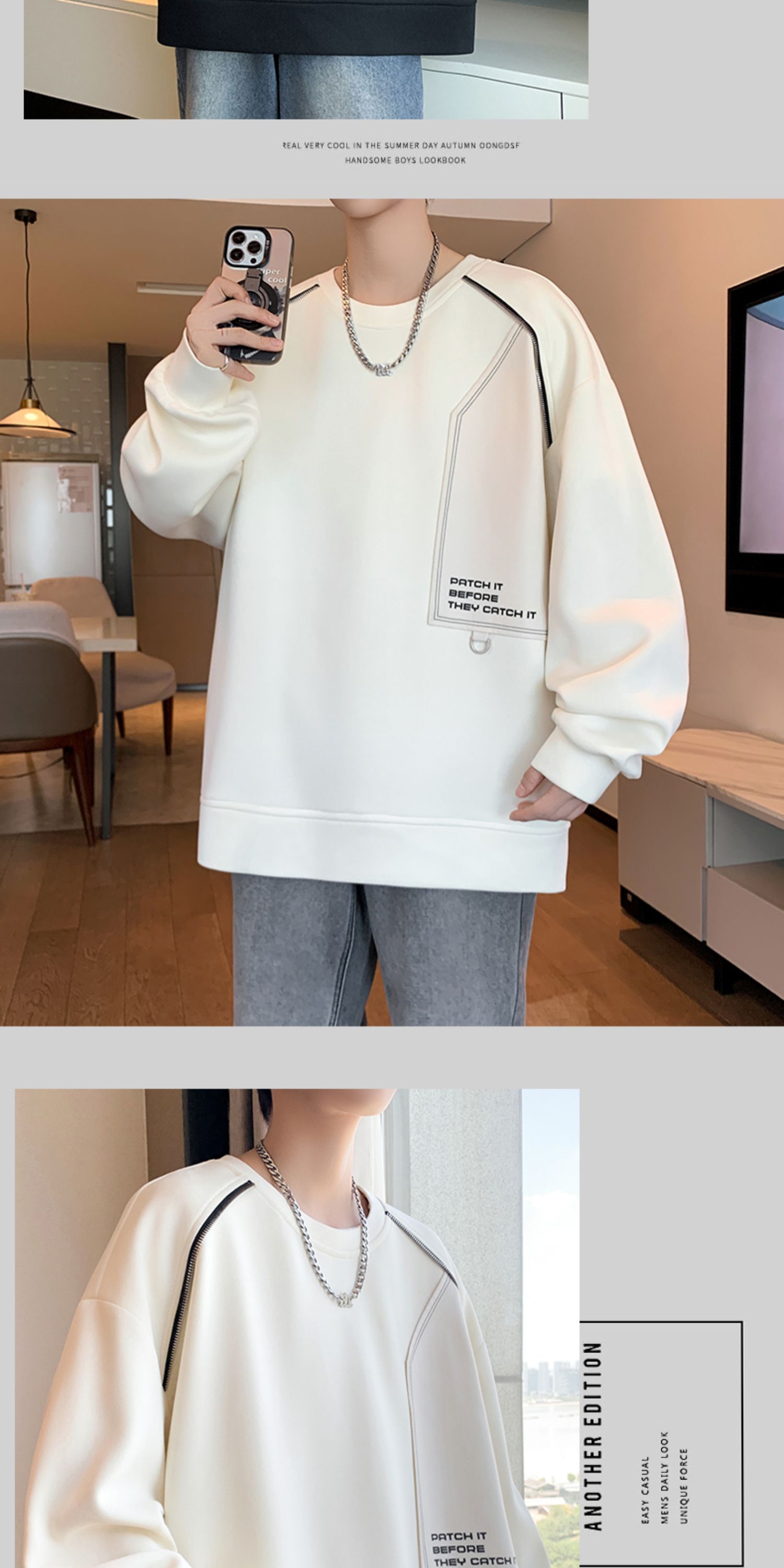 結搆分割衛衣男秋冬季潮牌重磅加絨打底衫寬松內搭上衣青少年體恤