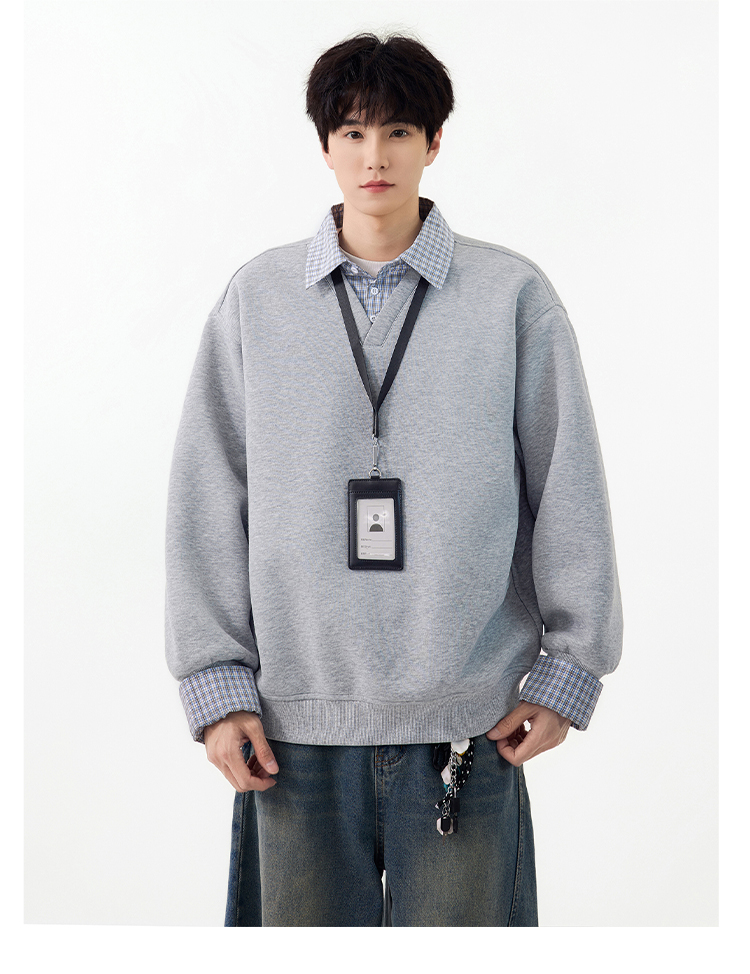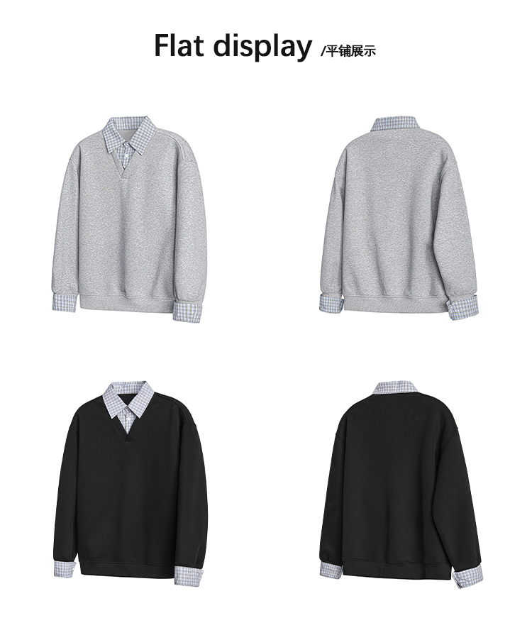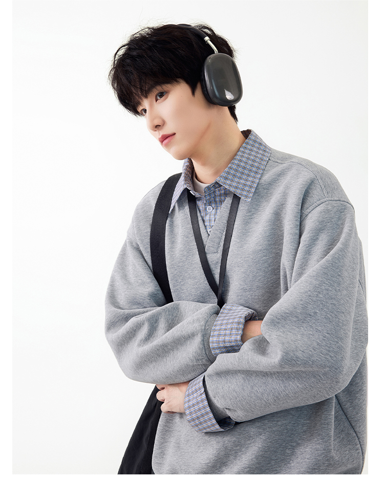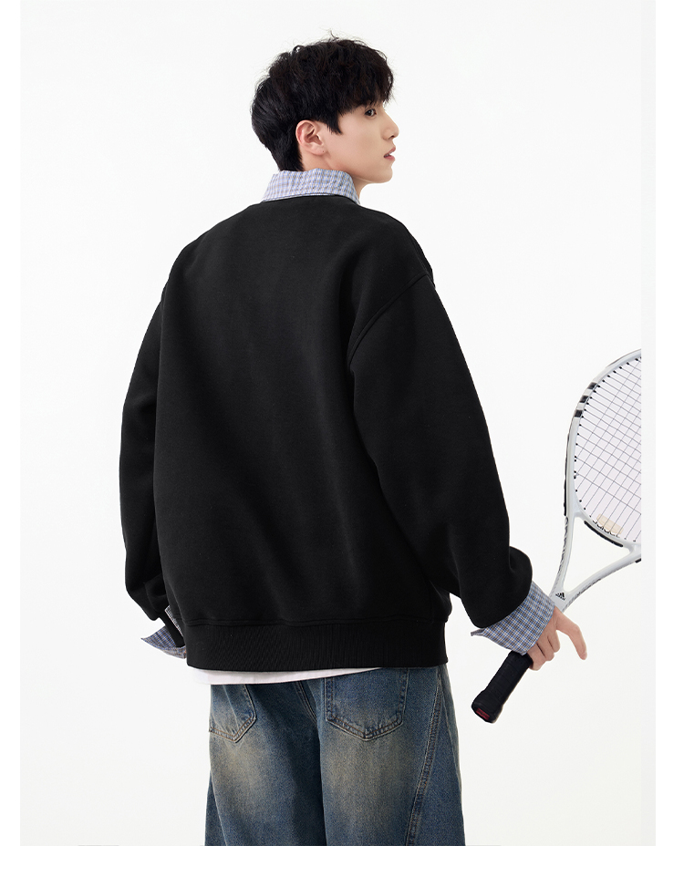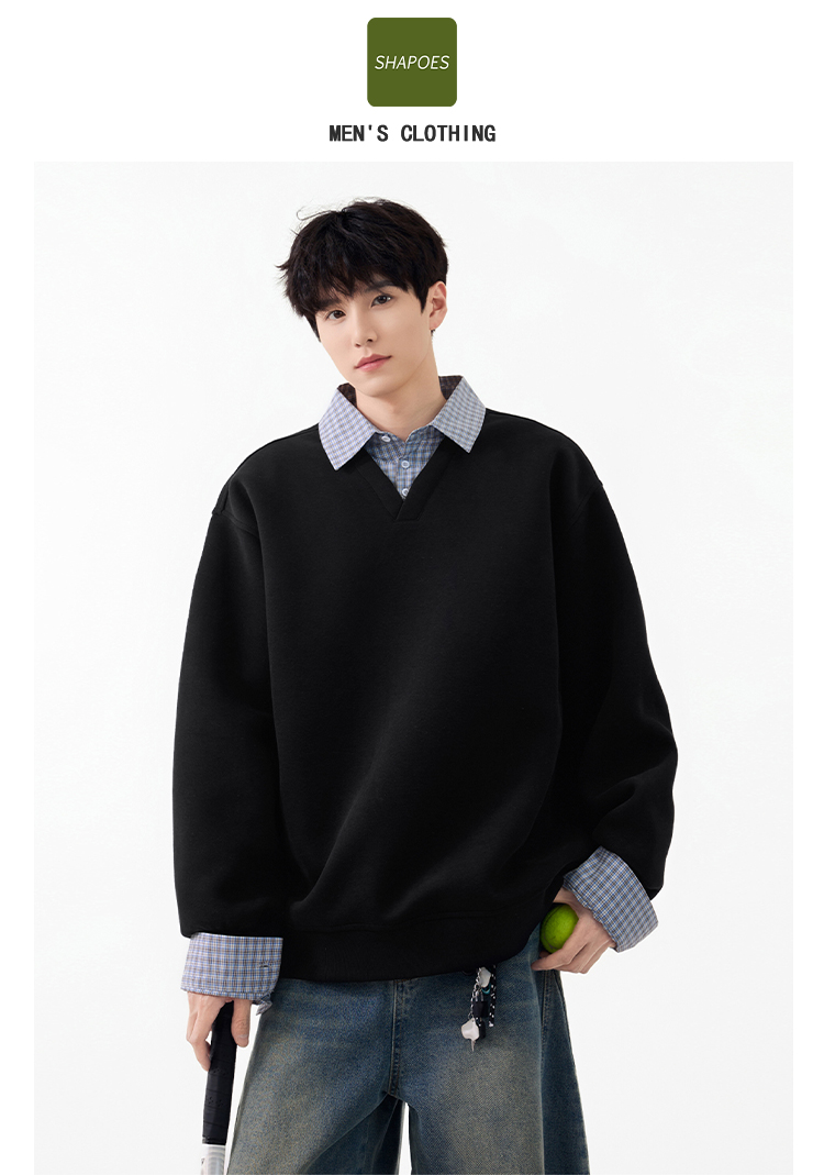 SHAPOES春秋季男生美式重磅寬松休閒衛衣情侶男士格子領襯衫上衣