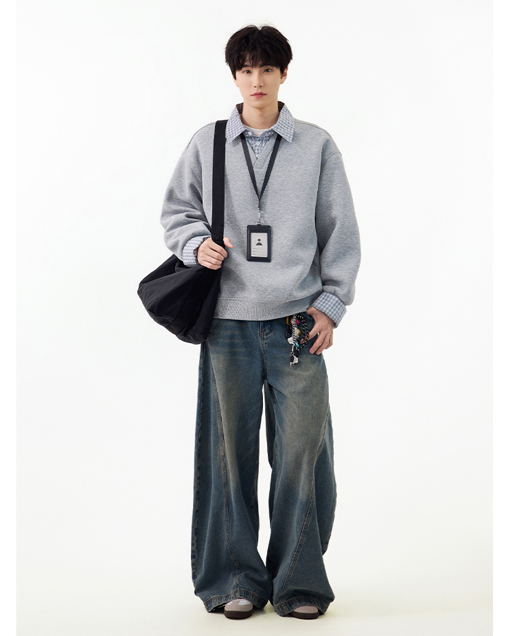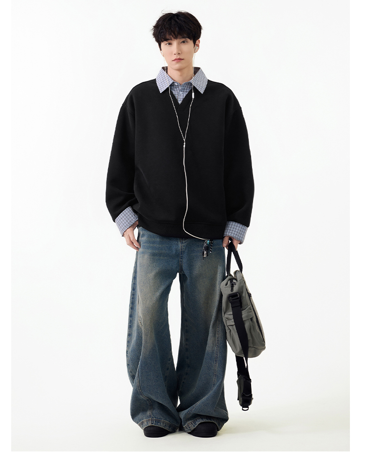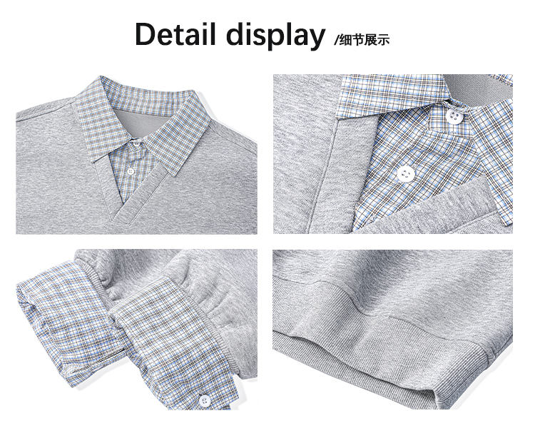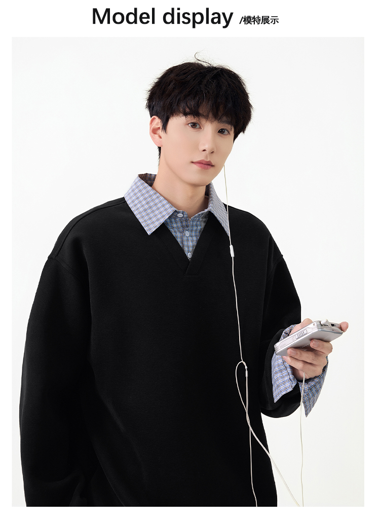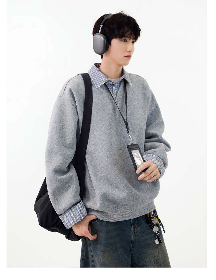 SHAPOES春秋季男生美式重磅寬松休閒衛衣情侶男士格子領襯衫上衣