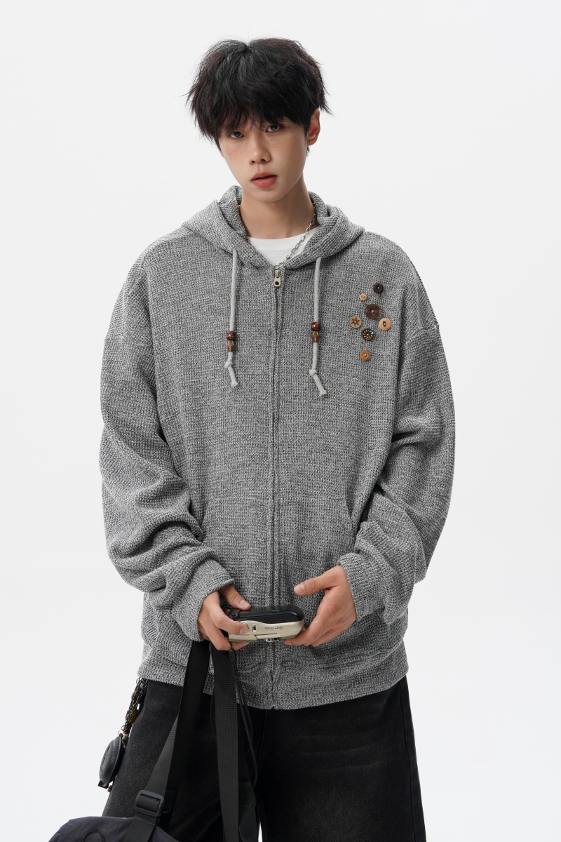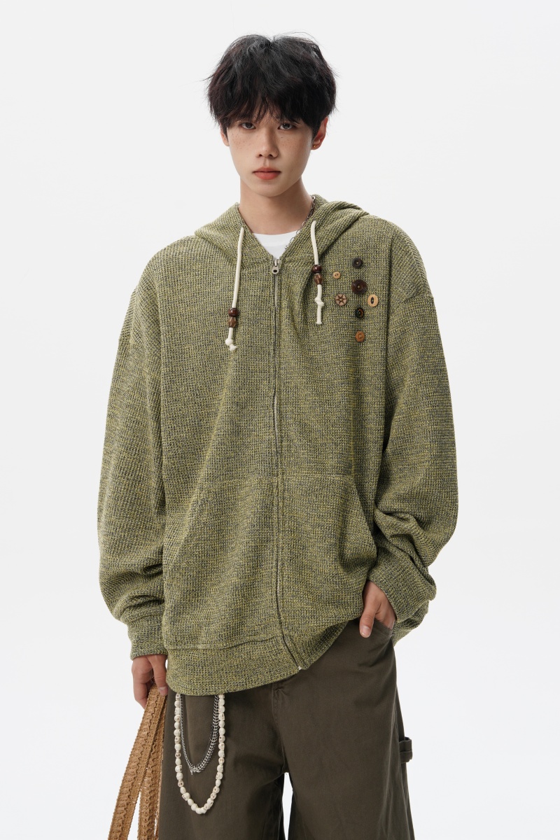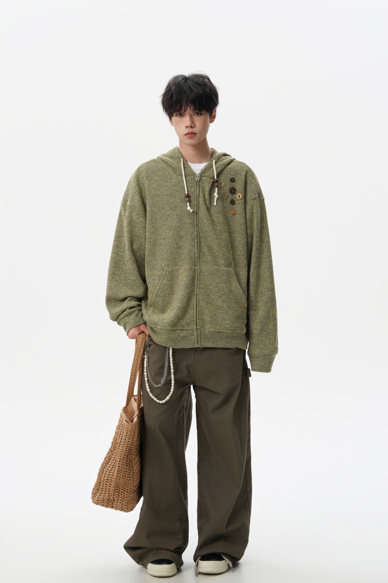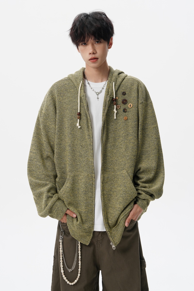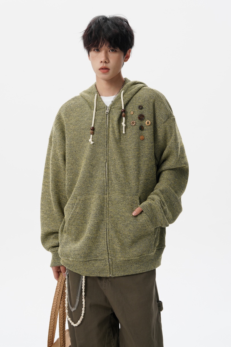 美式針織長袖衛衣男女秋季潮牌紐釦設計情侶外套復古寬松開衫上衣
