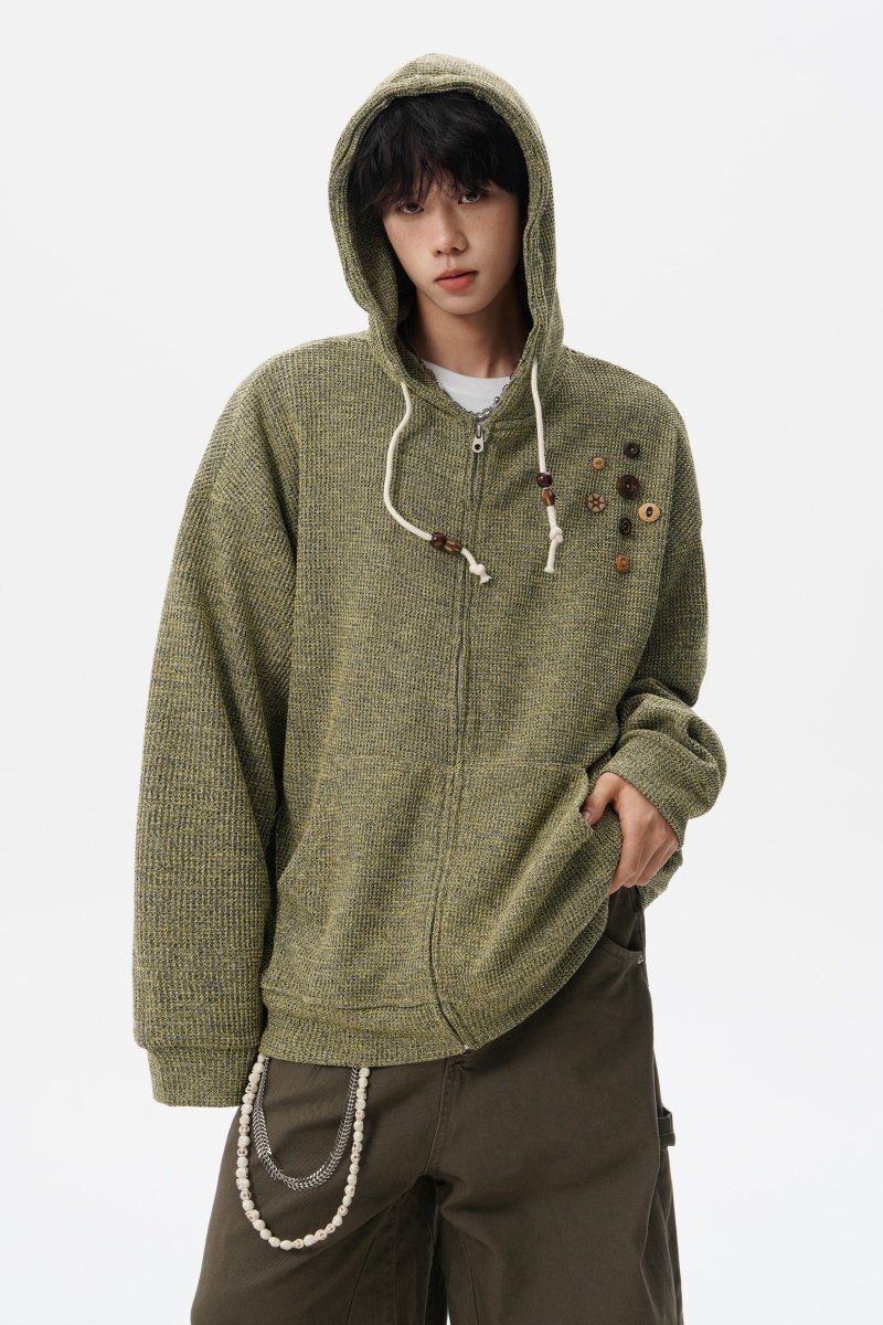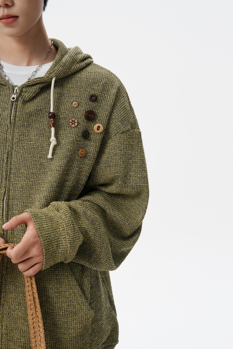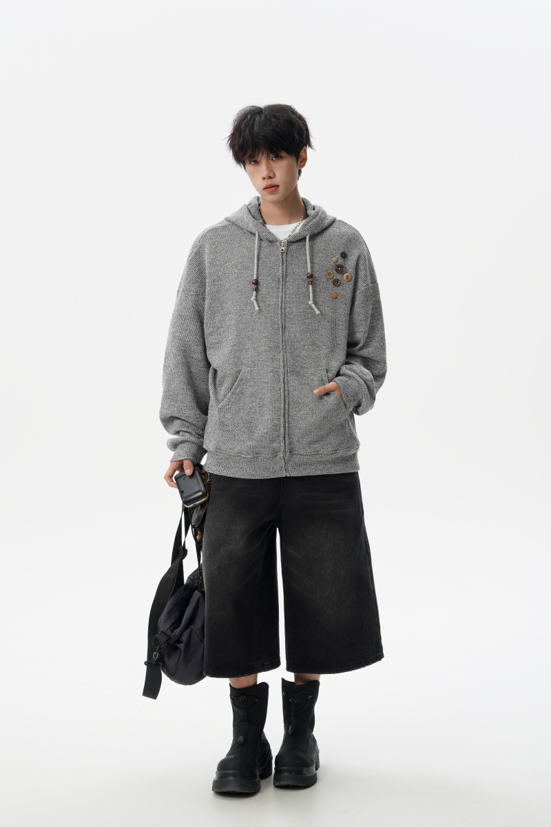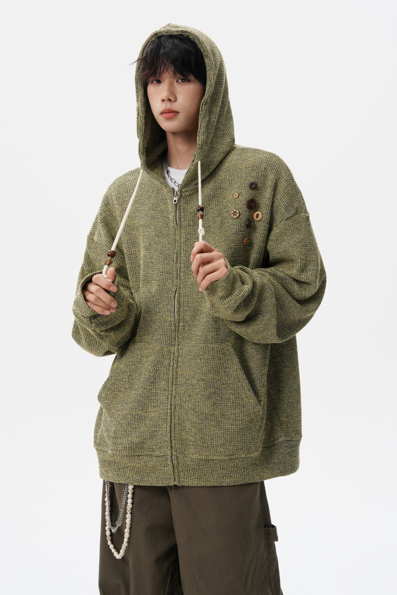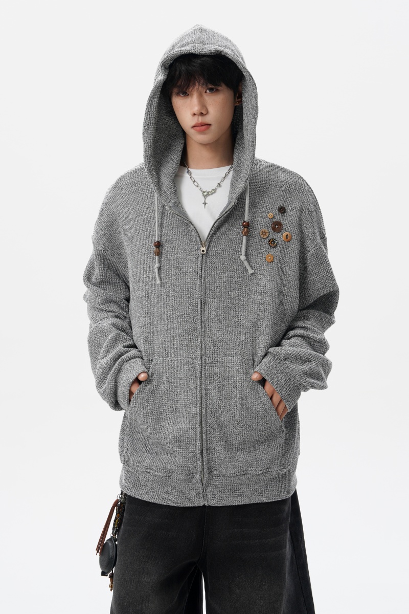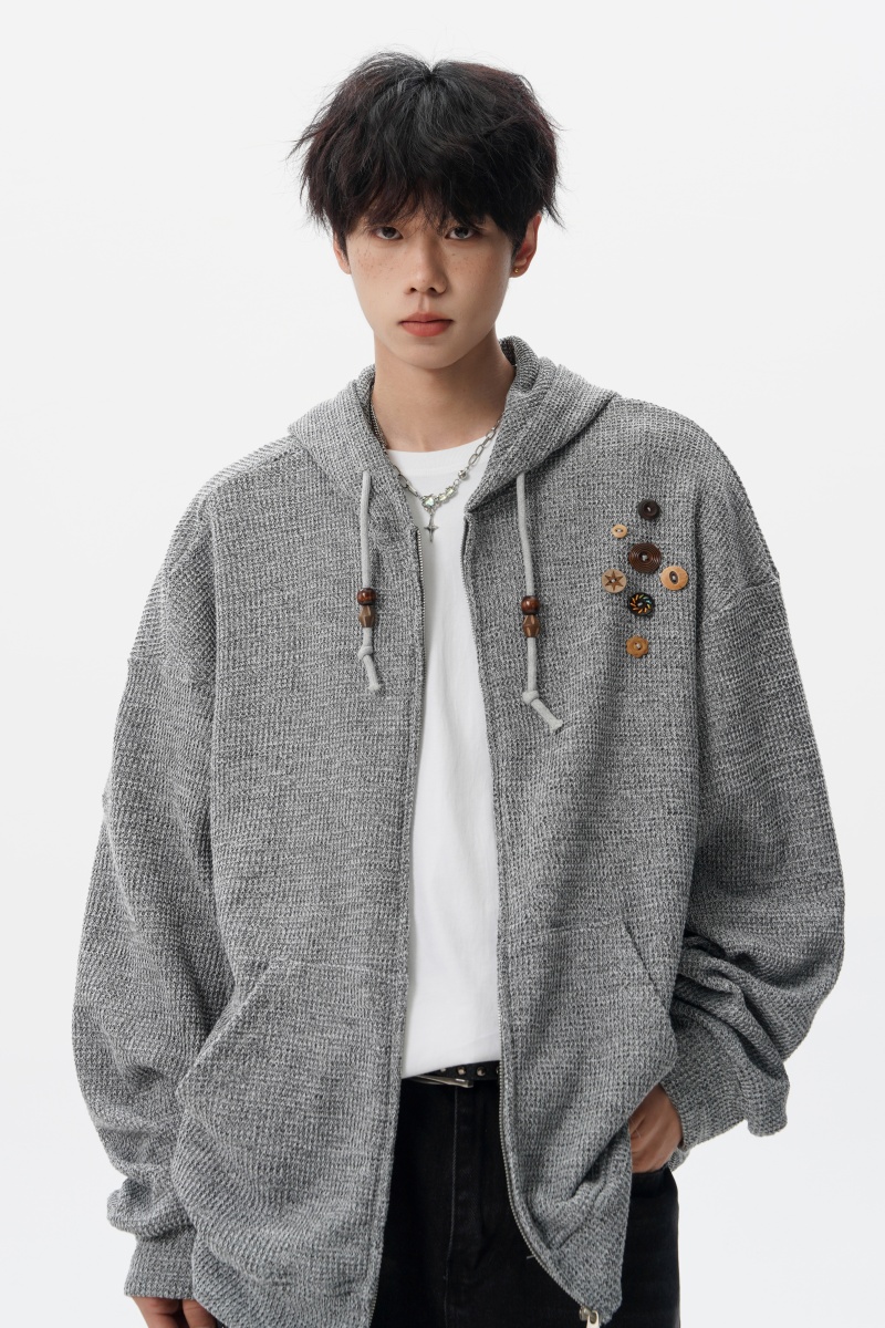 美式針織長袖衛衣男女秋季潮牌紐釦設計情侶外套復古寬松開衫上衣