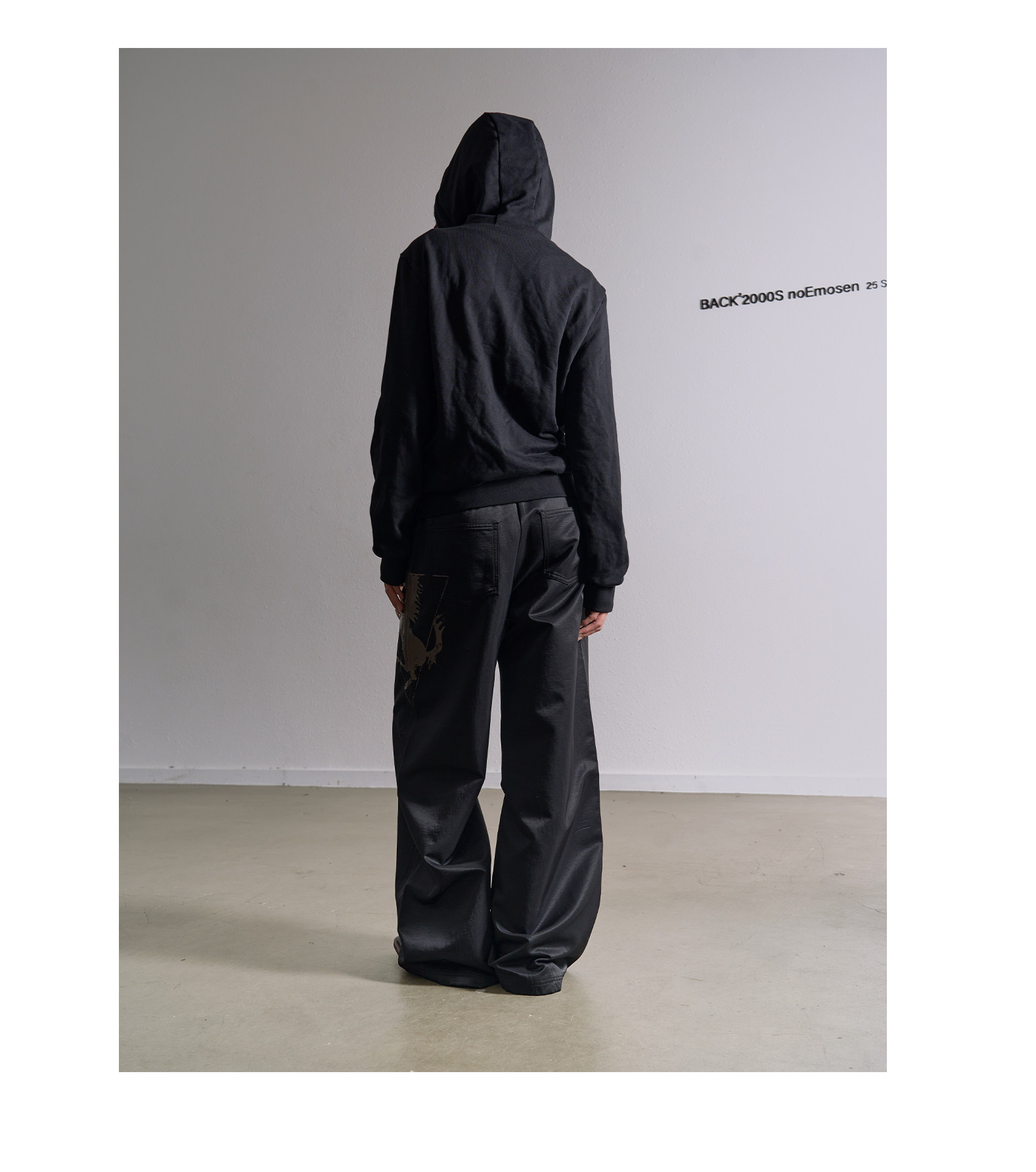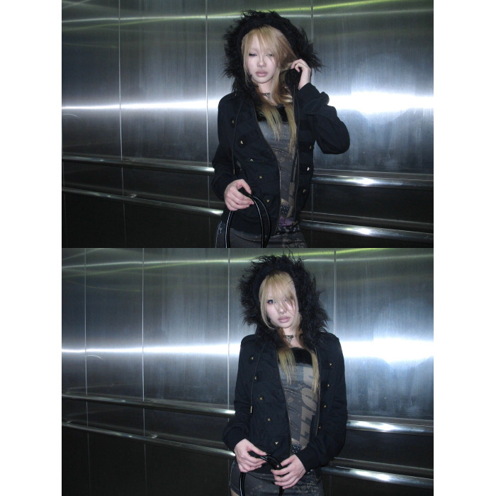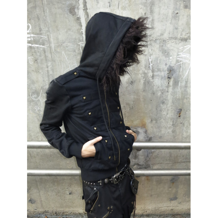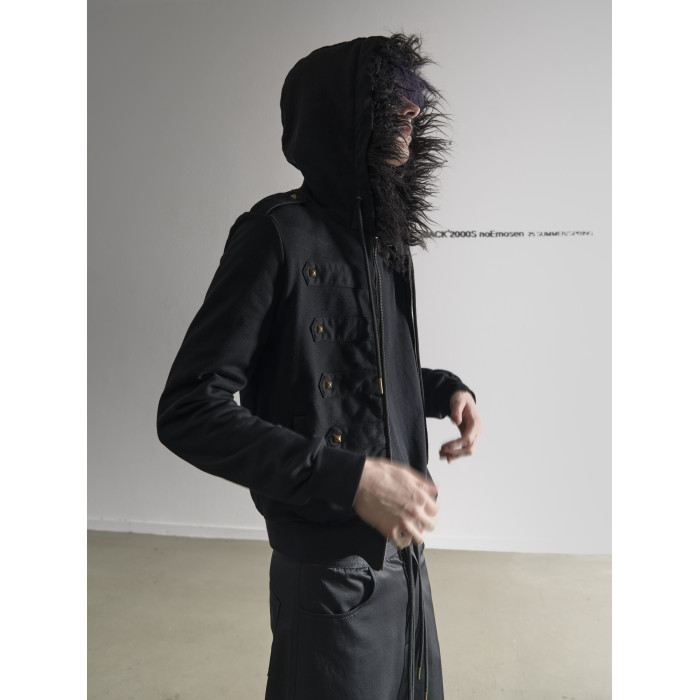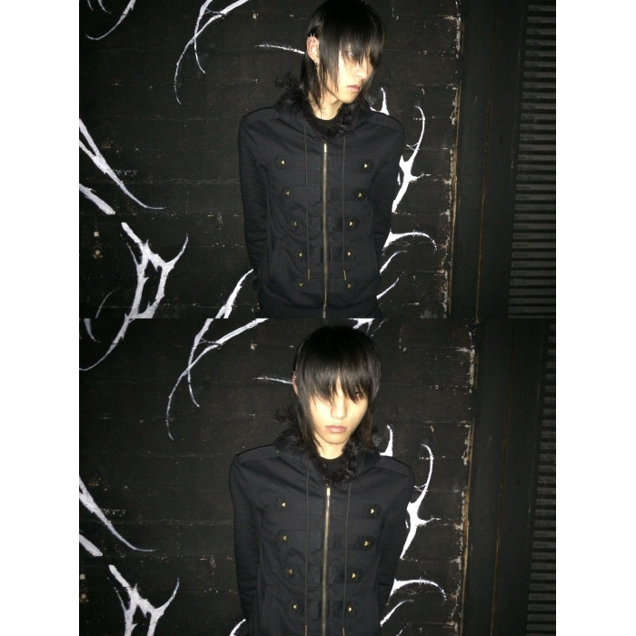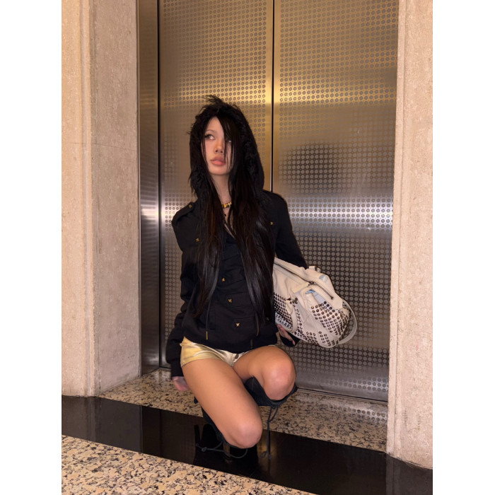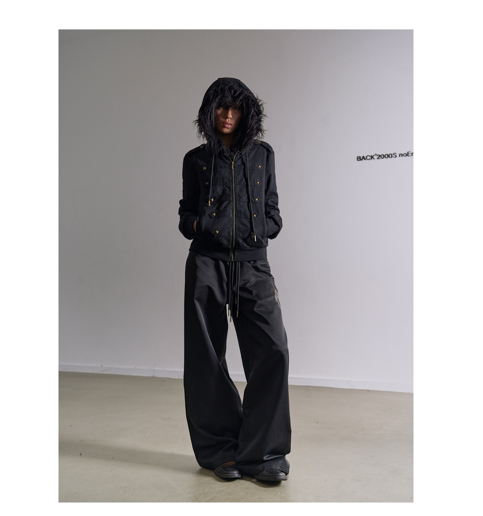 noEmosen(noE)酵洗宮廷鉚釘復古毛領著正肩版型連帽秋季衛衣