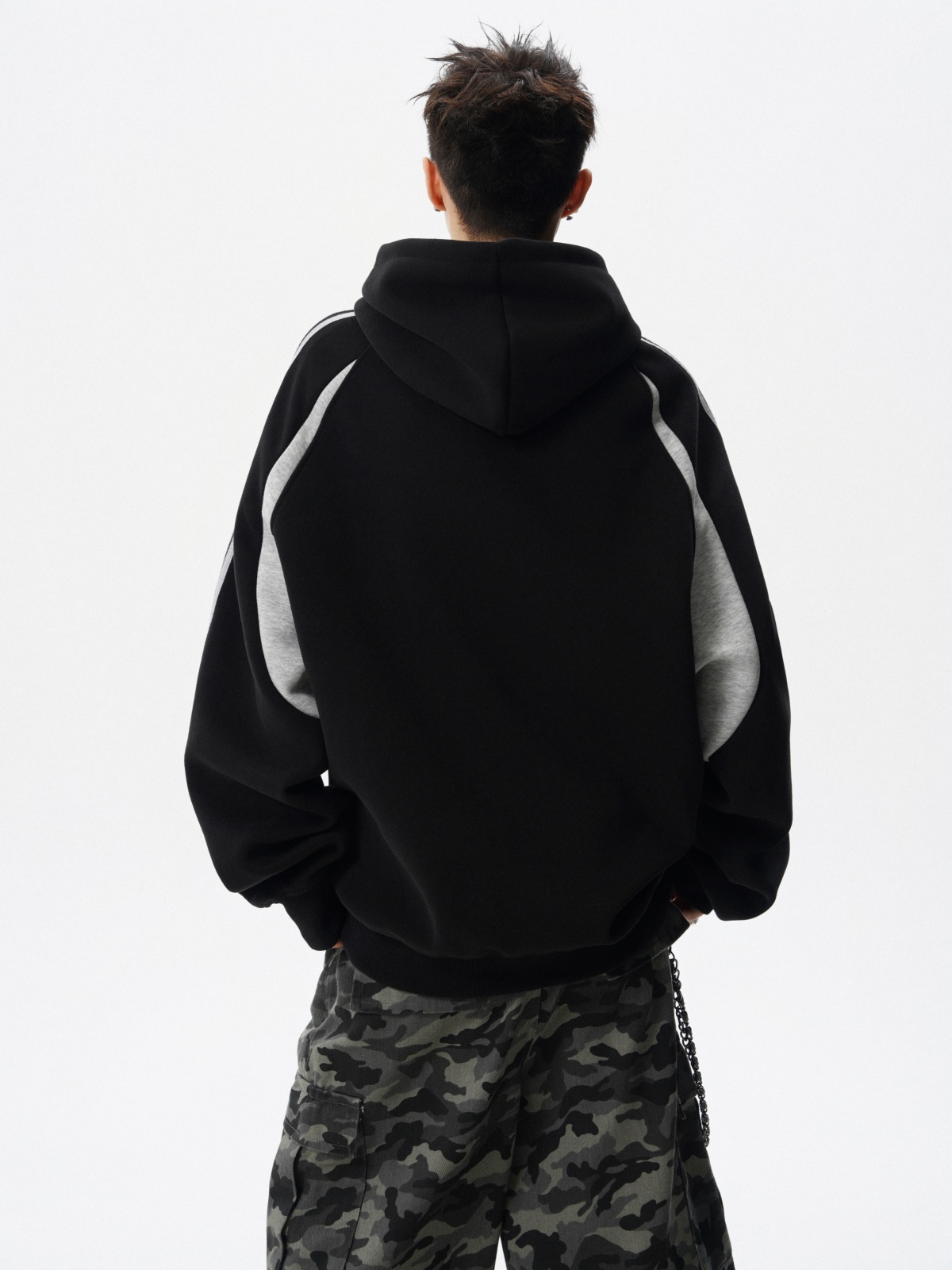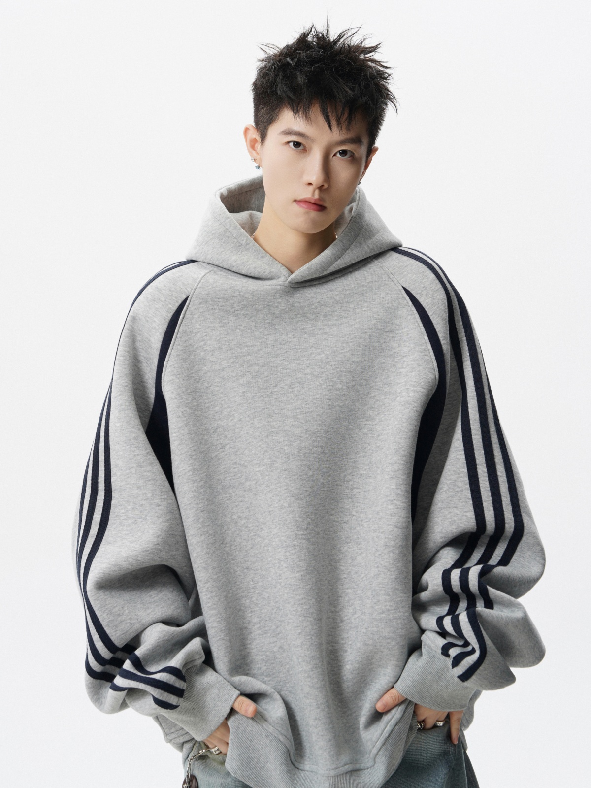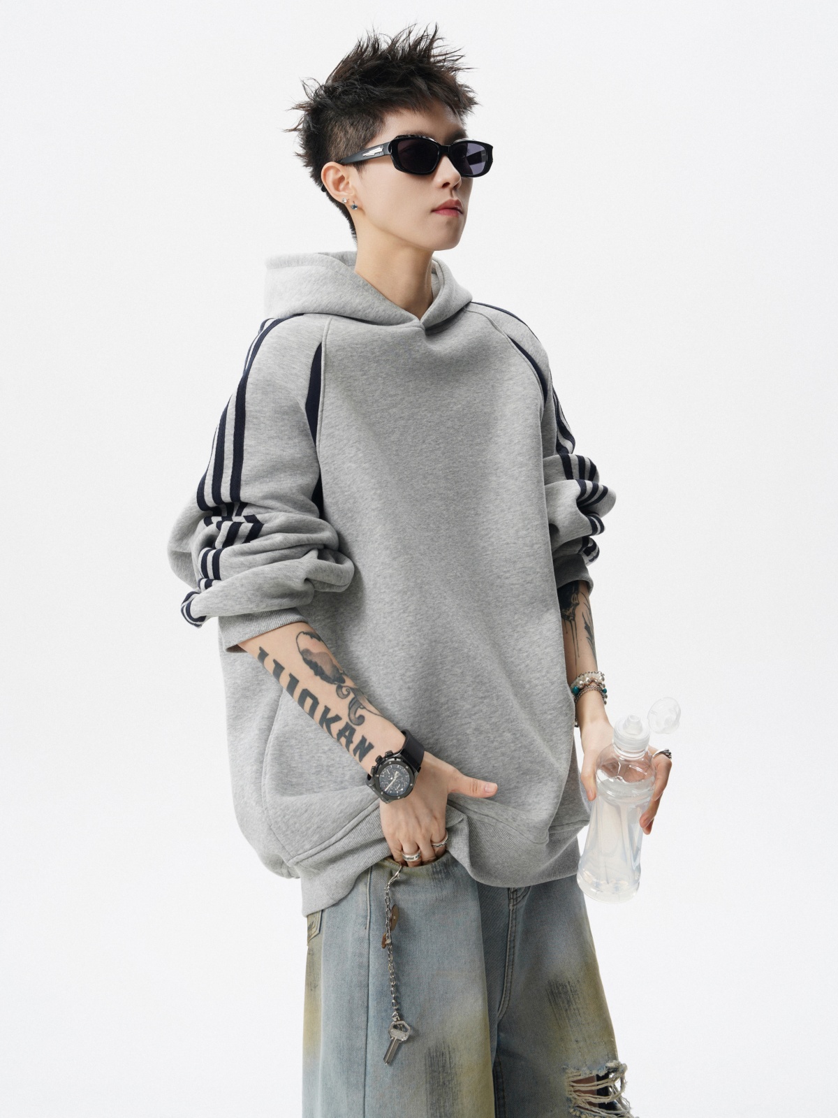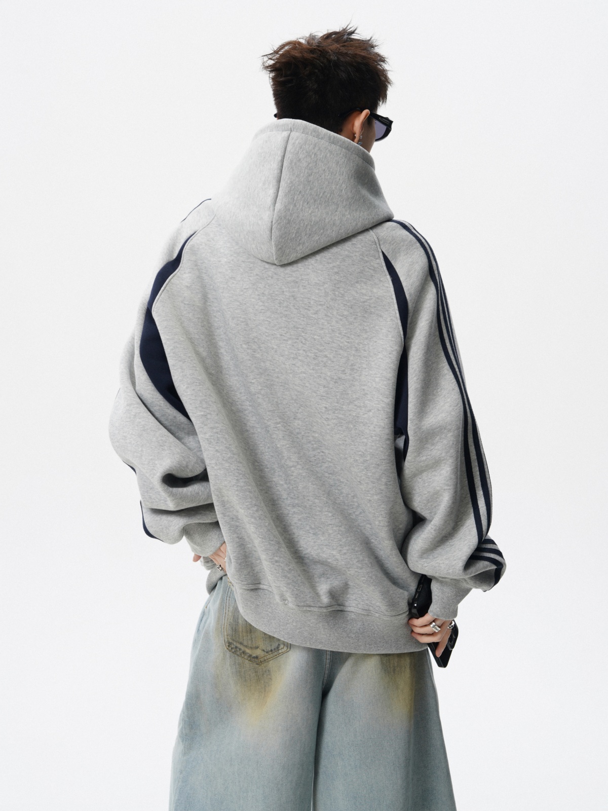 美式潮牌拼色連帽衛衣男款秋季復古寬松休閒上衣高街條紋運動帽衫