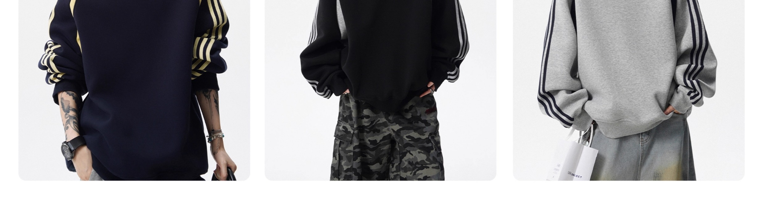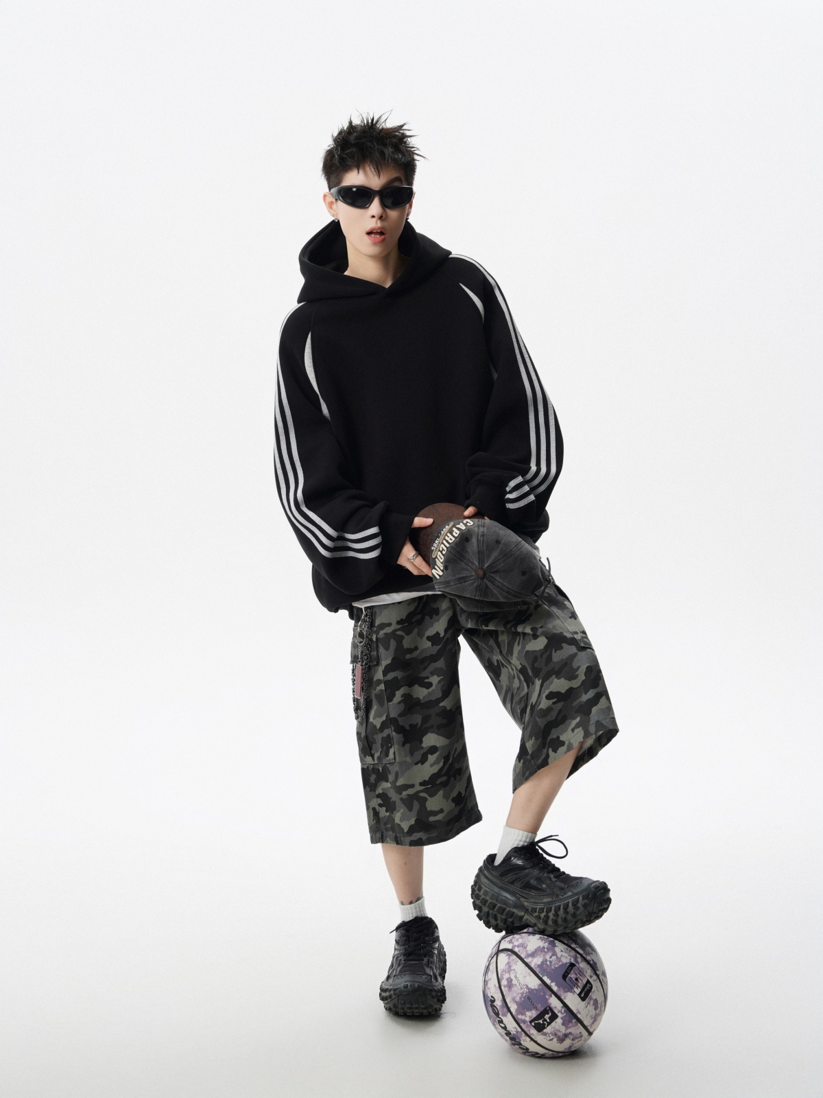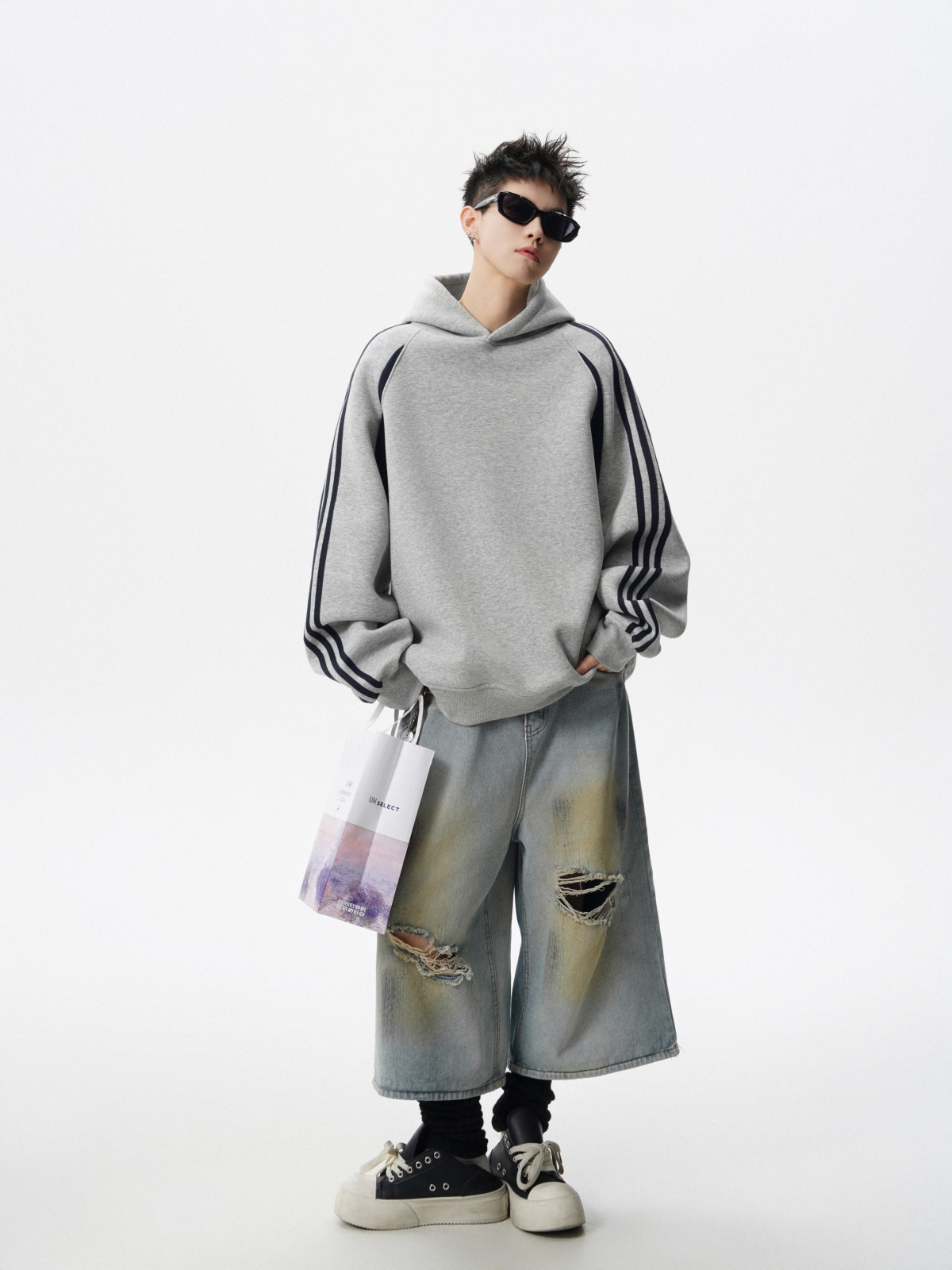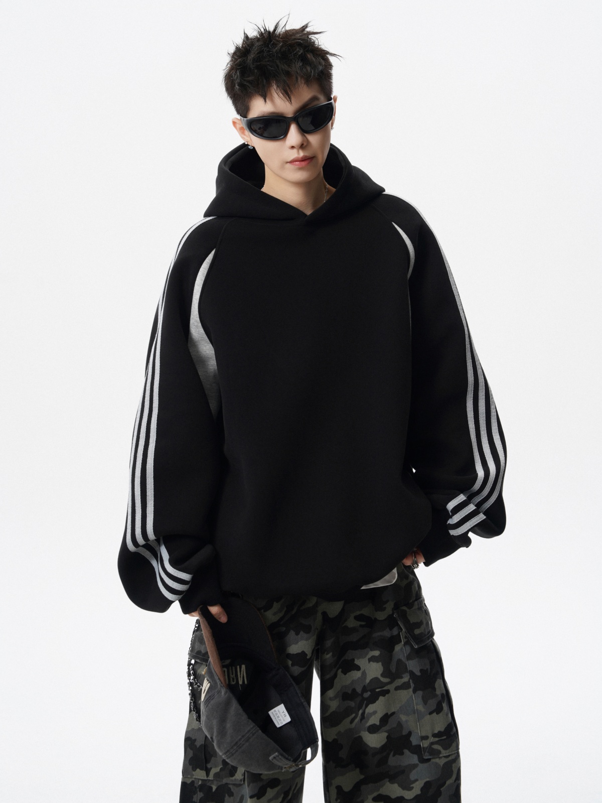 美式潮牌拼色連帽衛衣男款秋季復古寬松休閒上衣高街條紋運動帽衫