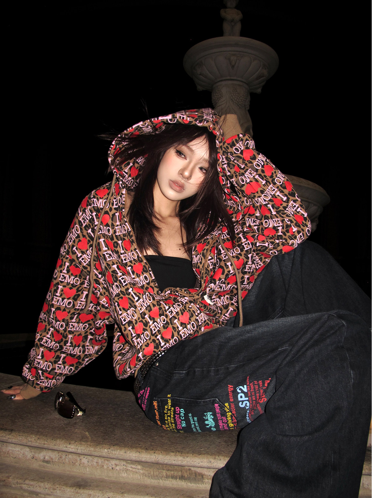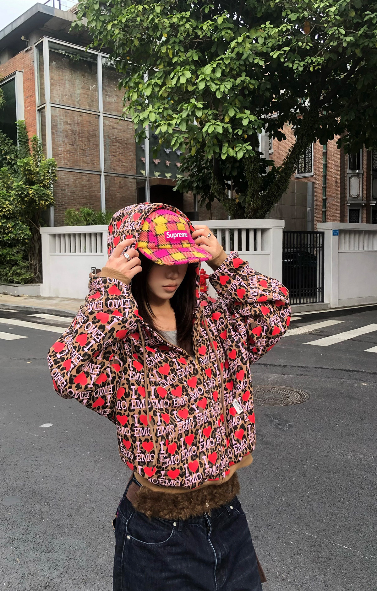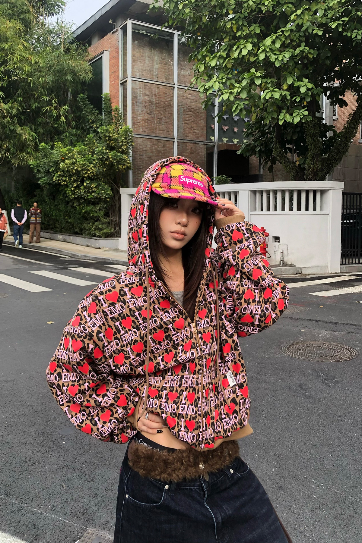 EAHO美式復古字母愛心長袖衛衣開衫男女春秋寬鬆休閒百搭潮流外套