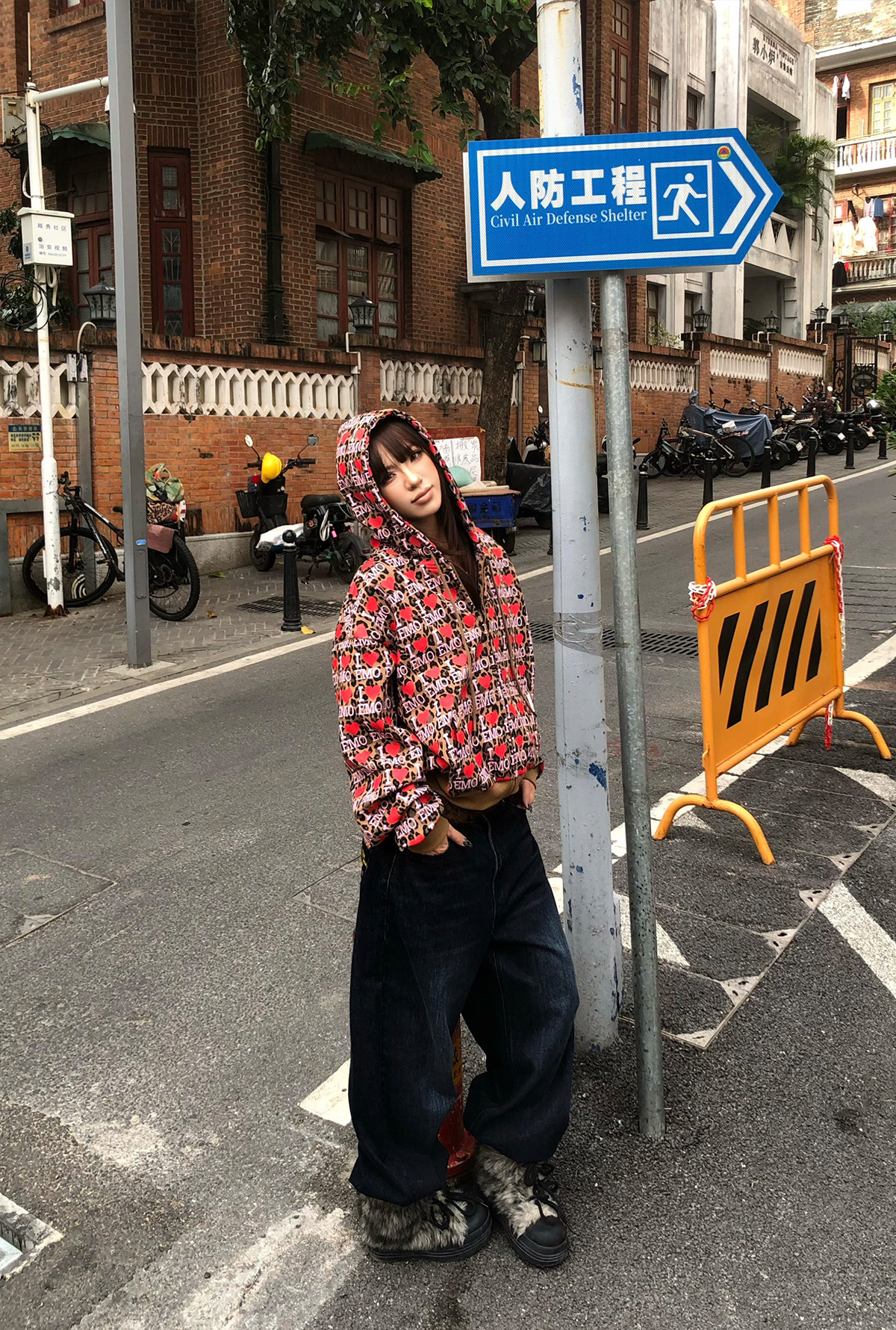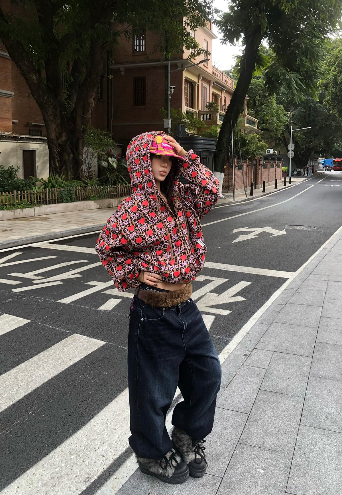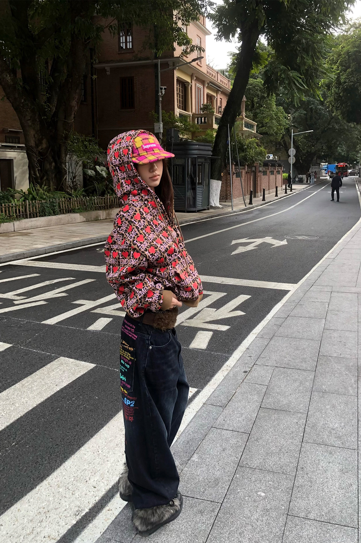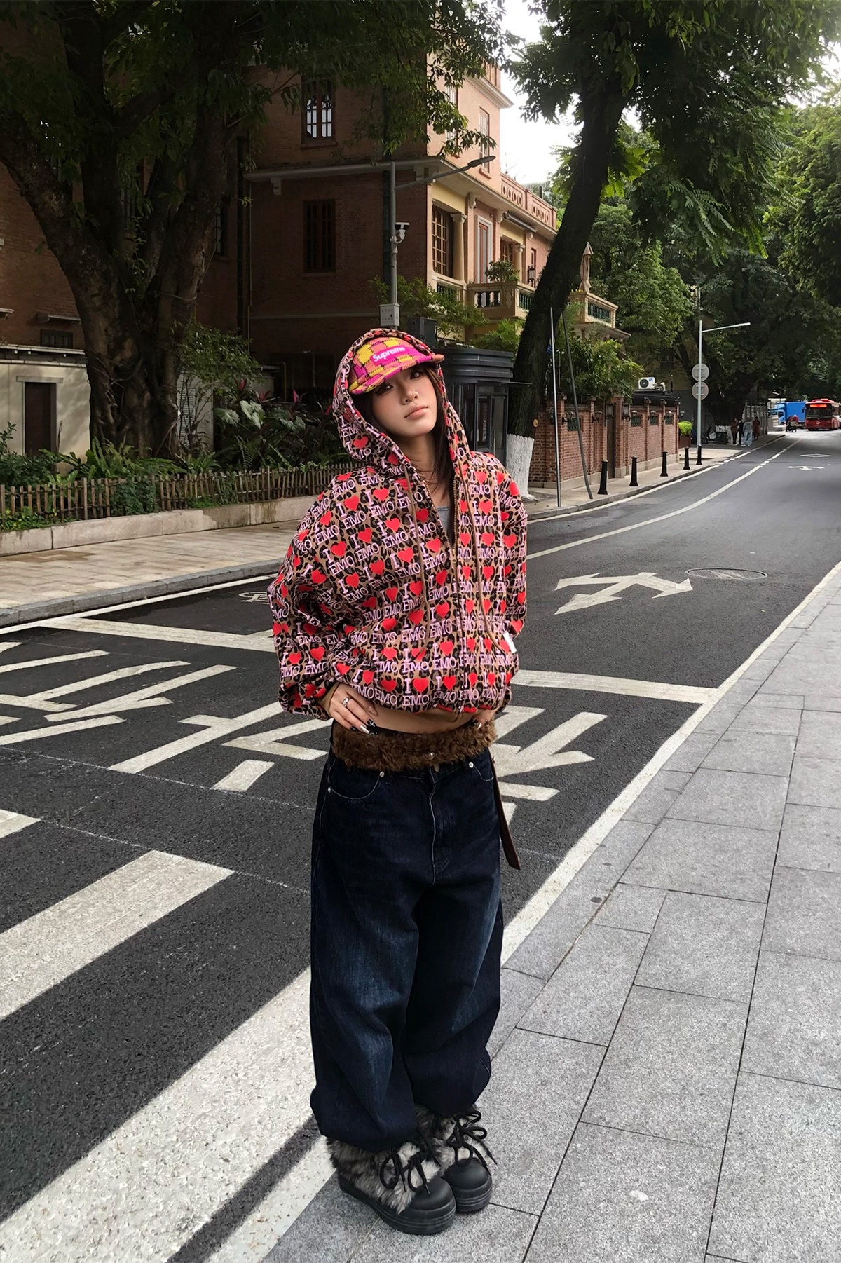 EAHO美式復古字母愛心長袖衛衣開衫男女春秋寬鬆休閒百搭潮流外套