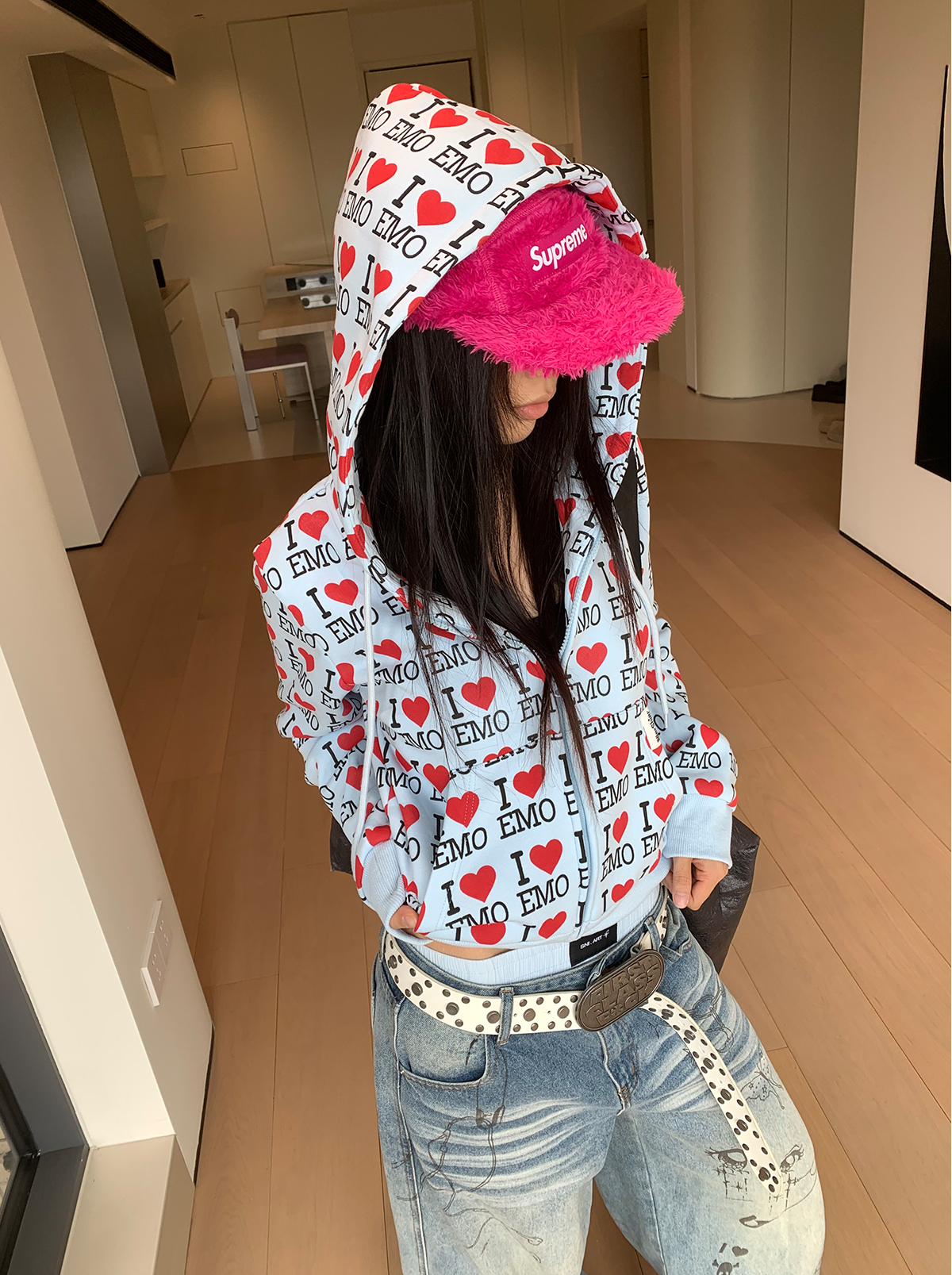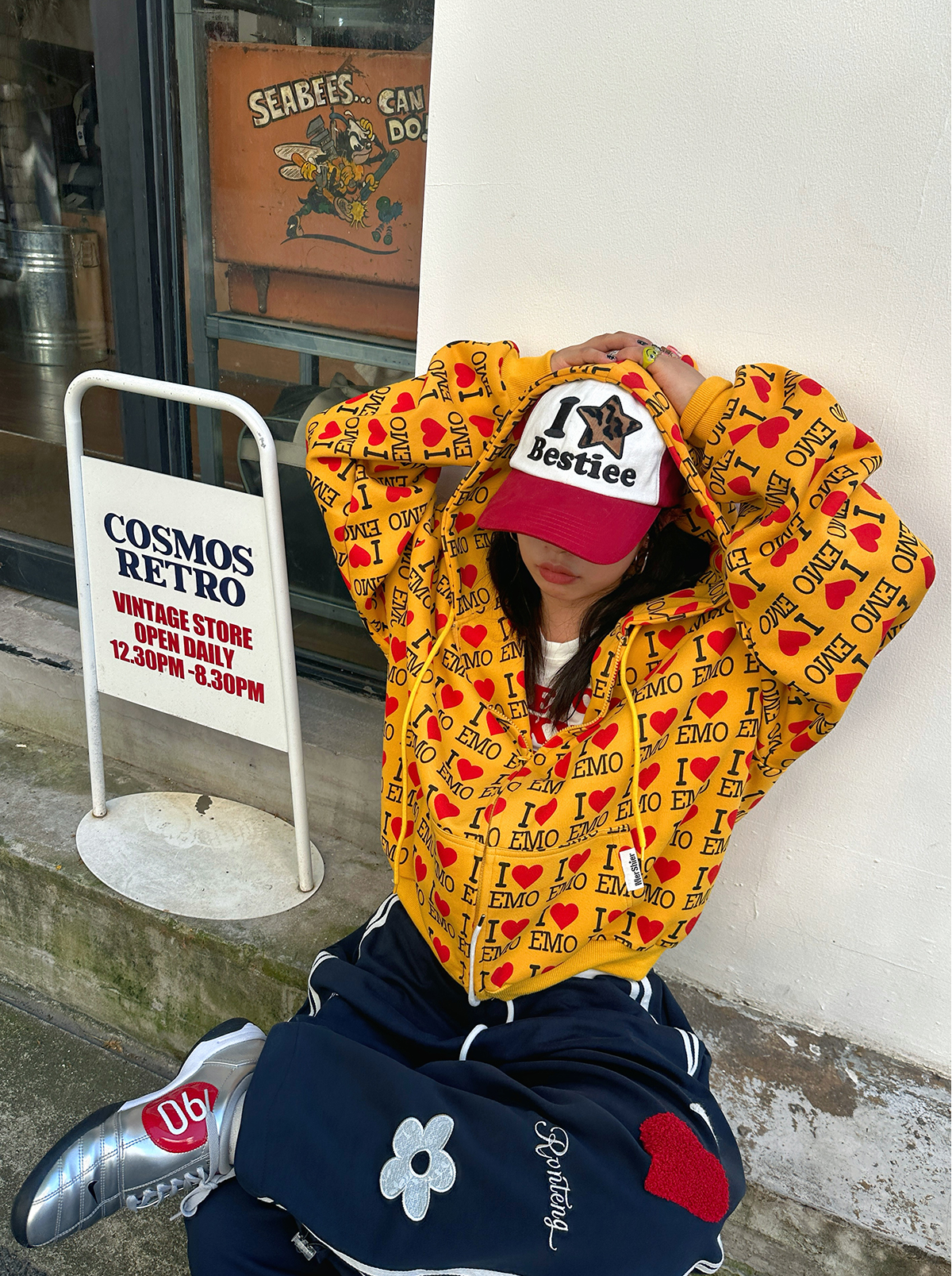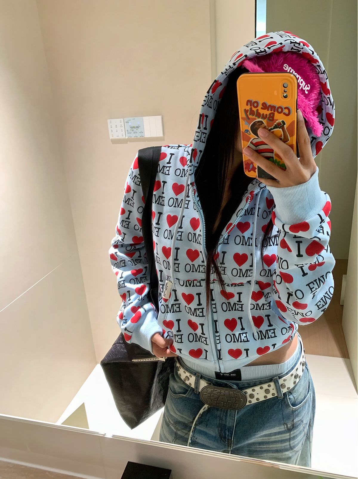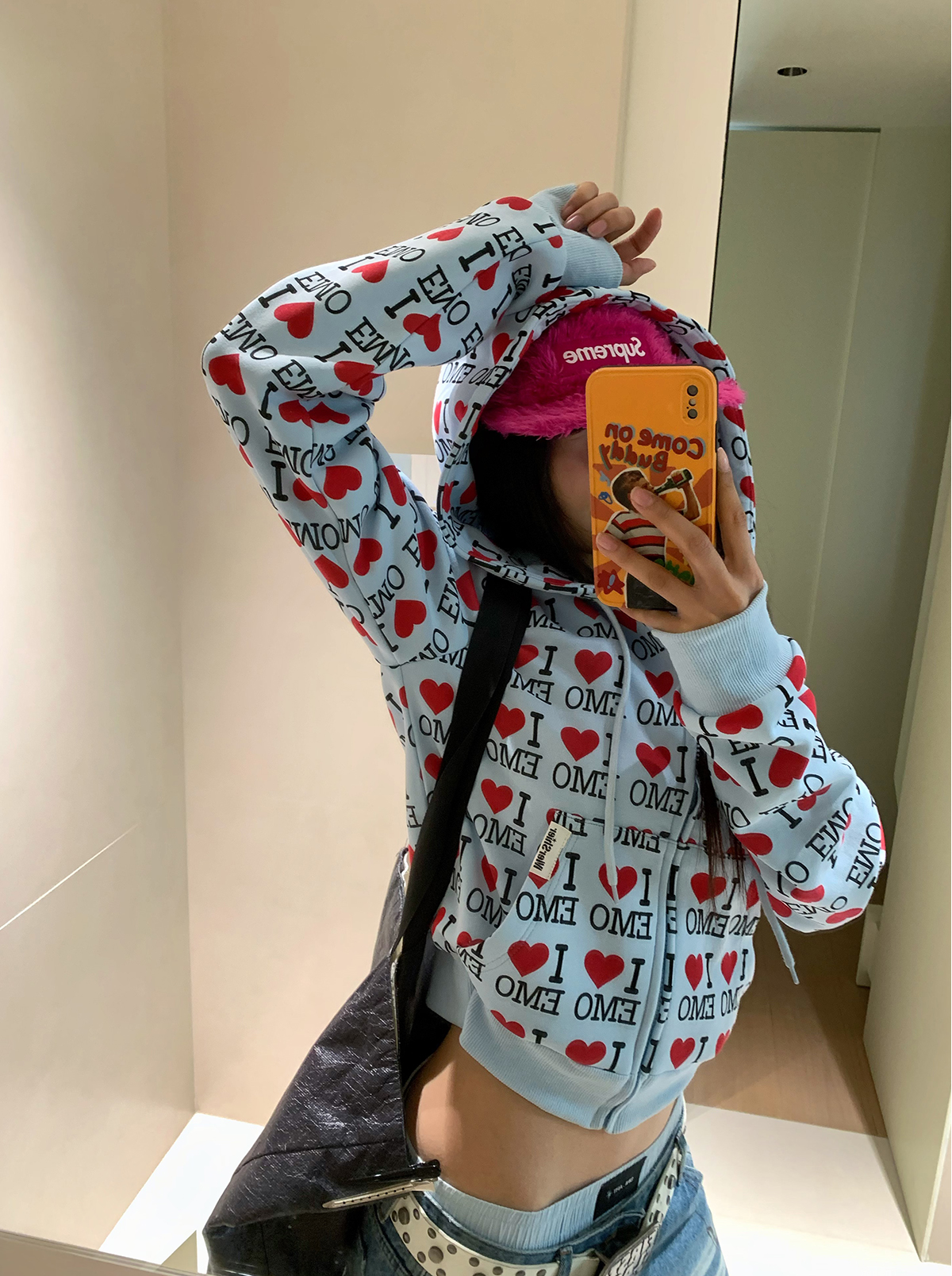 EAHO美式復古字母愛心長袖衛衣開衫男女春秋寬松休閒百搭潮流外套