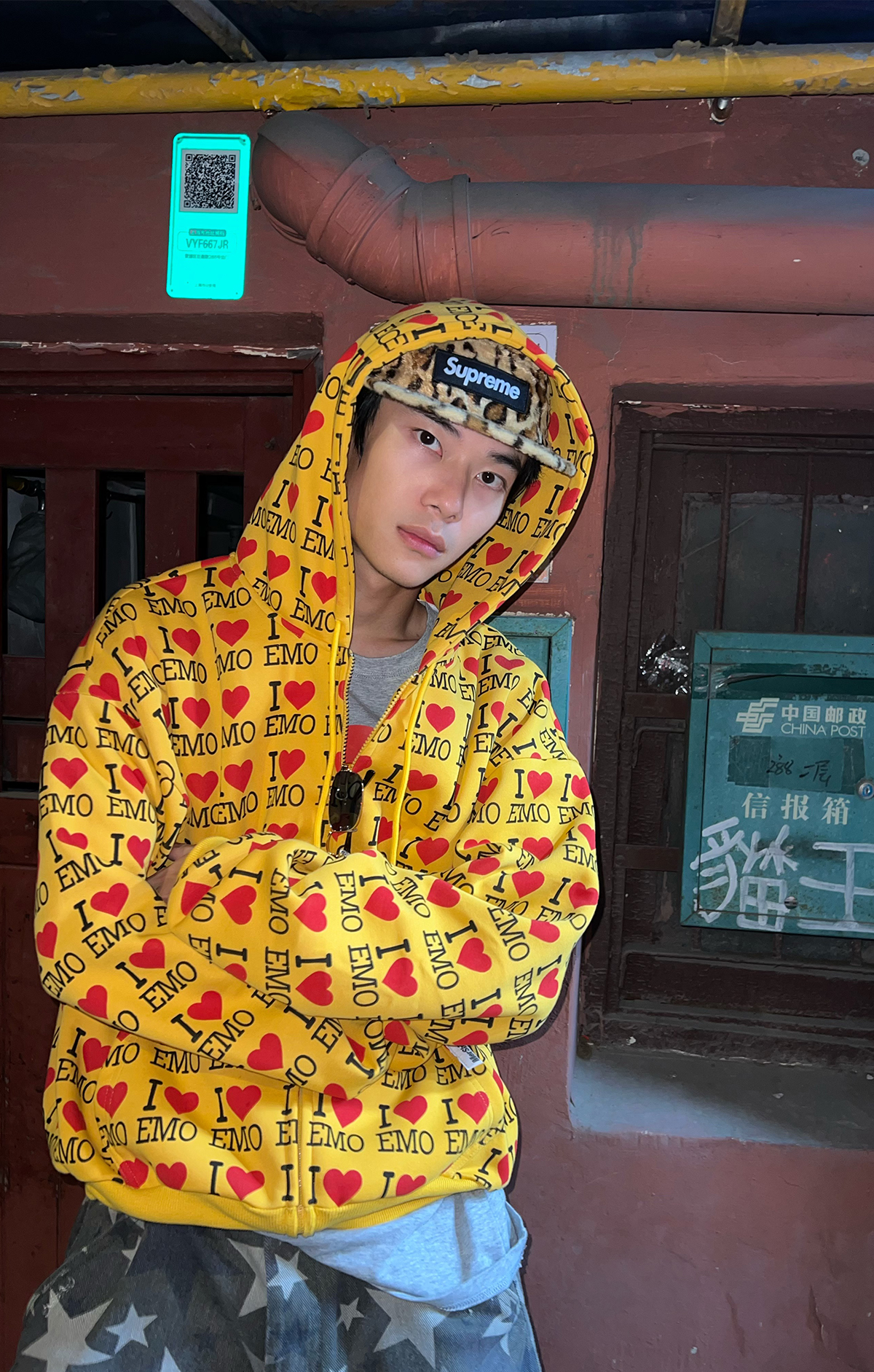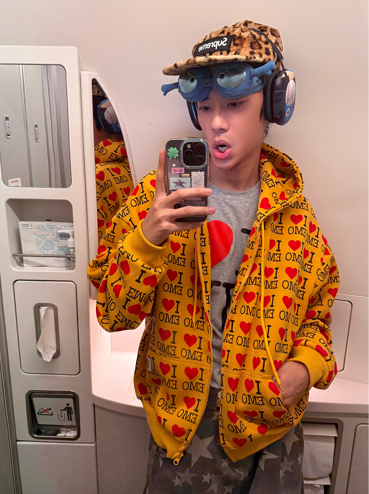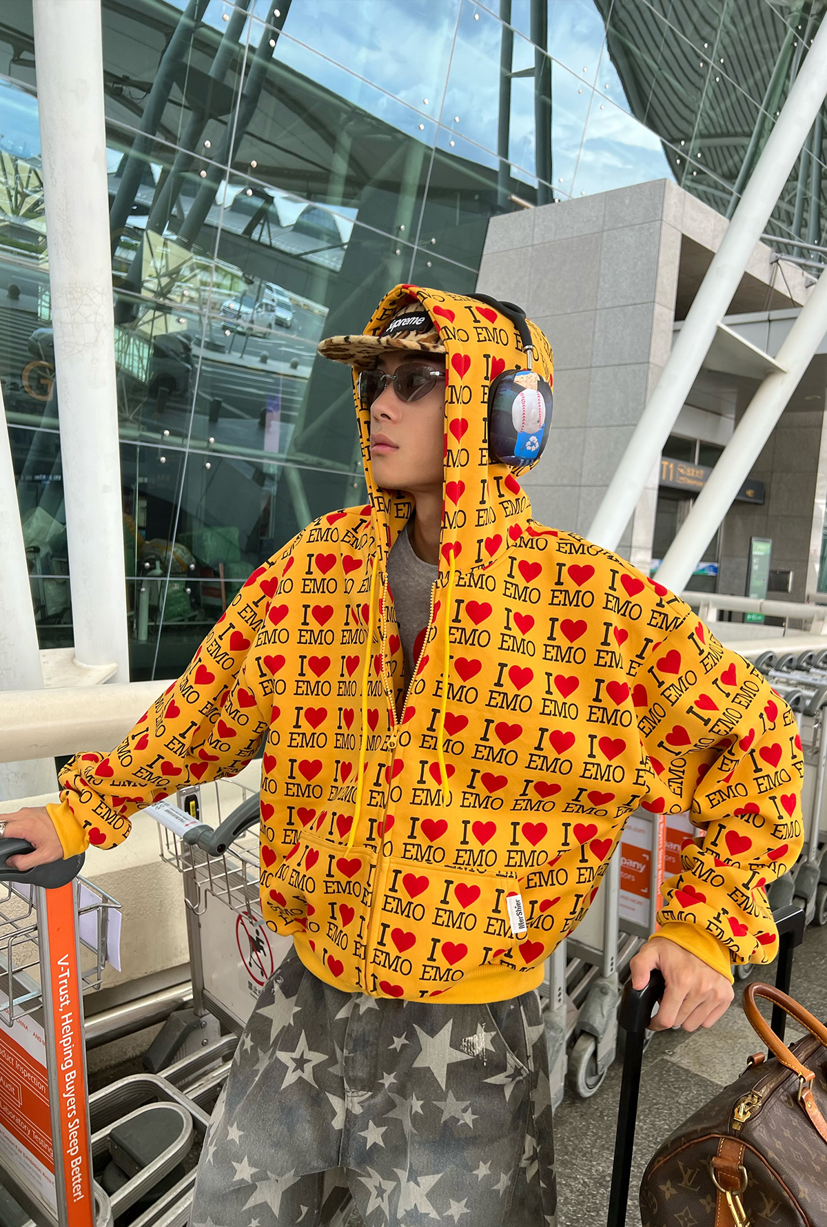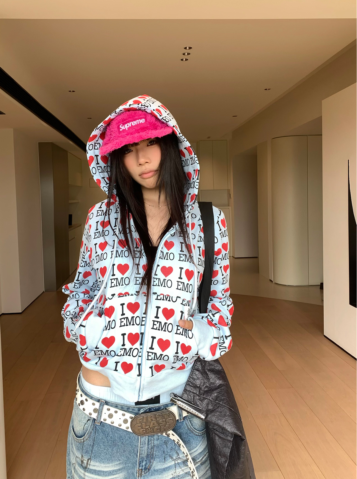 EAHO美式復古字母愛心長袖衛衣開衫男女春秋寬松休閒百搭潮流外套