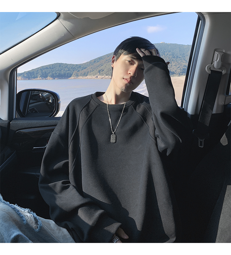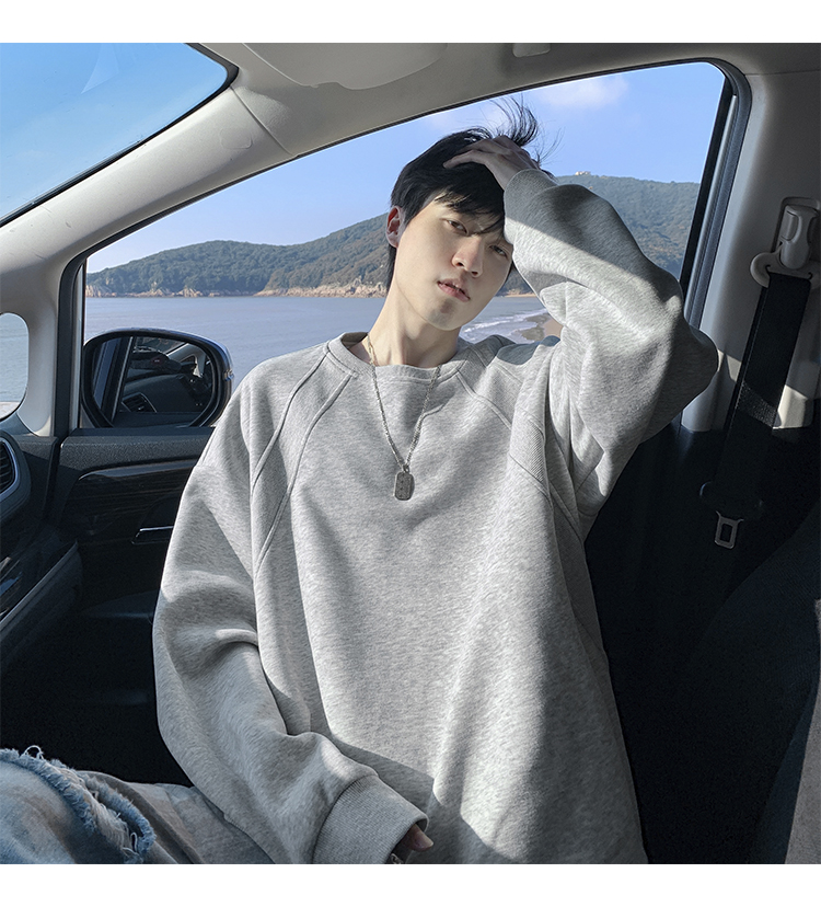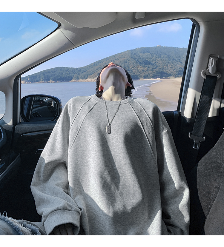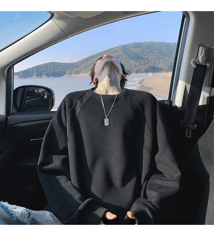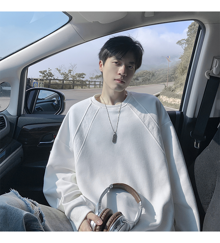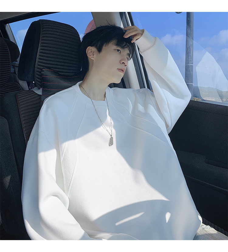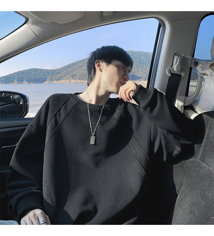 wassup happy美式潮牌重磅圓領衛衣男款秋冬季加絨加厚寬松上衣服