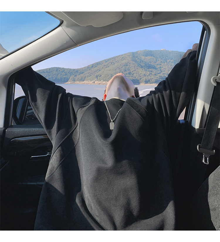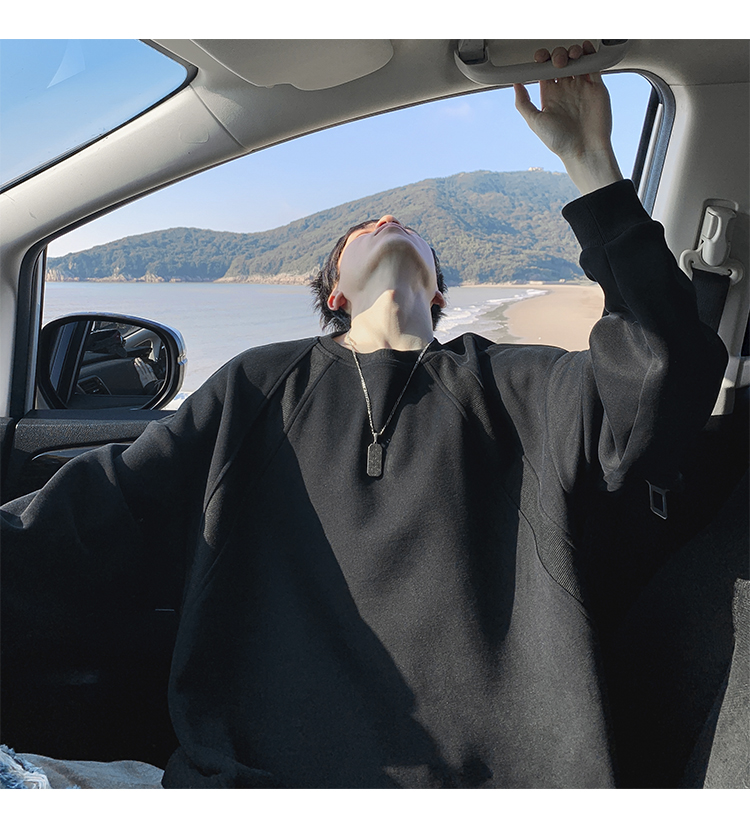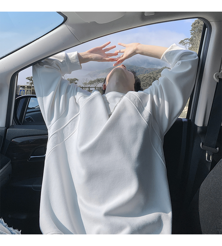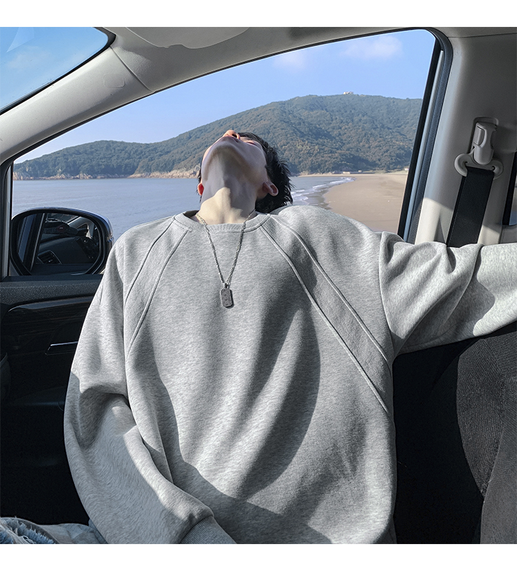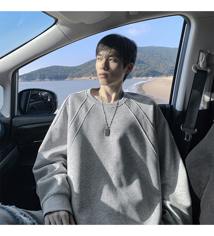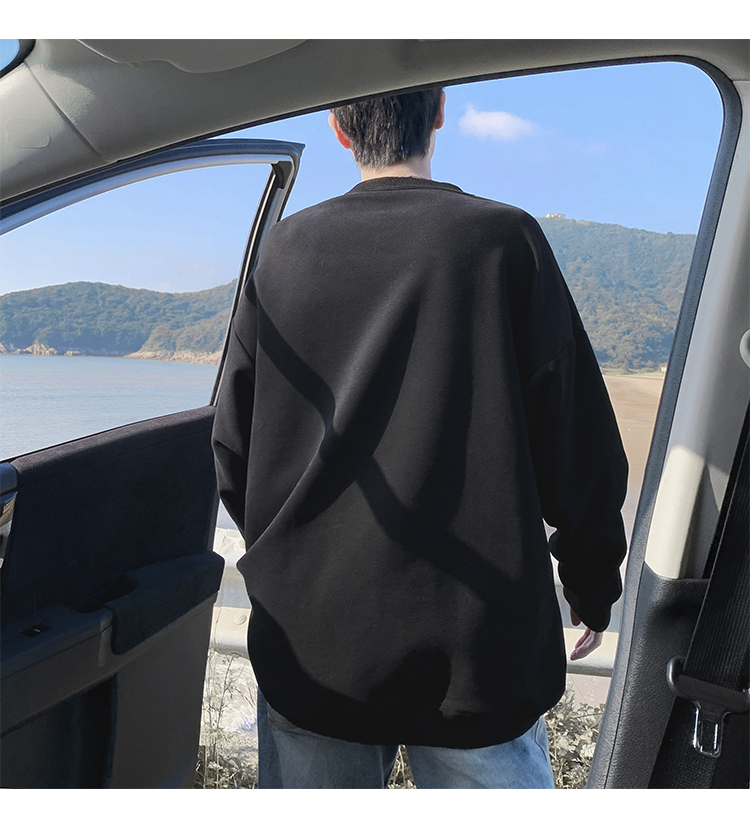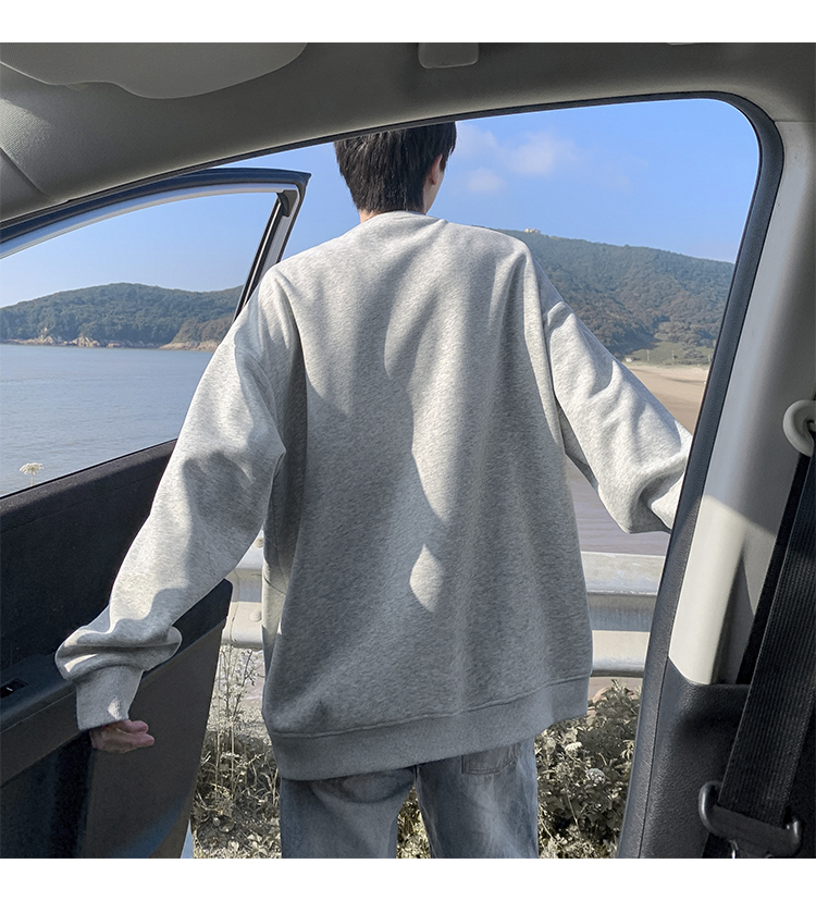 wassup happy美式潮牌重磅圓領衛衣男款秋冬季加絨加厚寬松上衣服