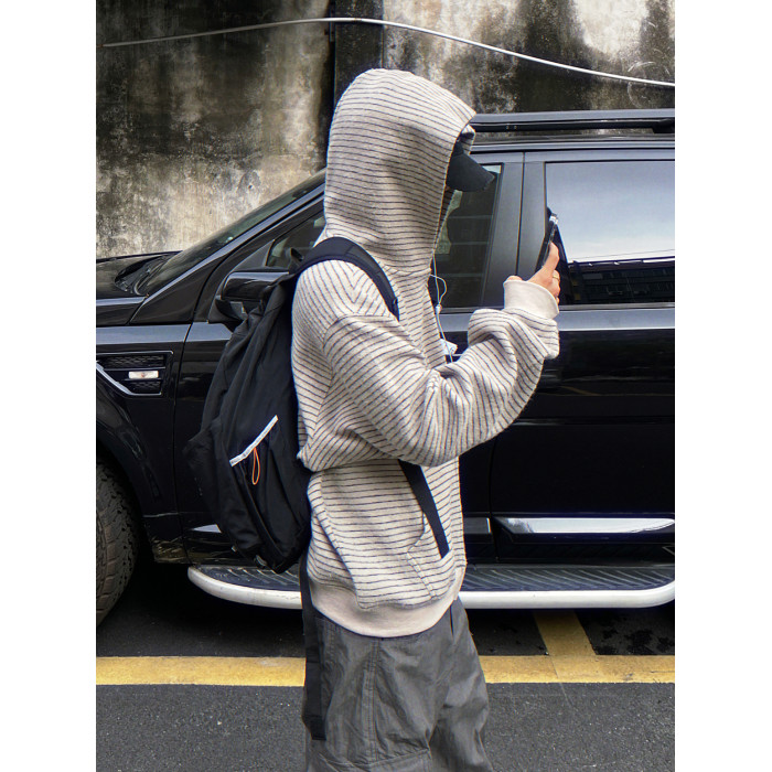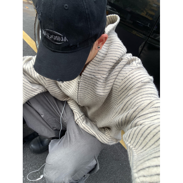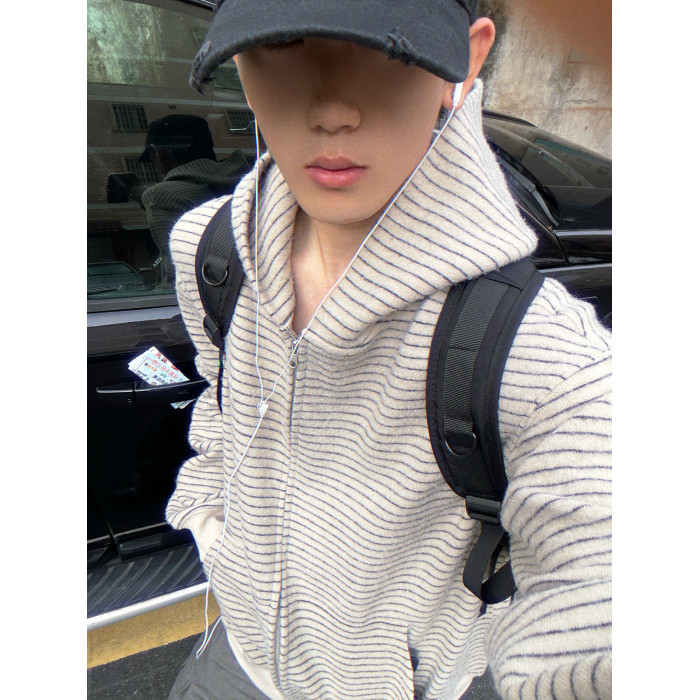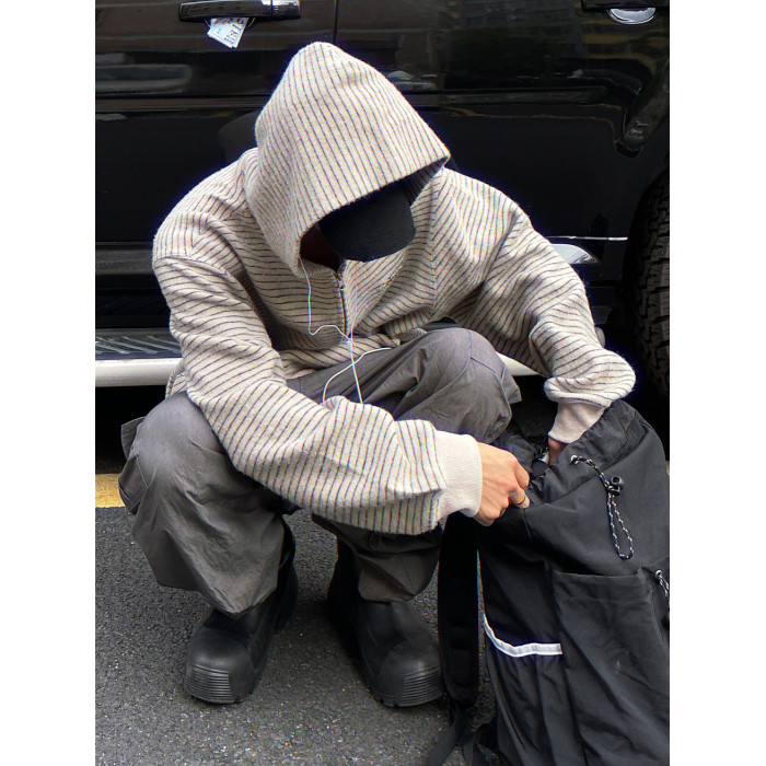逃離光復南 美式2025早秋新款條紋拉鍊開衫連帽衛衣男女情侶外套