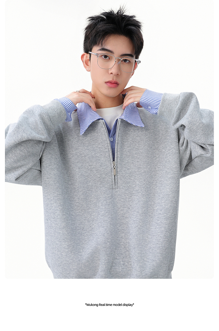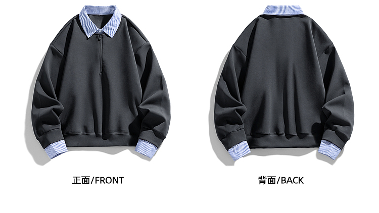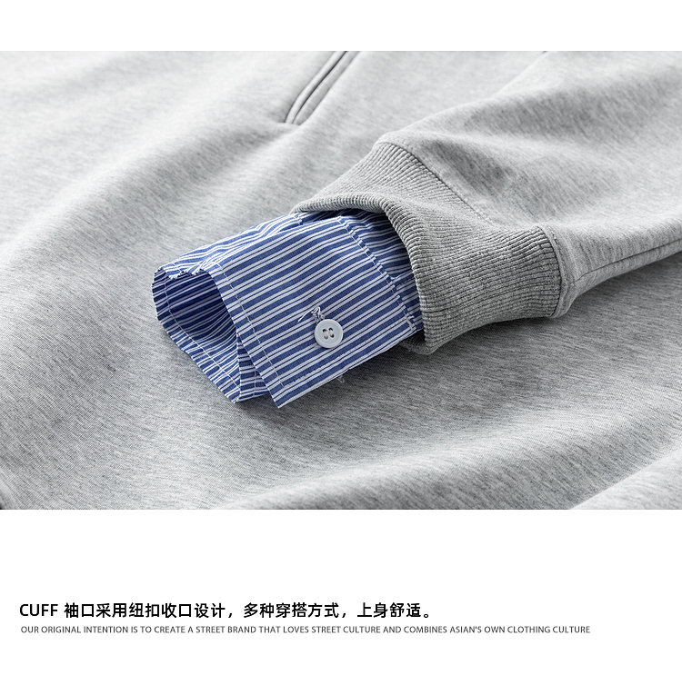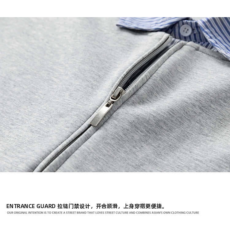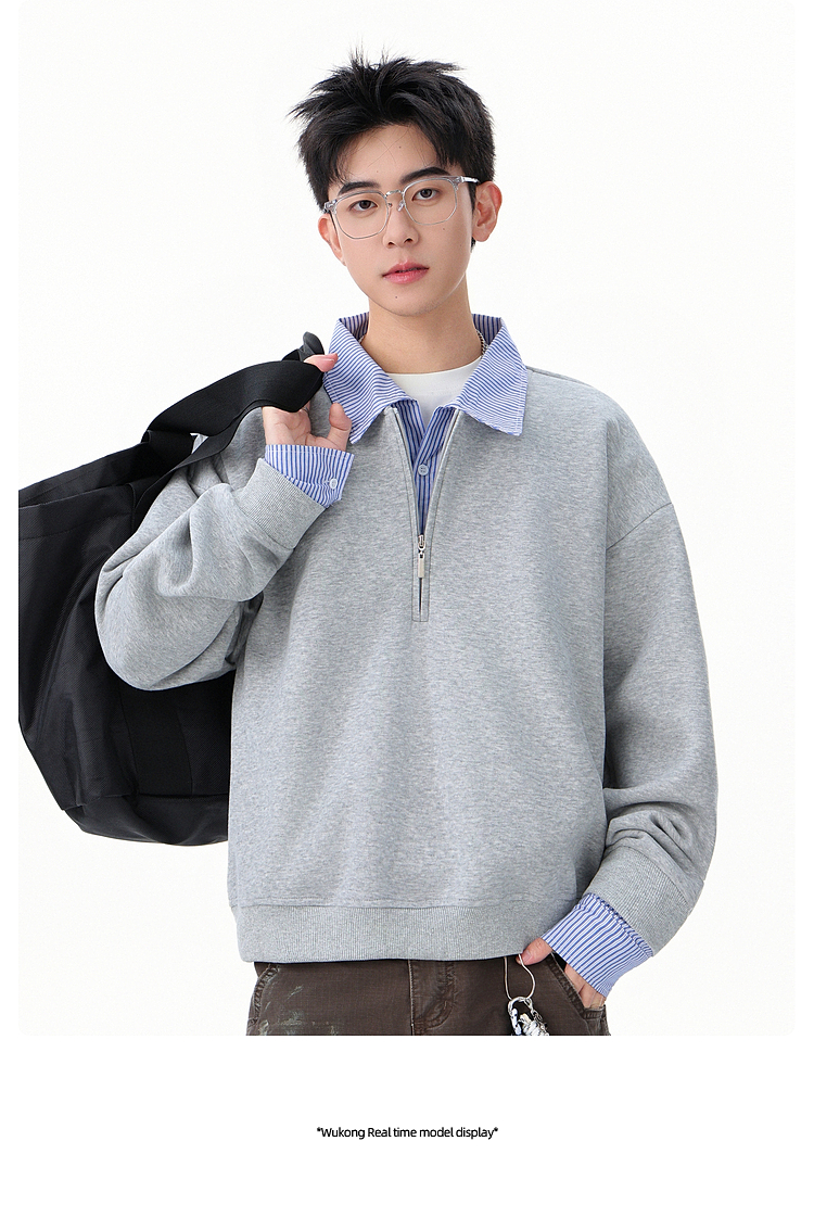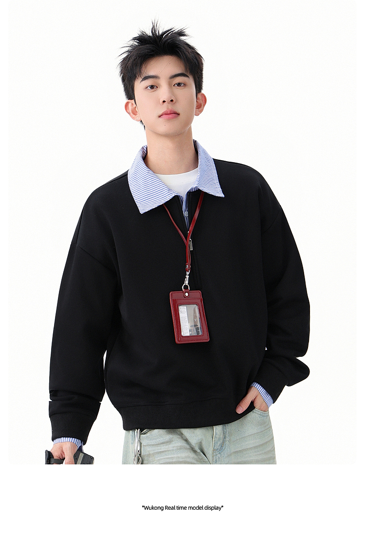 悟空有貨高智感假兩件條紋拼接POLO領衛衣男秋季情侶百搭休閒上衣