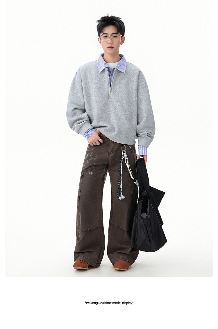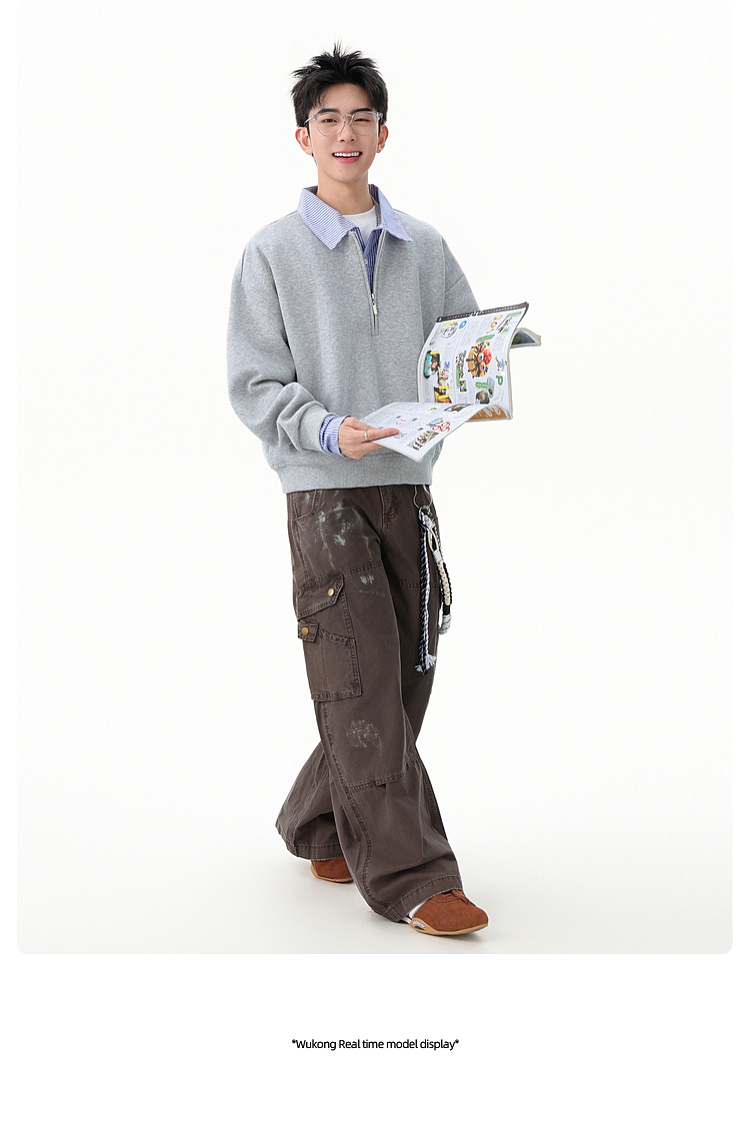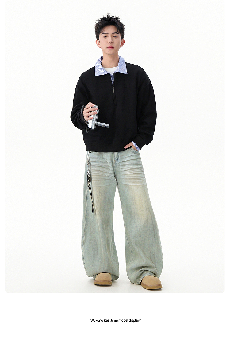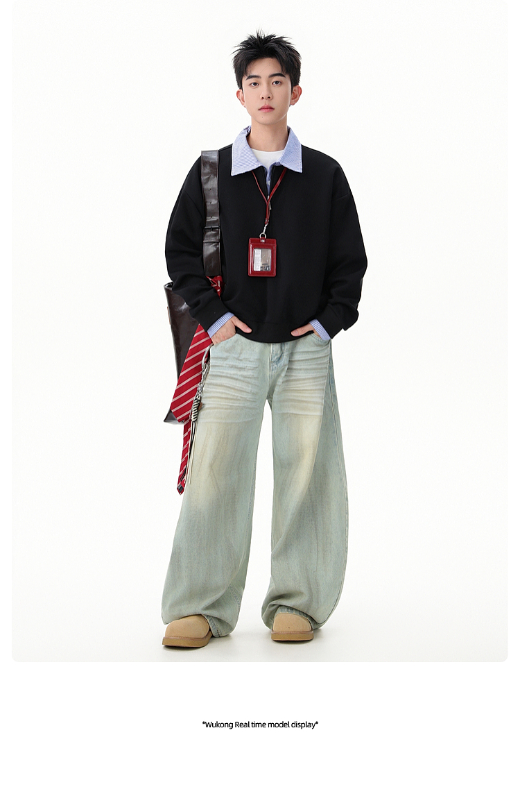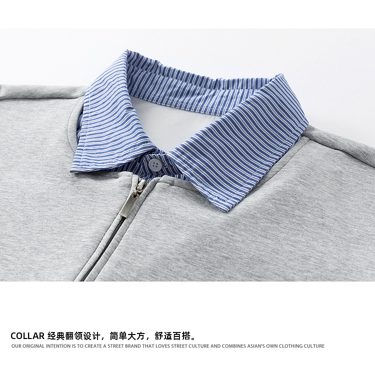 悟空有貨高智感假兩件條紋拼接POLO領衛衣男秋季情侶百搭休閒上衣