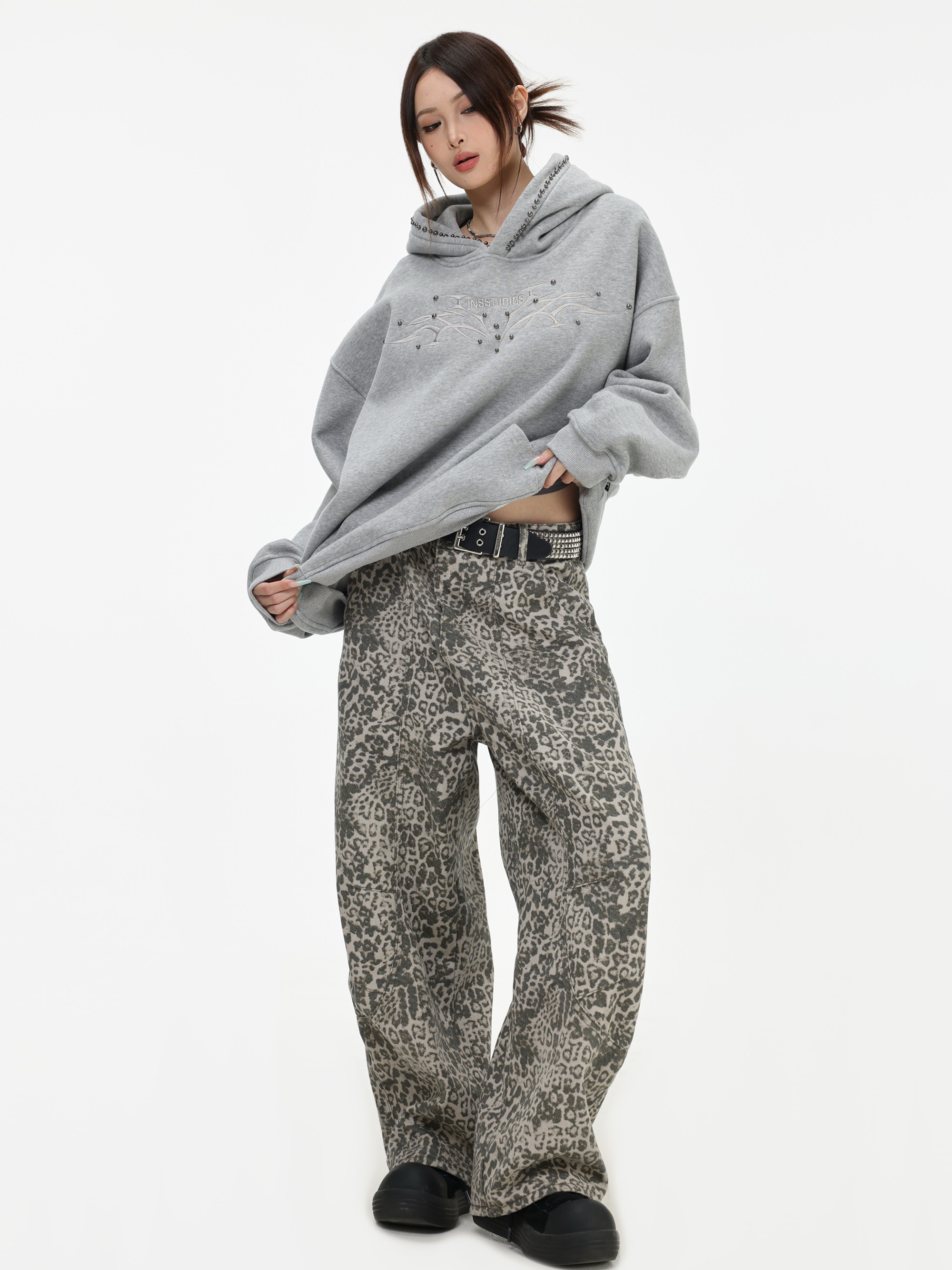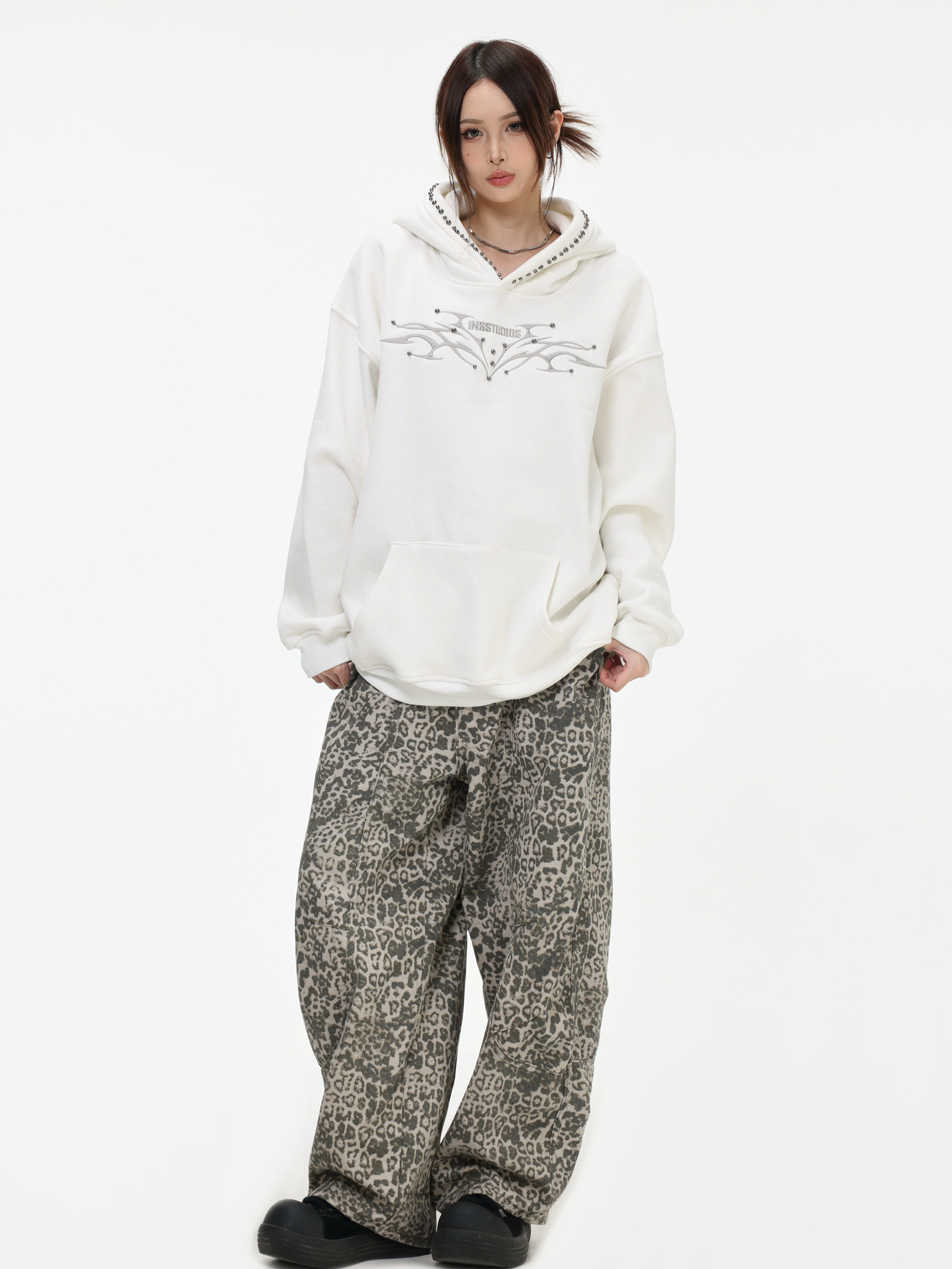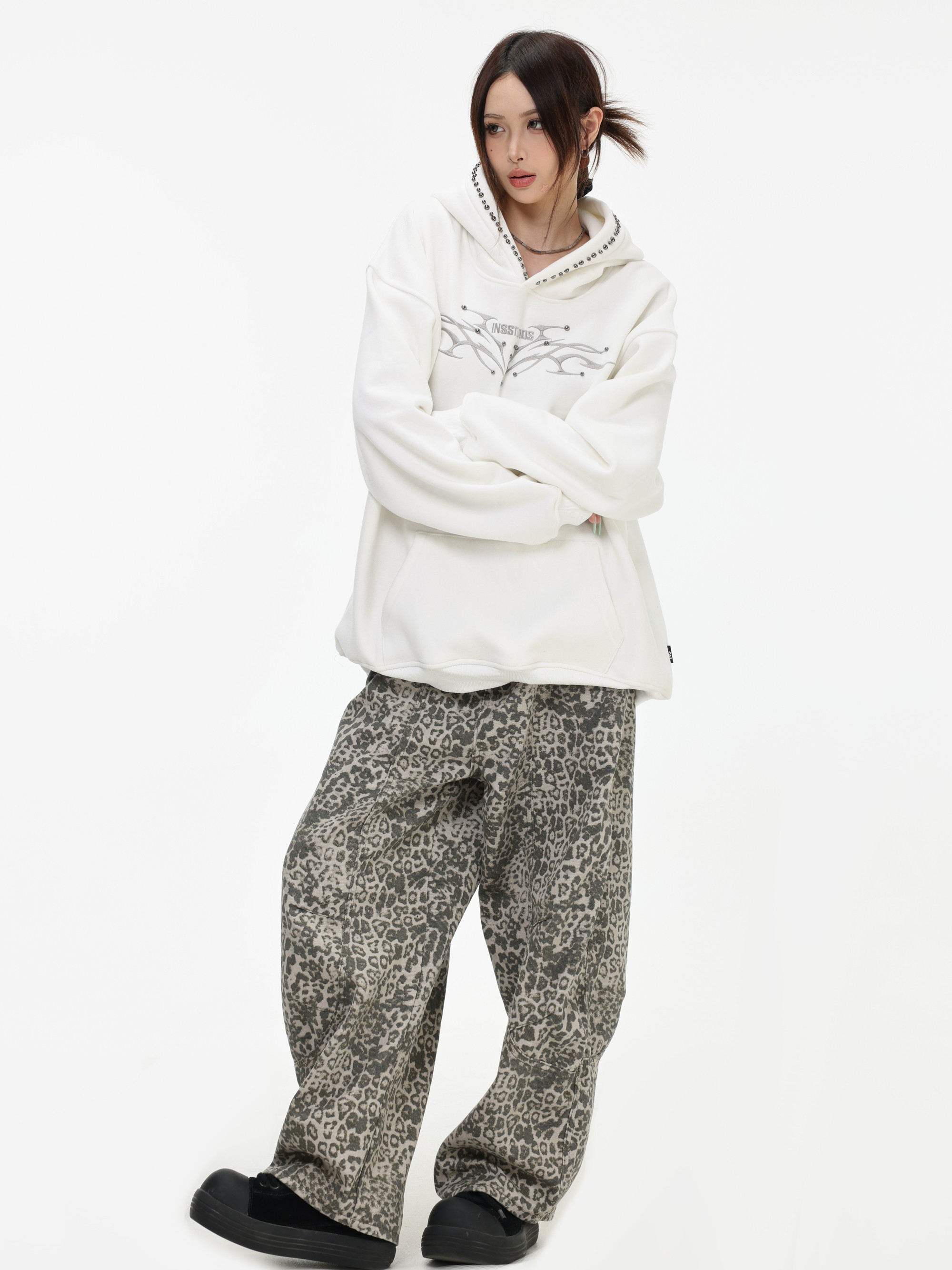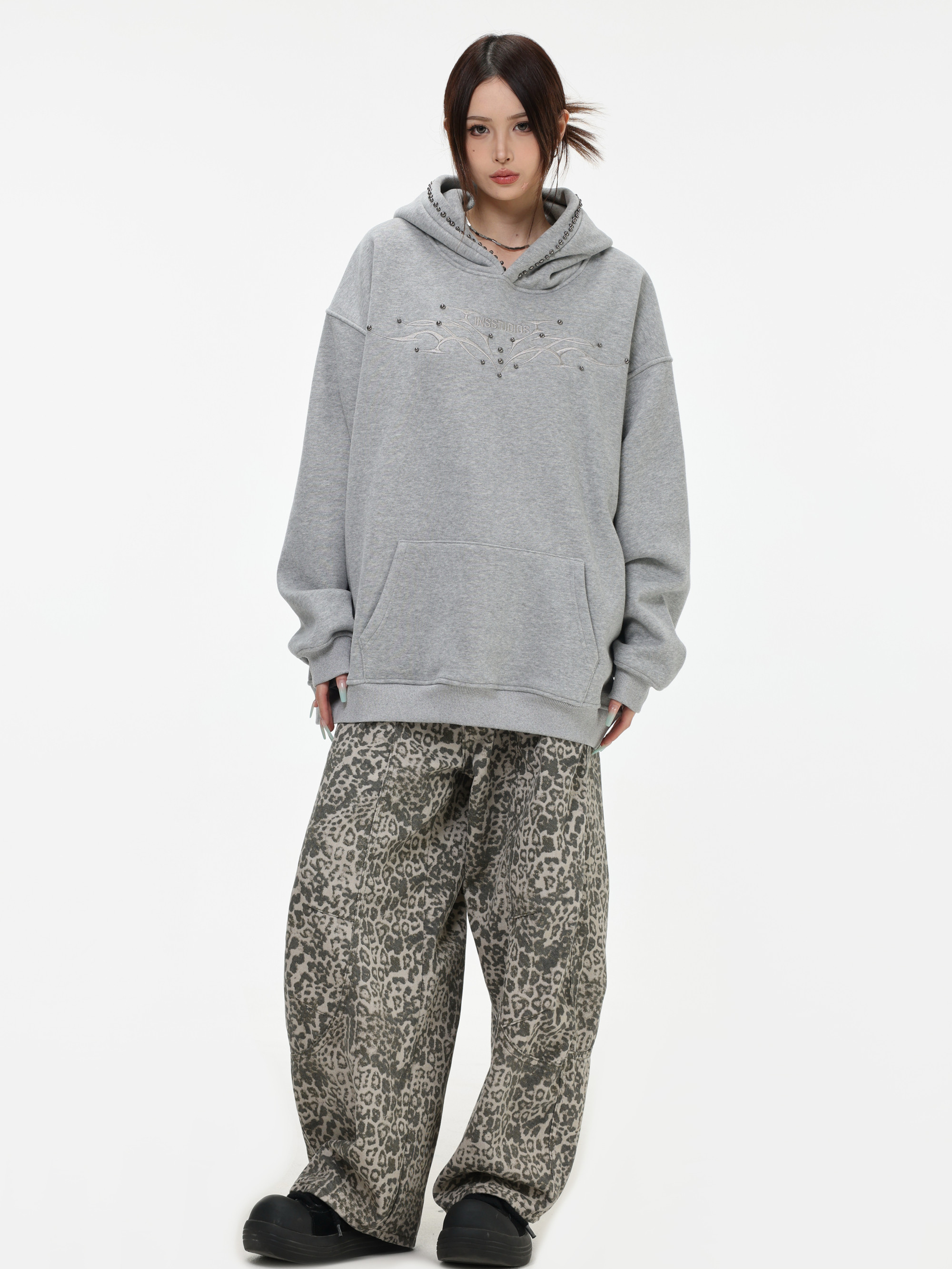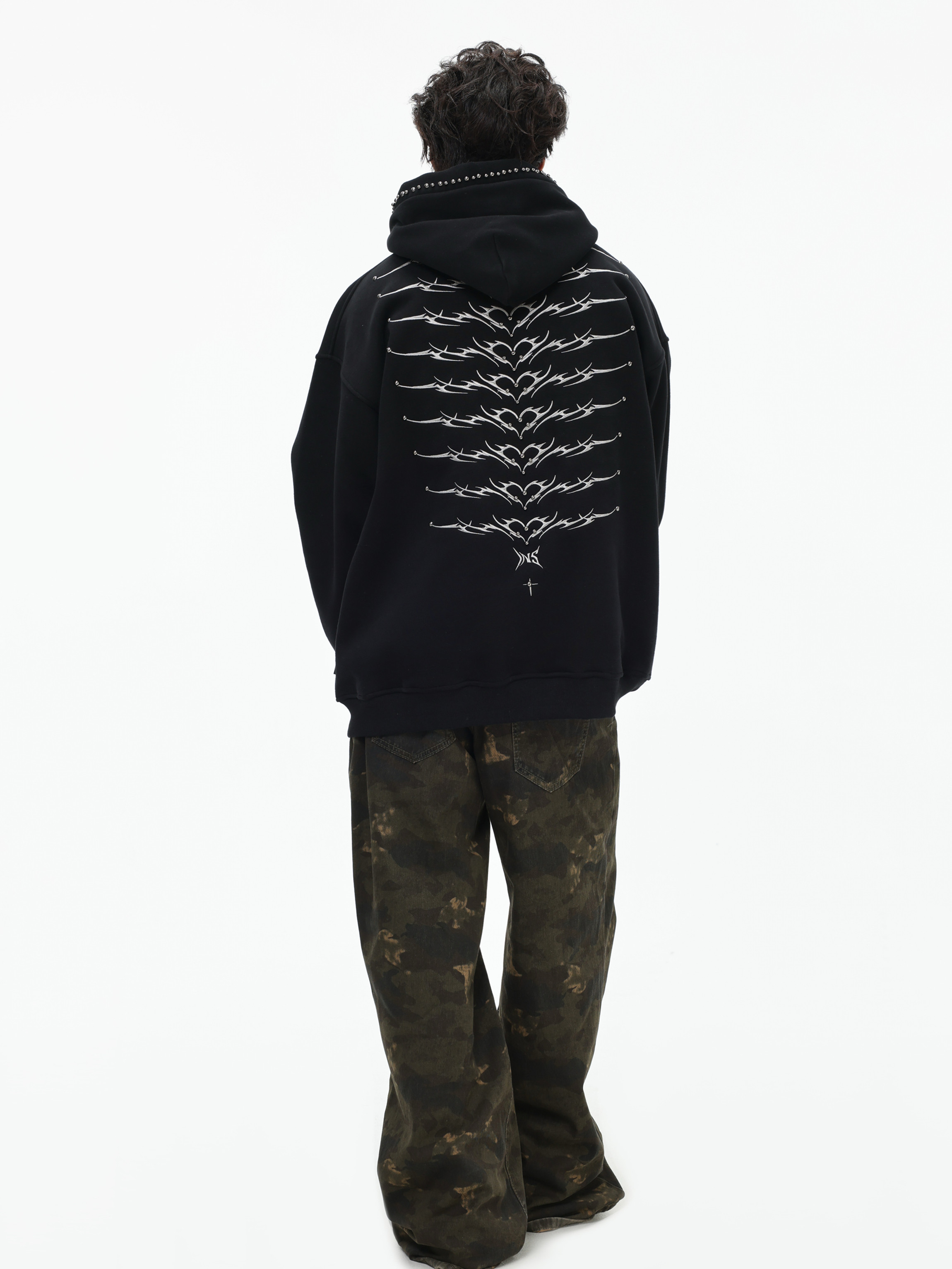 INSstudios 國潮情侶美式「鉚釘脊骨刺綉連帽衛衣」寬鬆加絨帽衫