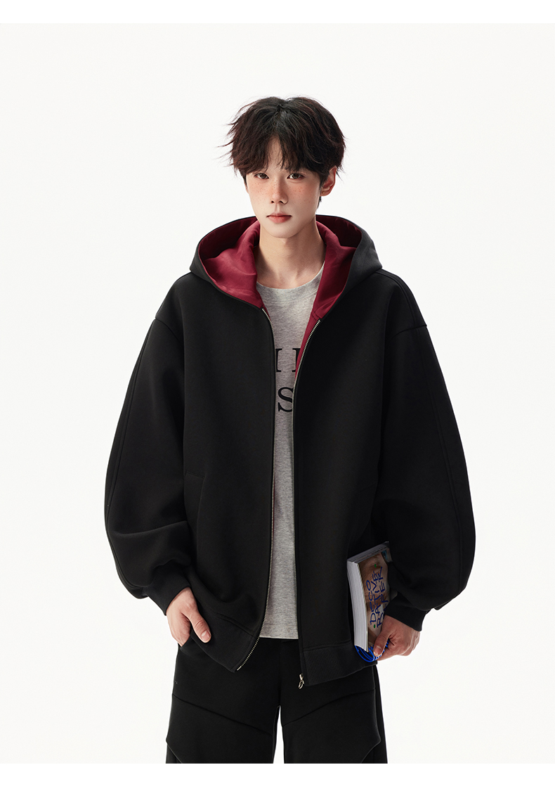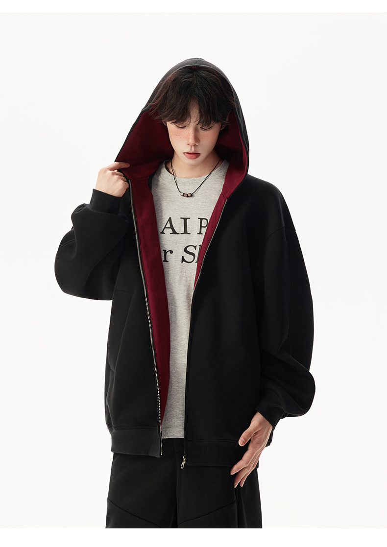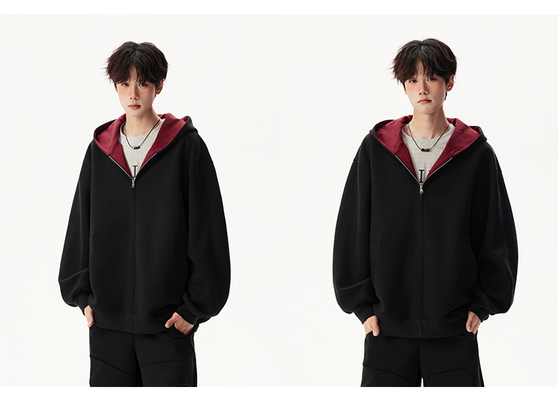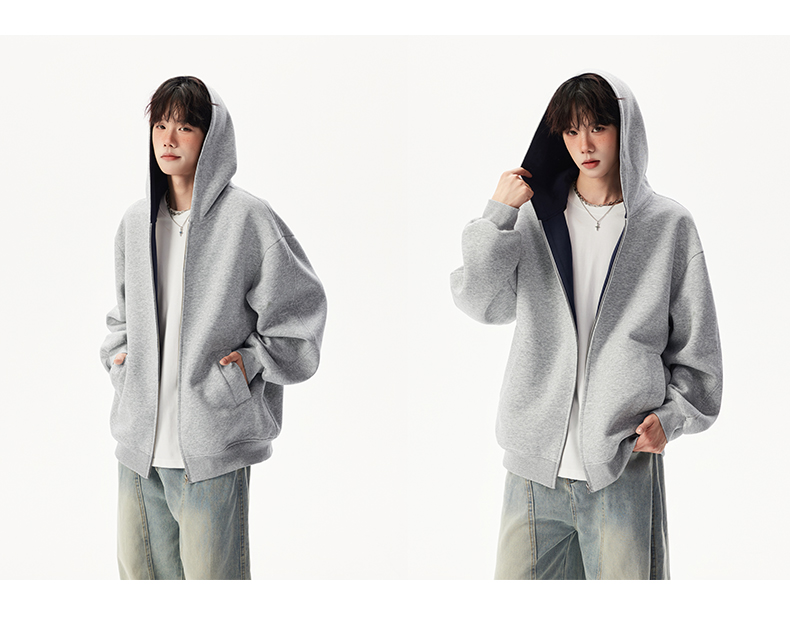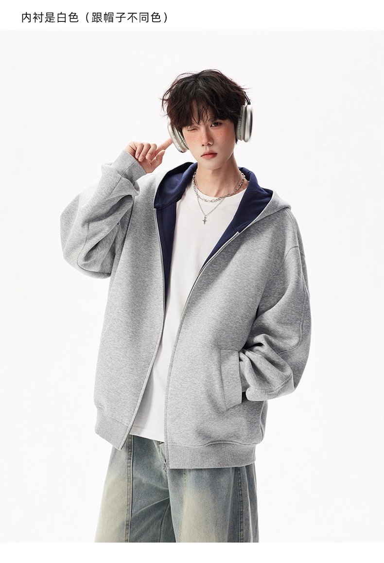 美式重磅休閒衛衣外套男女秋季新款潮牌寬松百搭撞色情侶連帽開衫