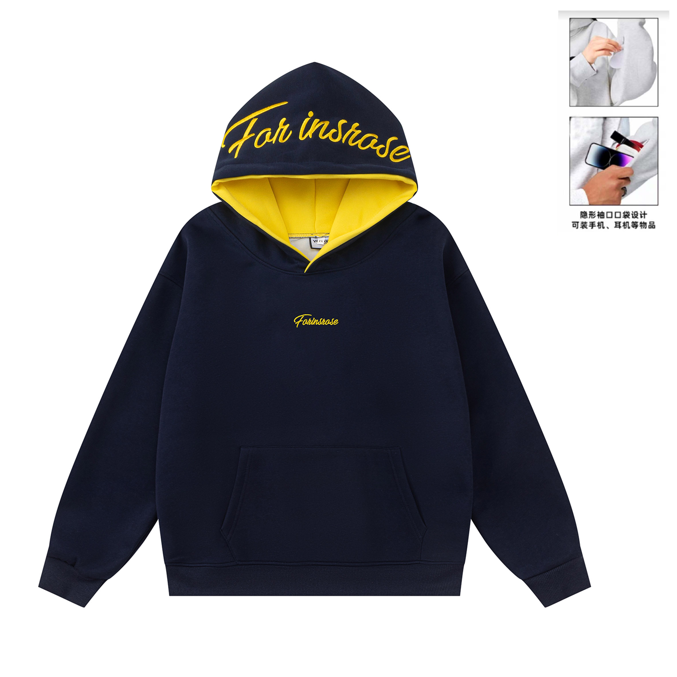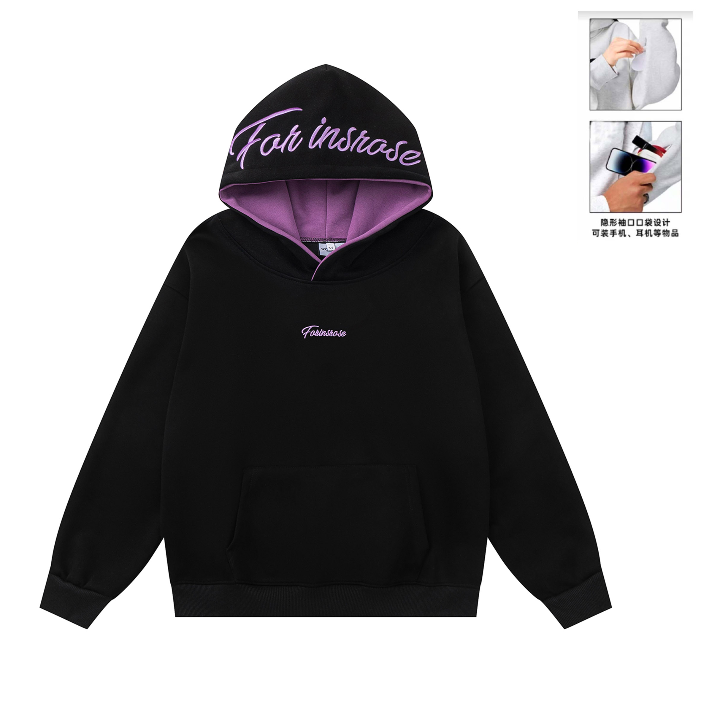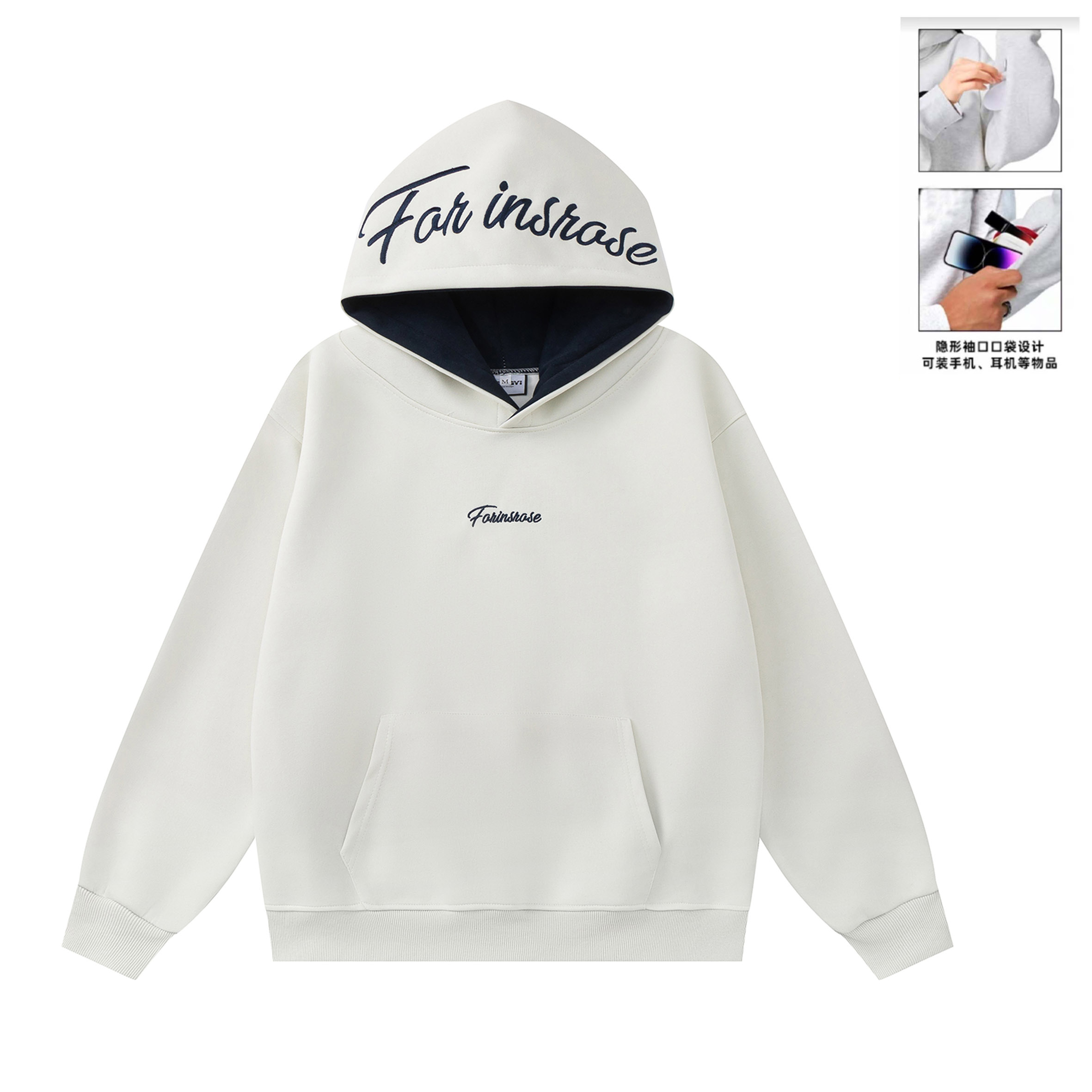 Rosepoem美式撞色連帽刺綉字母衛衣男女秋冬寬松設計感情侶上衣潮