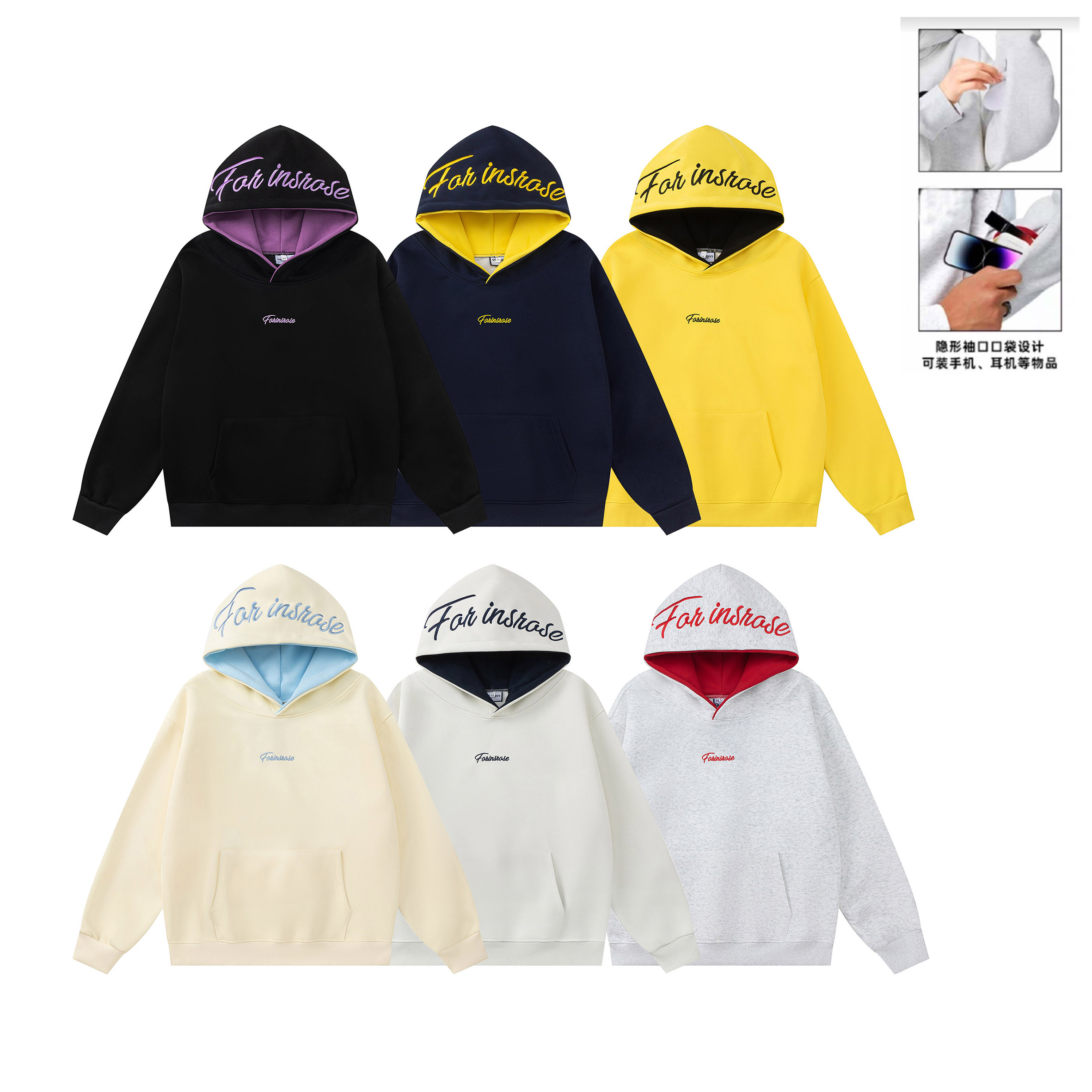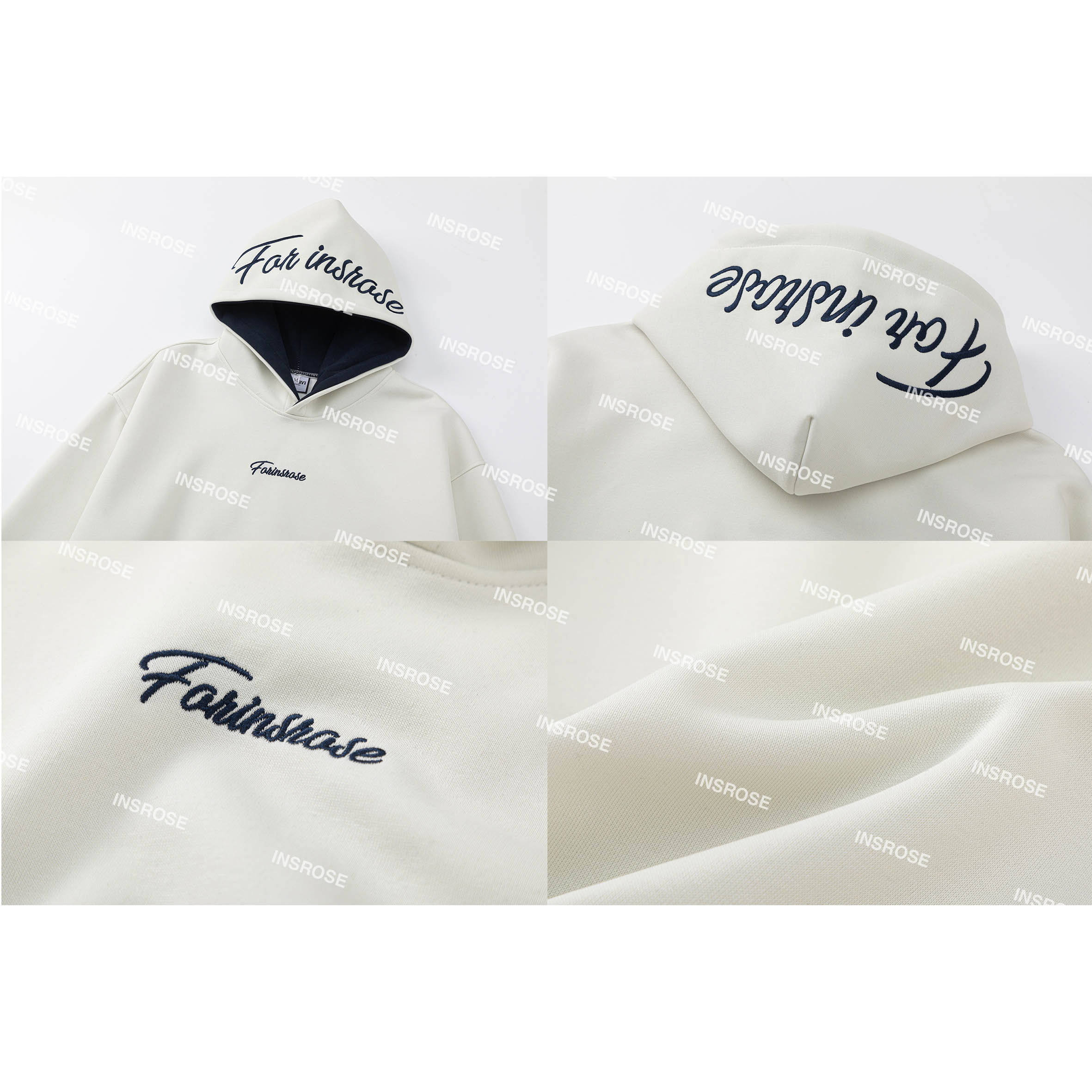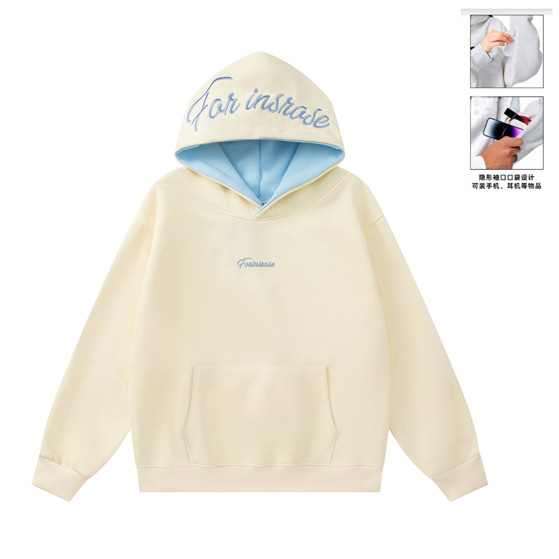 Rosepoem美式撞色連帽刺綉字母衛衣男女秋冬寬松設計感情侶上衣潮