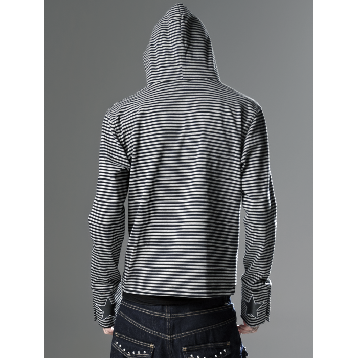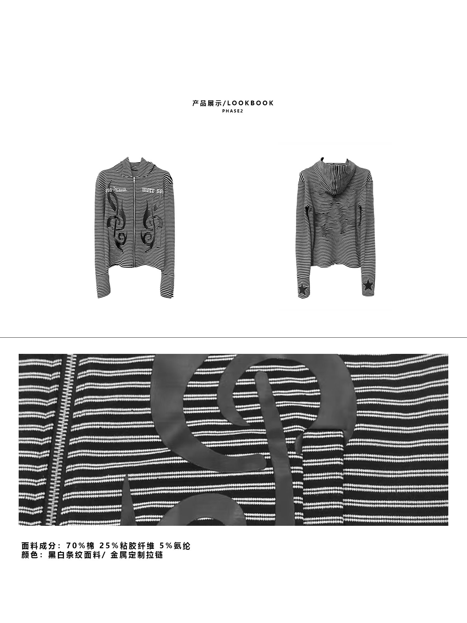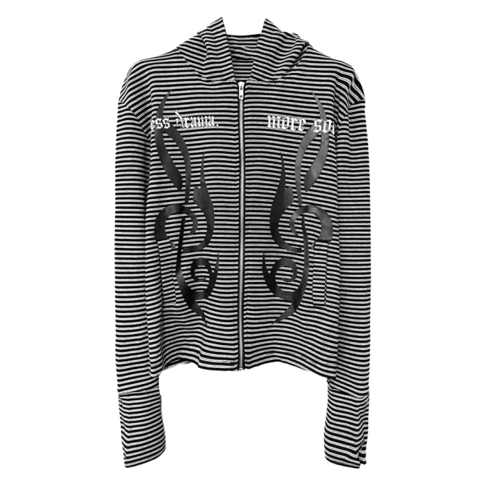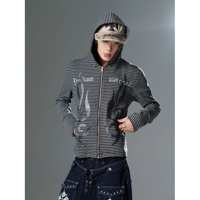 DETW 25AW*小衆圖騰哥特音符*條紋拉鍊正肩修身連帽開衫外套男女