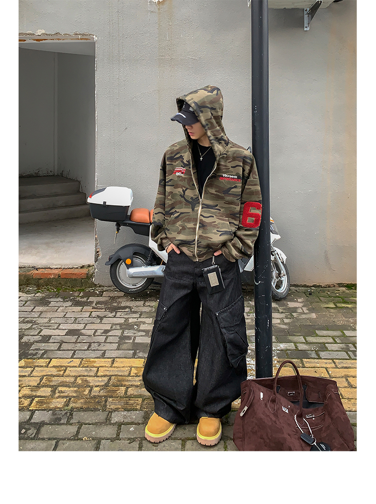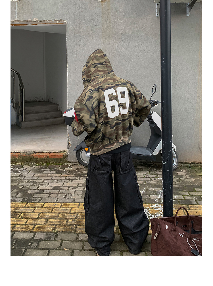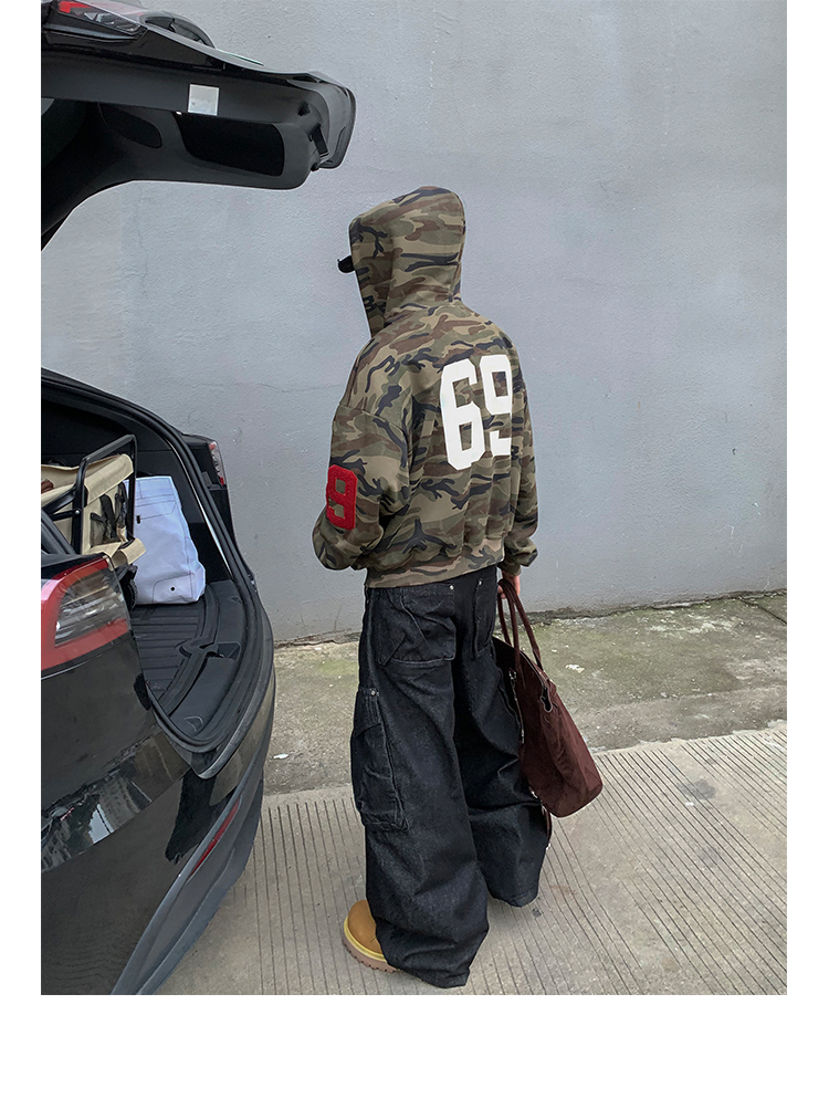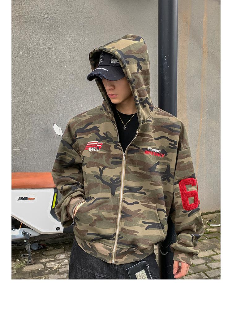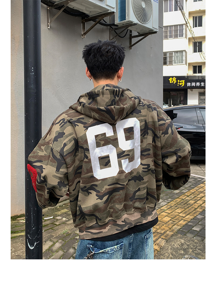 PLTH*秋季新品美式復古潮流迷彩刺綉上衣街頭寬松連帽男女衛衣