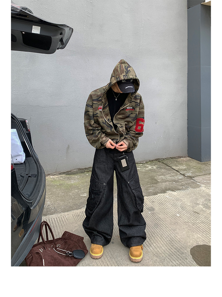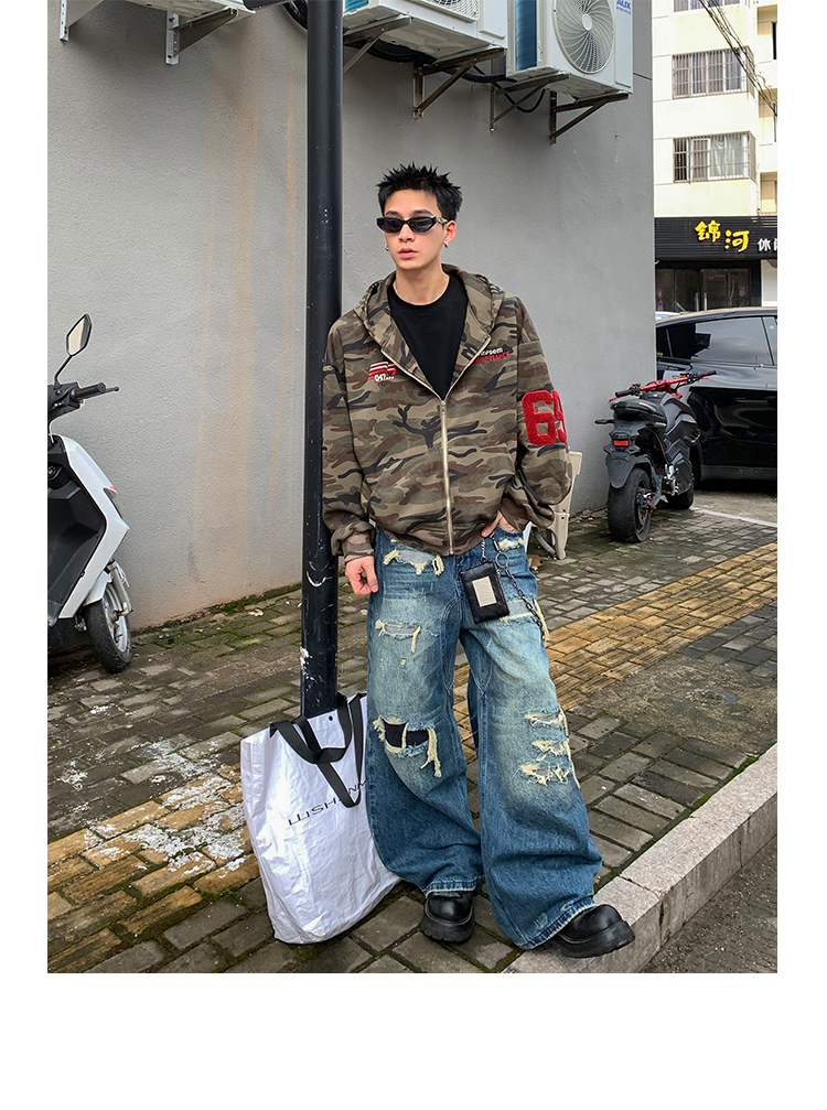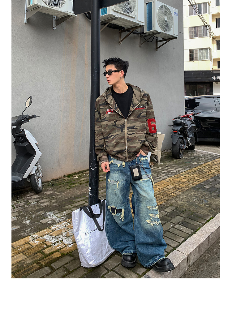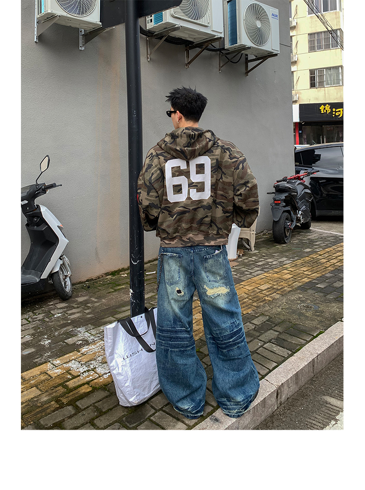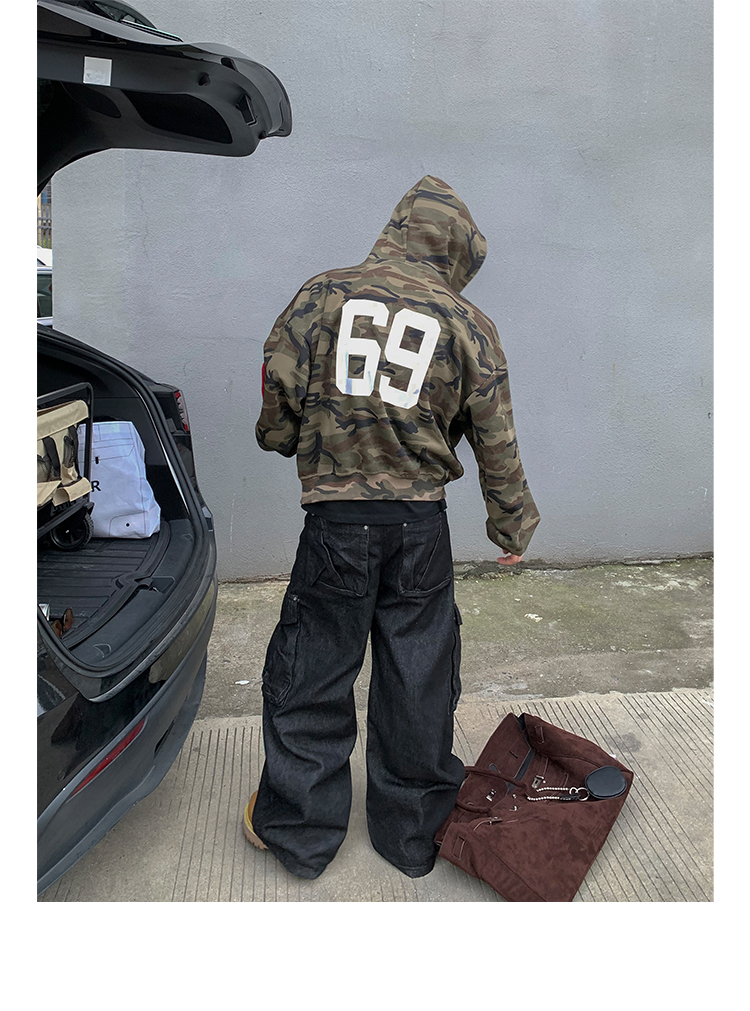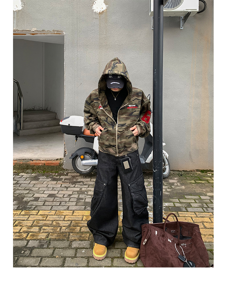 PLTH*秋季新品美式復古潮流迷彩刺綉上衣街頭寬松連帽男女衛衣