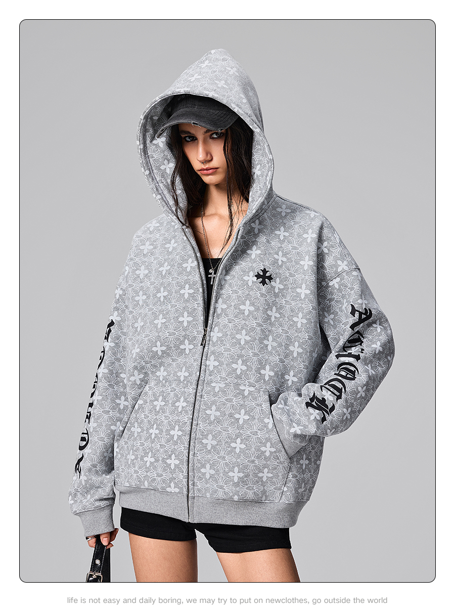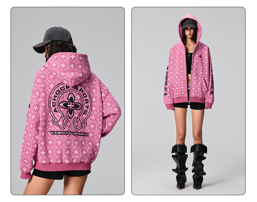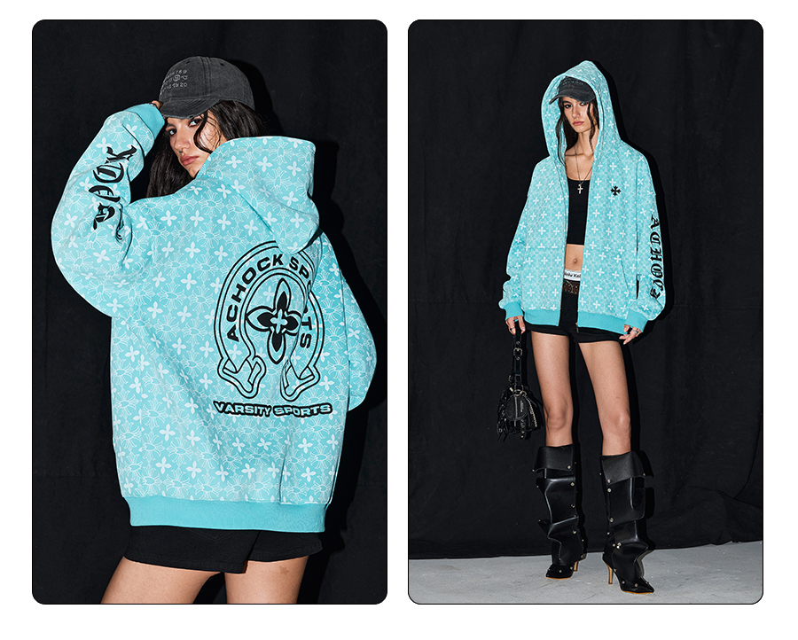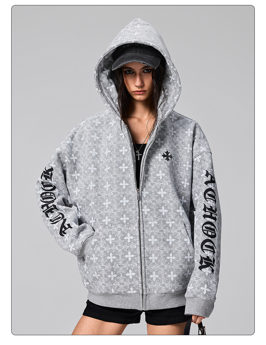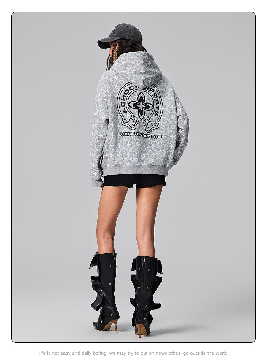 【Achock官方店】街頭復古哥特字滿印重工外套美式百搭連帽衛衣男