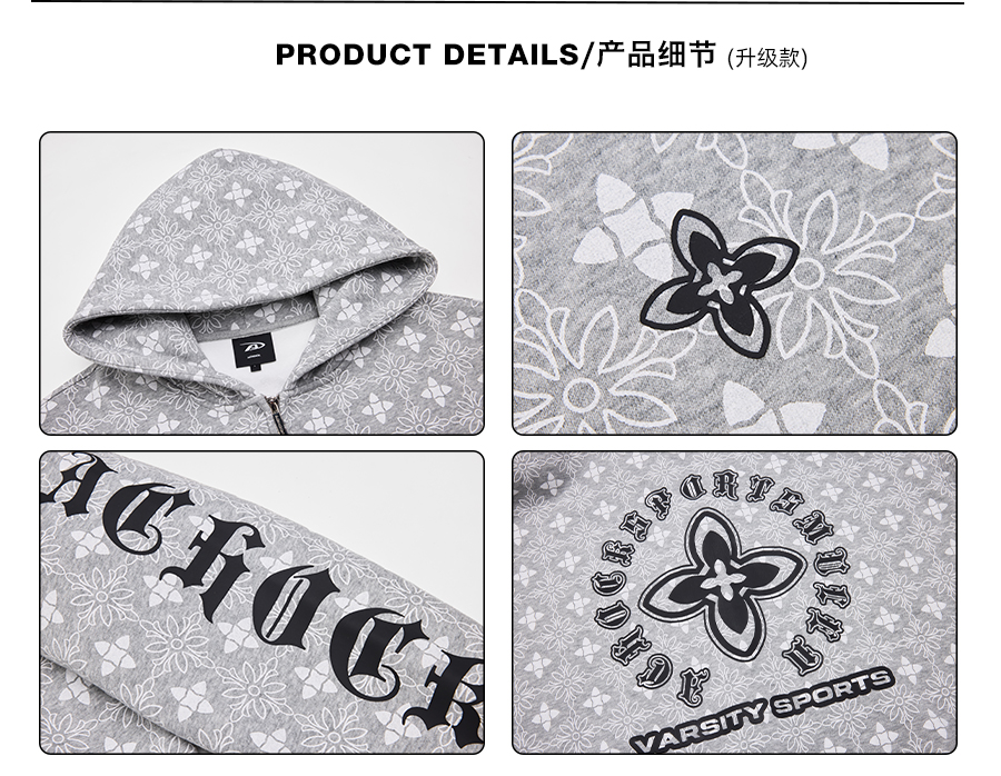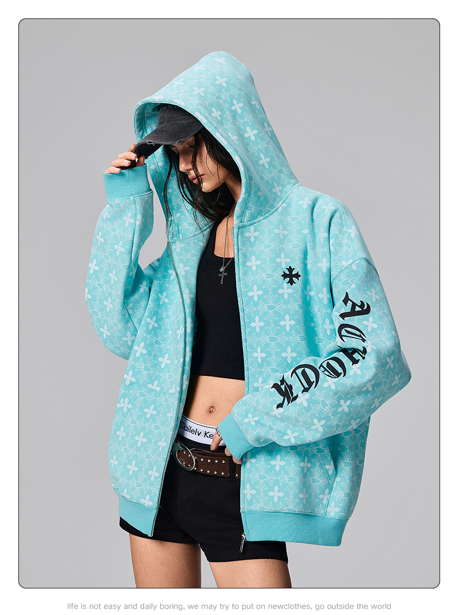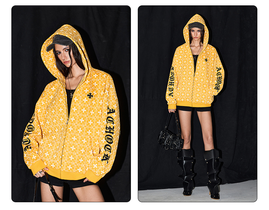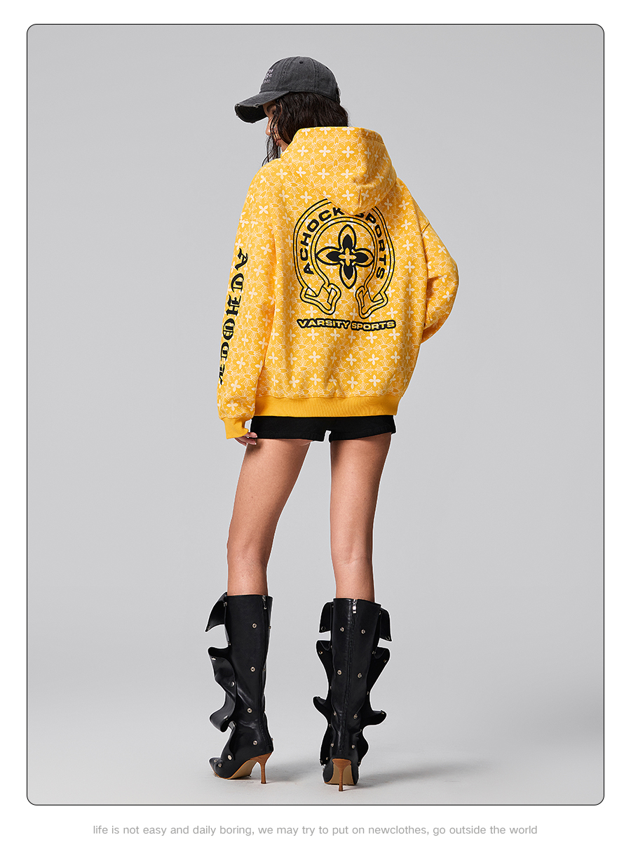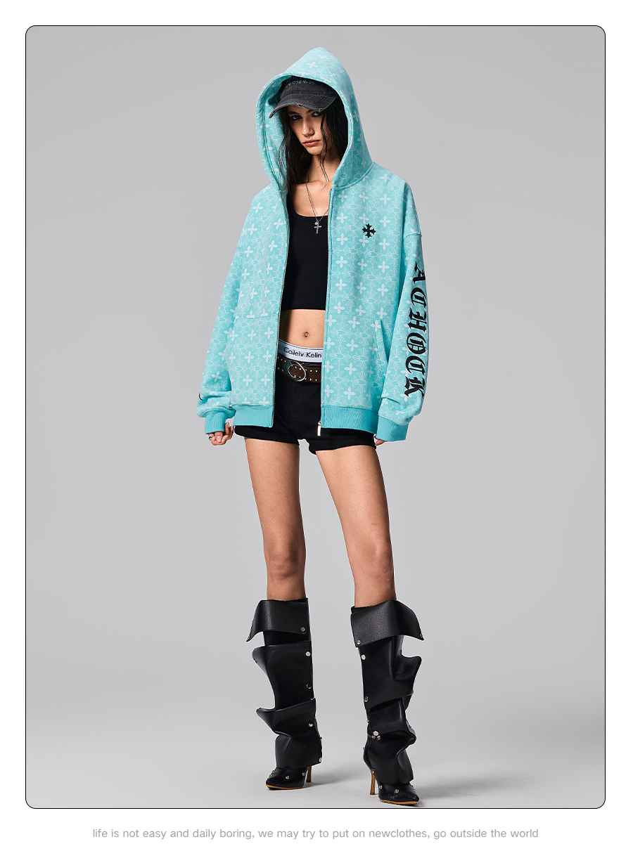 【Achock官方店】街頭復古哥特字滿印重工外套美式百搭連帽衛衣男