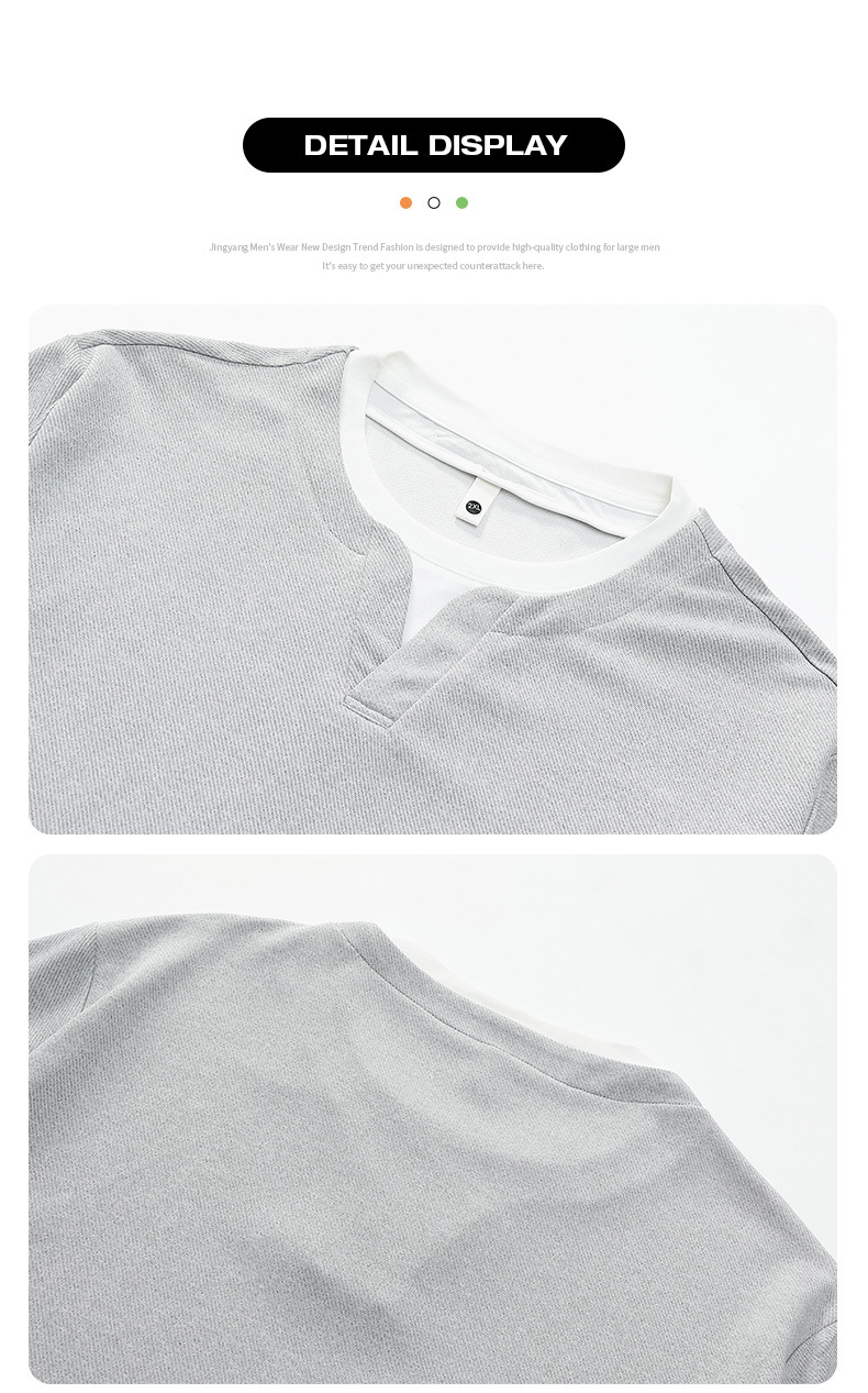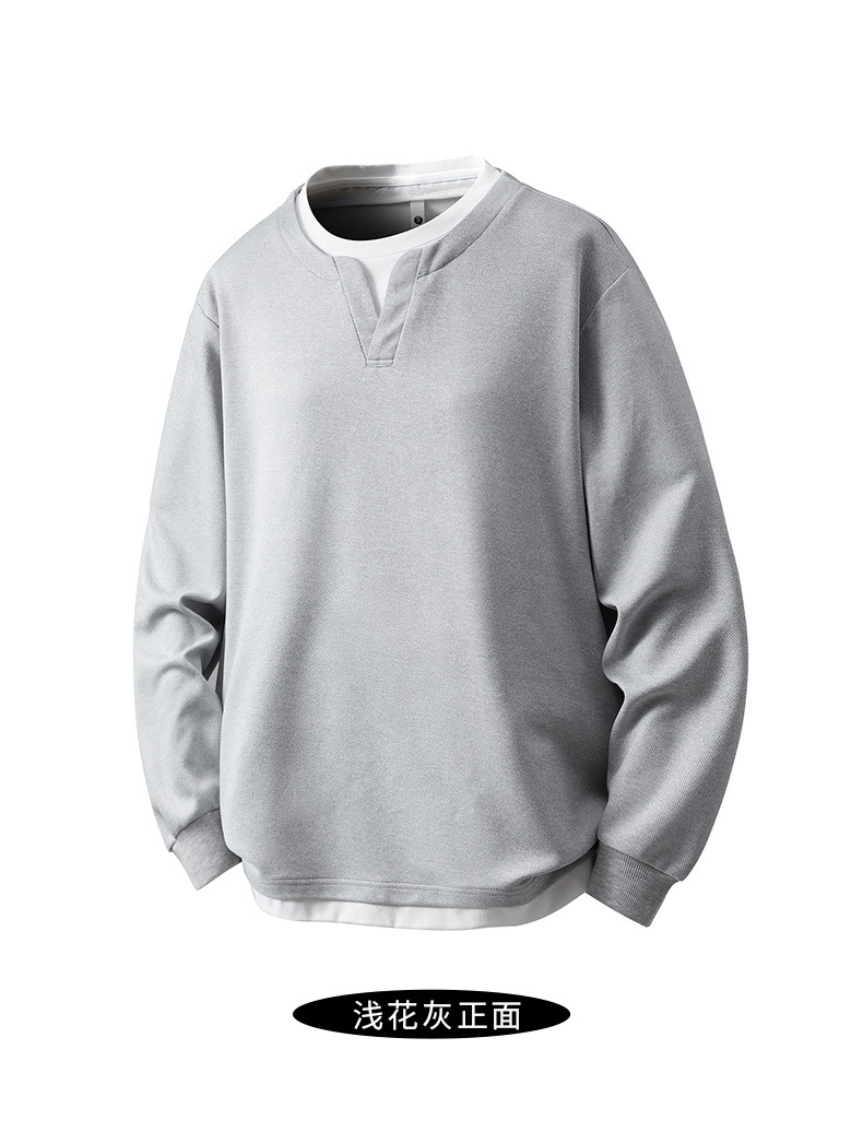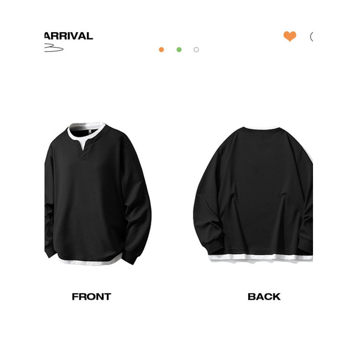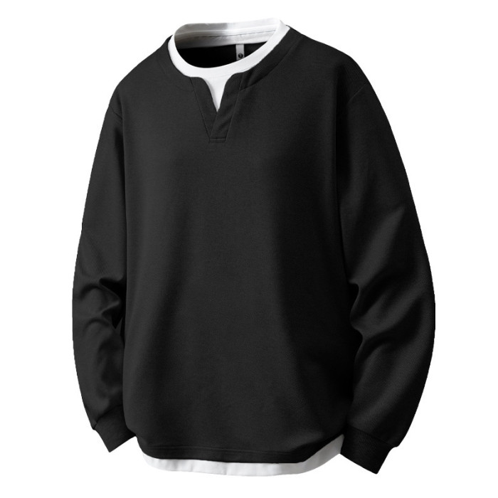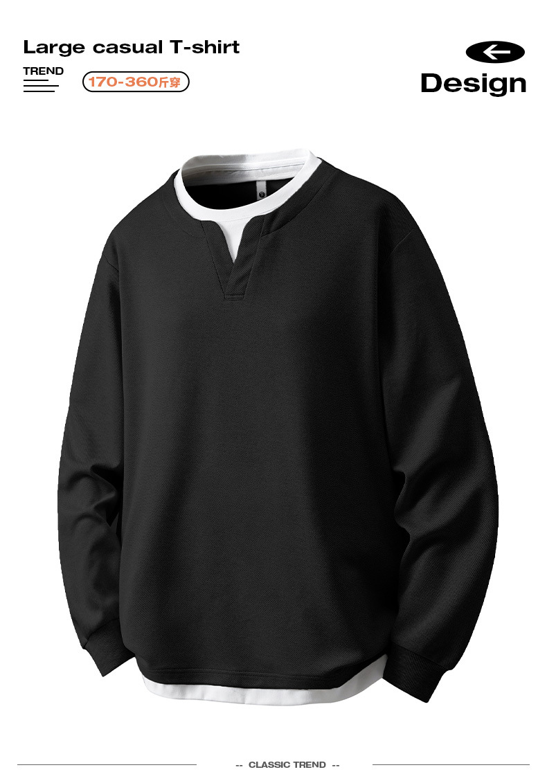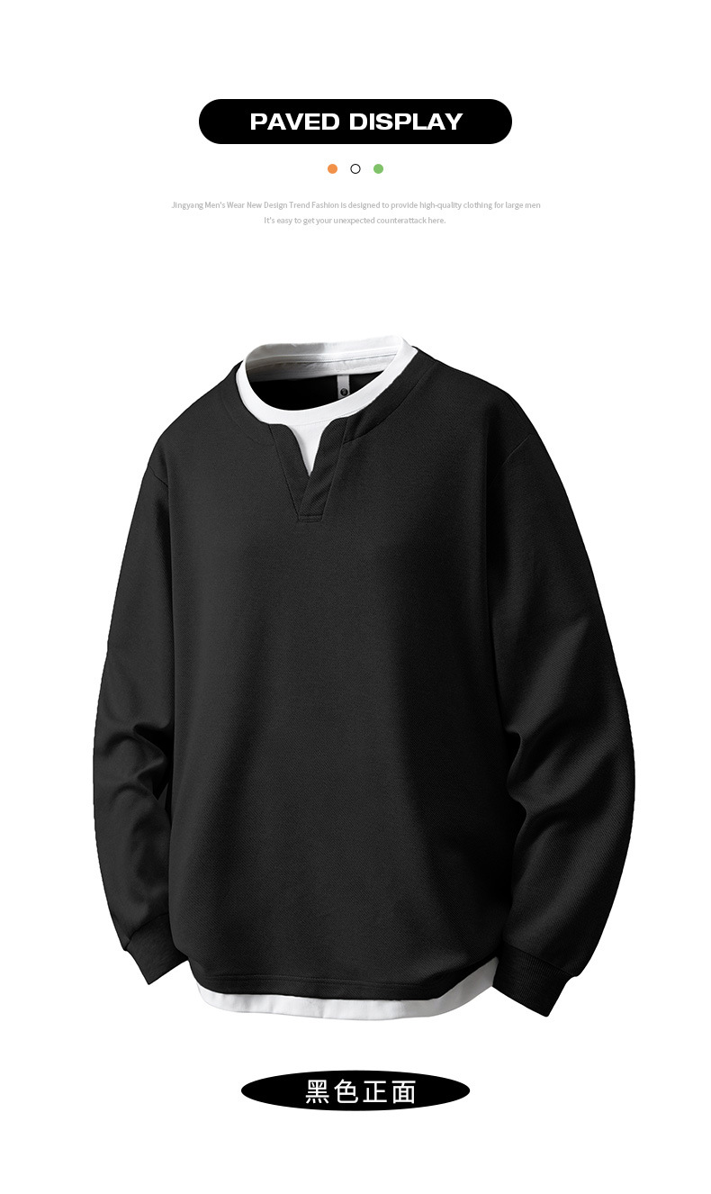 大碼假兩件亨利領衛衣男2025新款韓版寬松百搭休閒套頭內搭打底衫