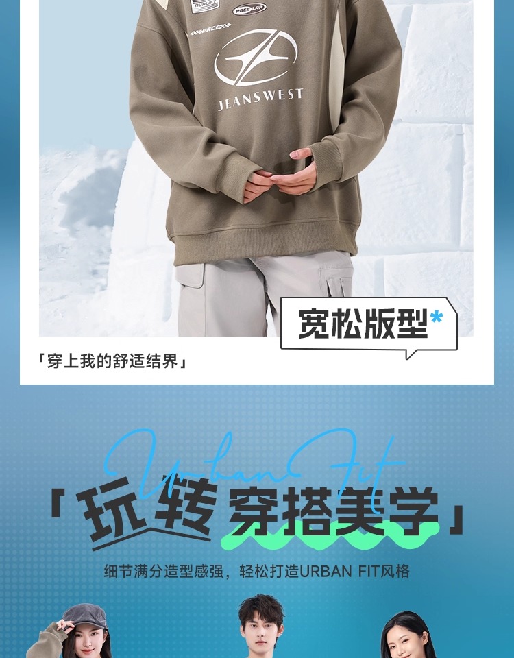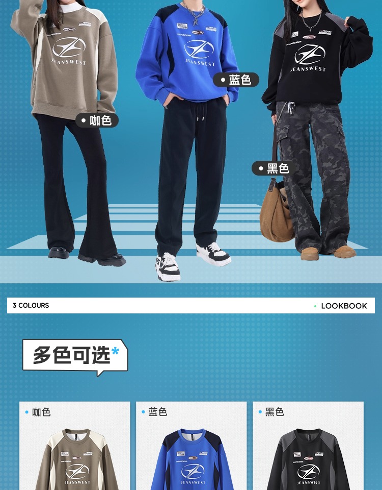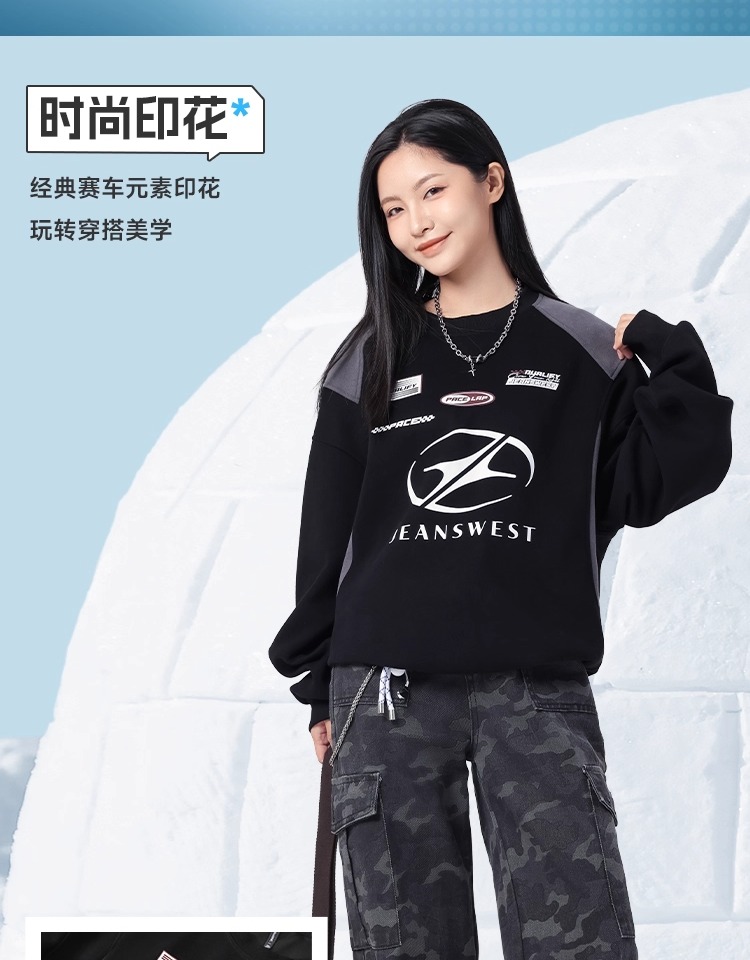 【王一博同款】真維斯美式拼接衛衣男女冬季blockcore新品上衣JR
