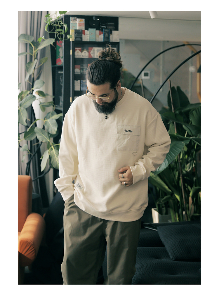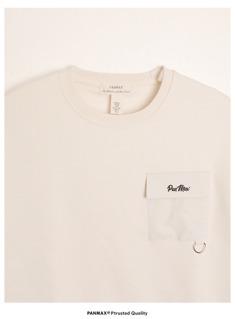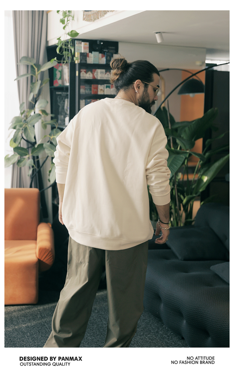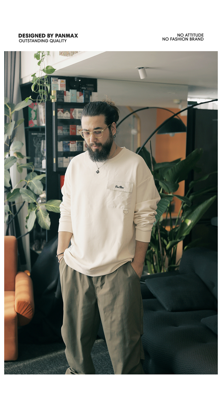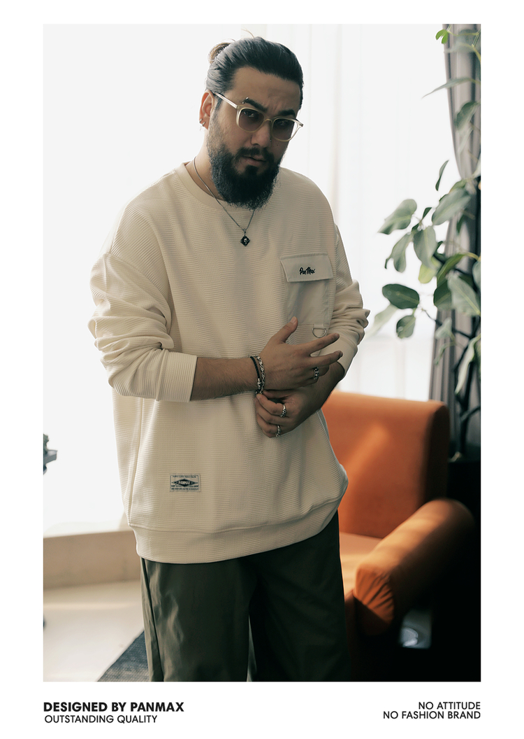 PANMAX大碼男裝潮牌肌理感純色衛衣潮酷工裝打底衫套頭圓領衛衣