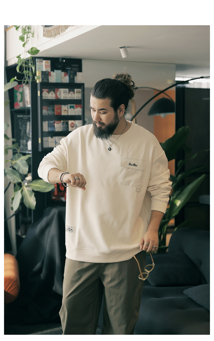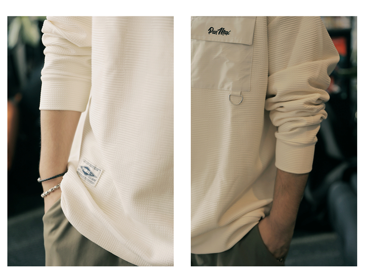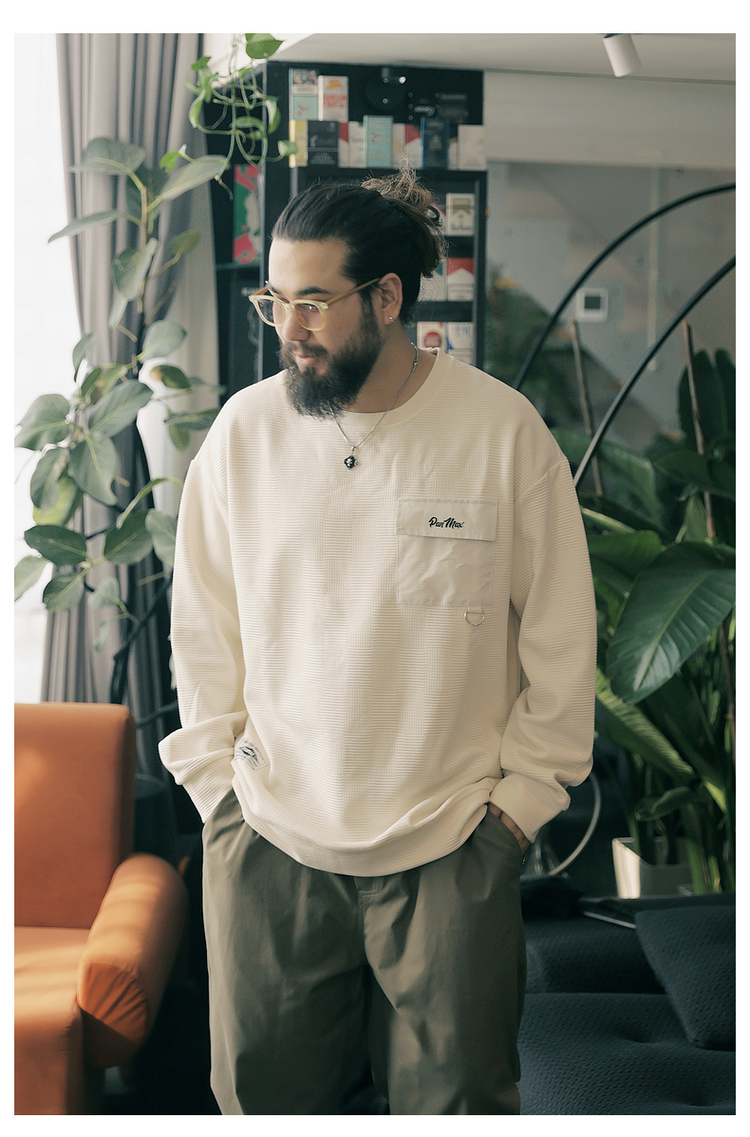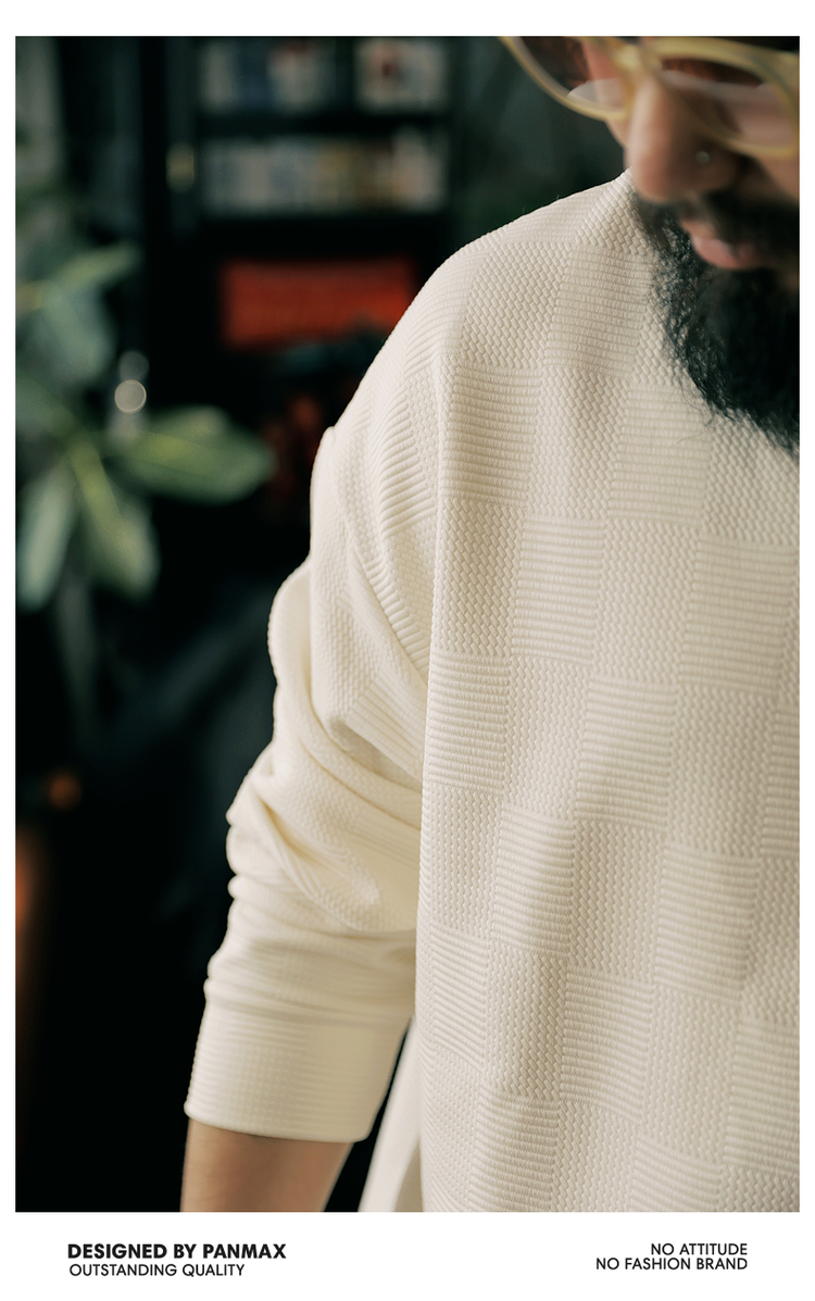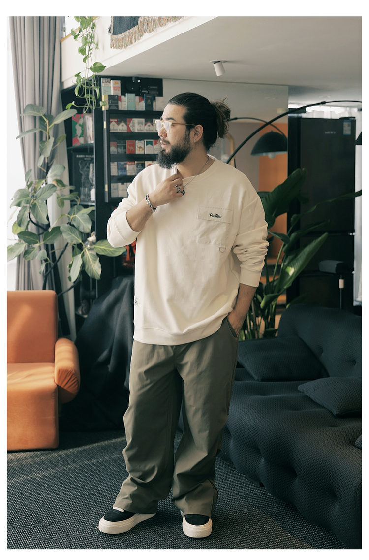 PANMAX大碼男裝潮牌肌理感純色衛衣潮酷工裝打底衫套頭圓領衛衣