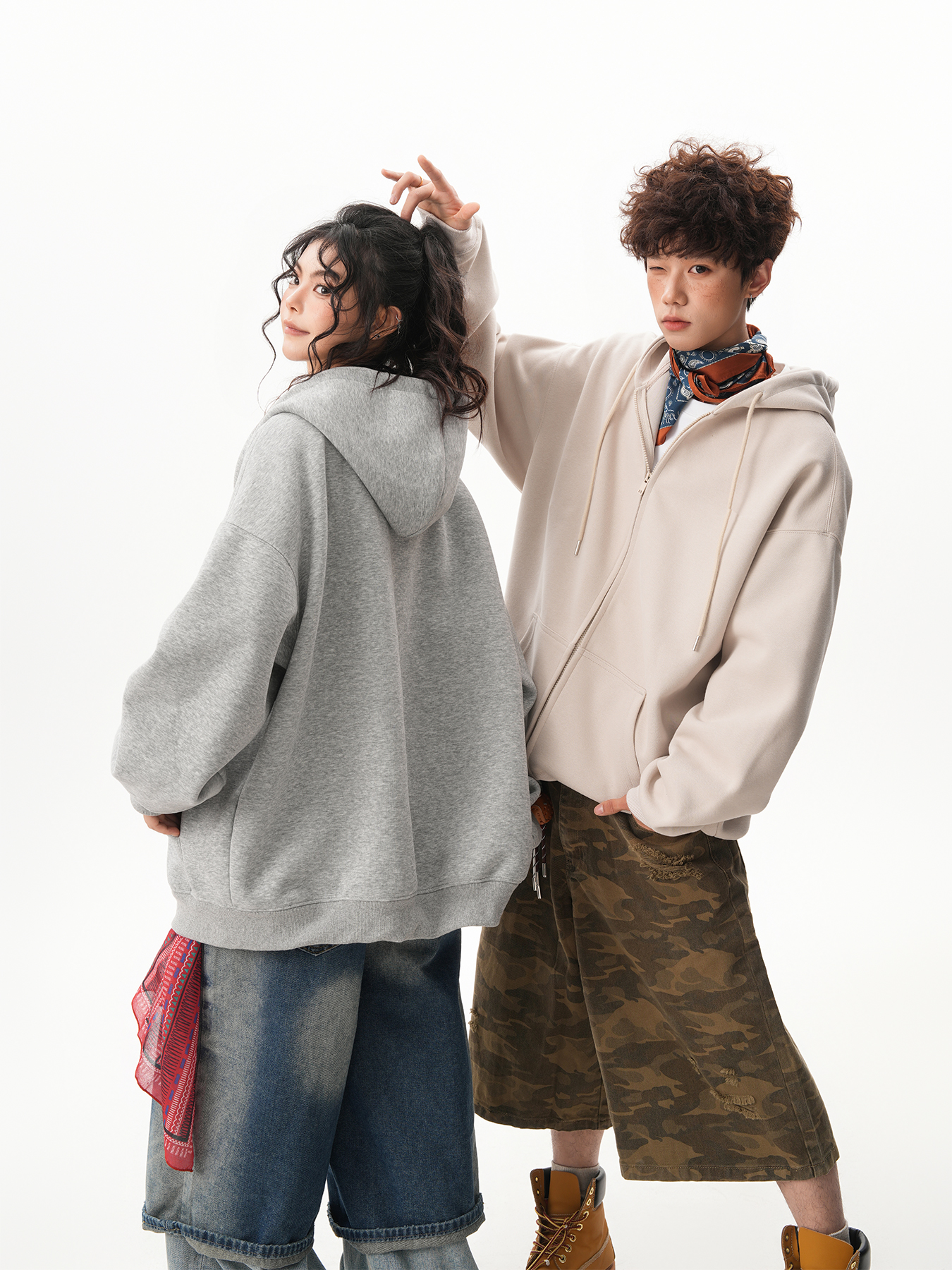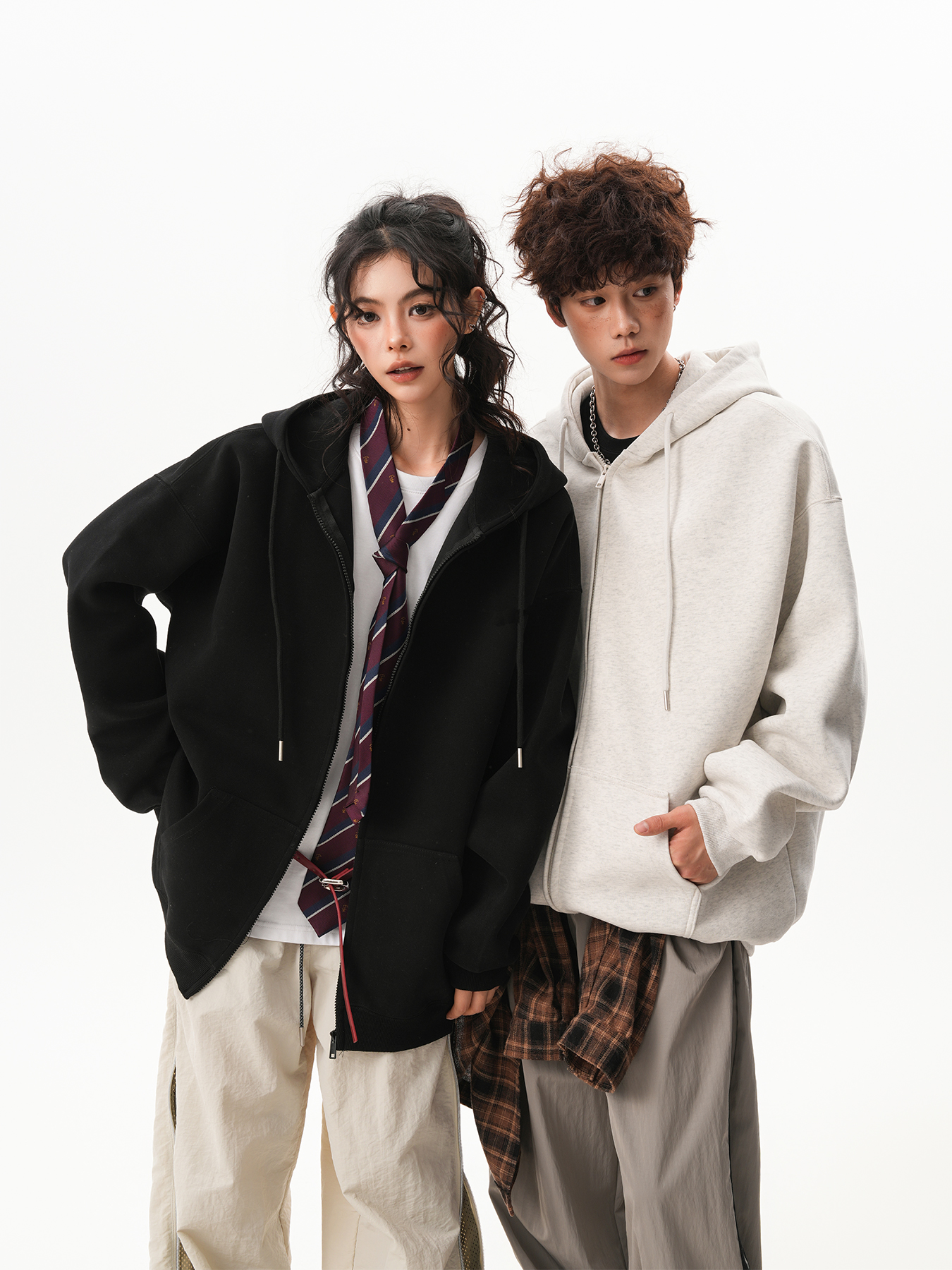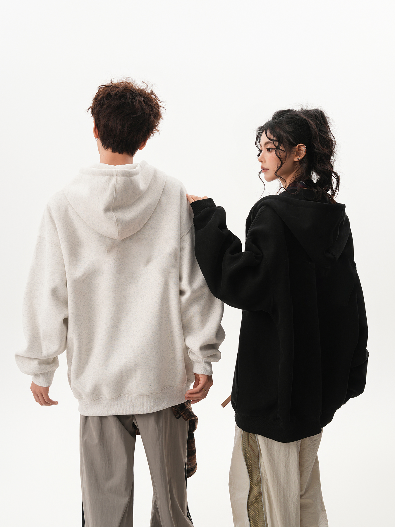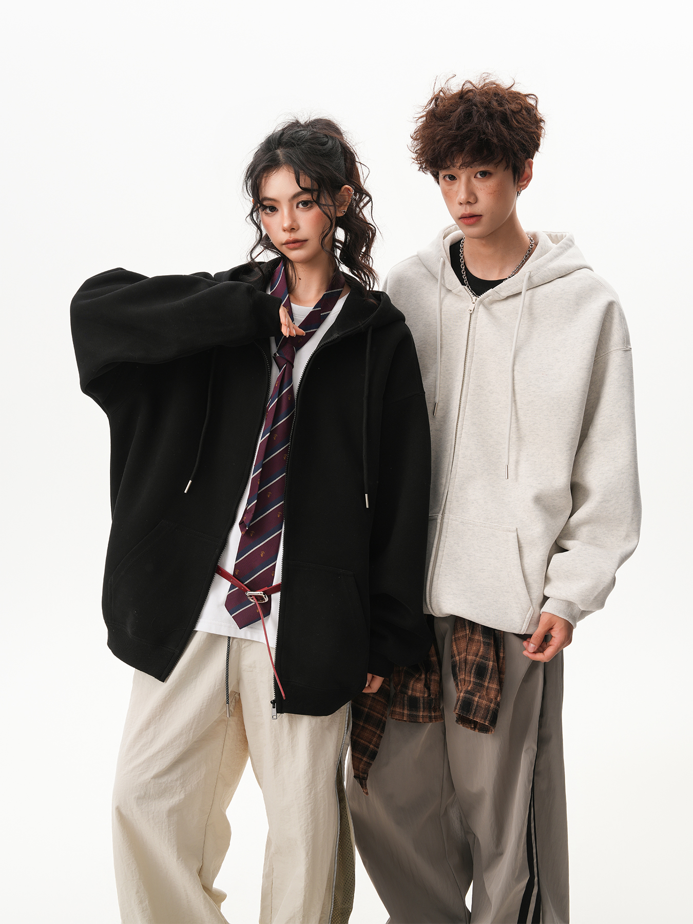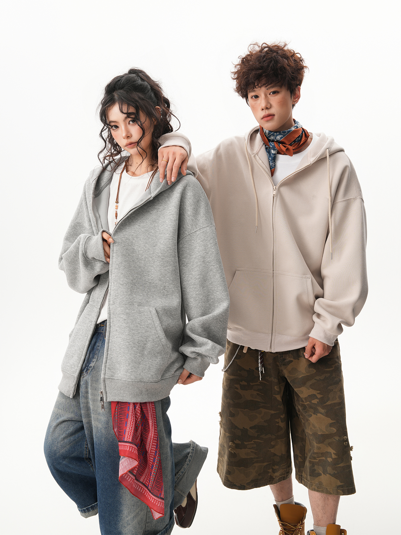 美式復古純色連帽衛衣男女秋季oversize情侶外套寬松百搭開衫上衣