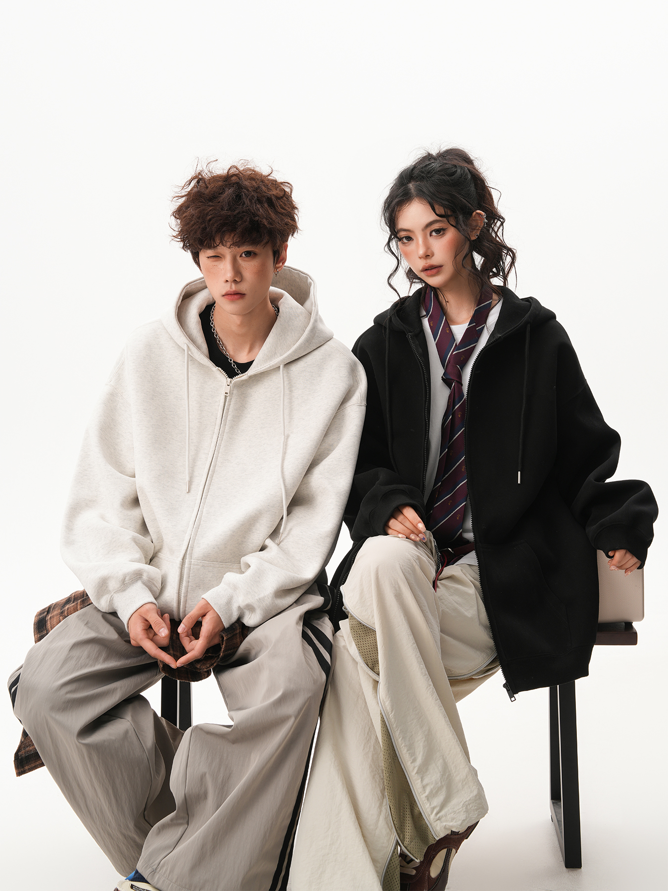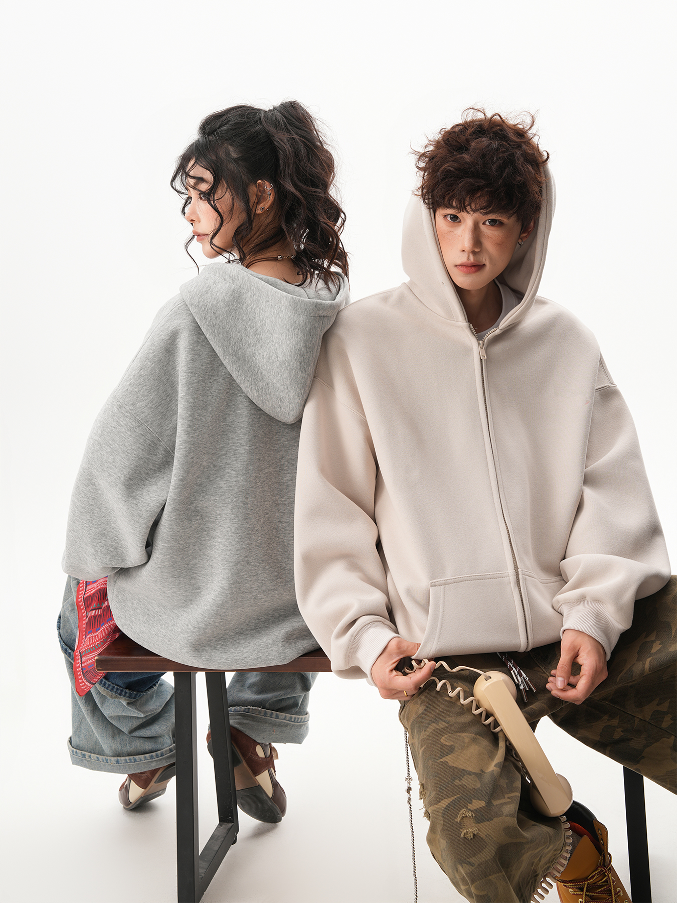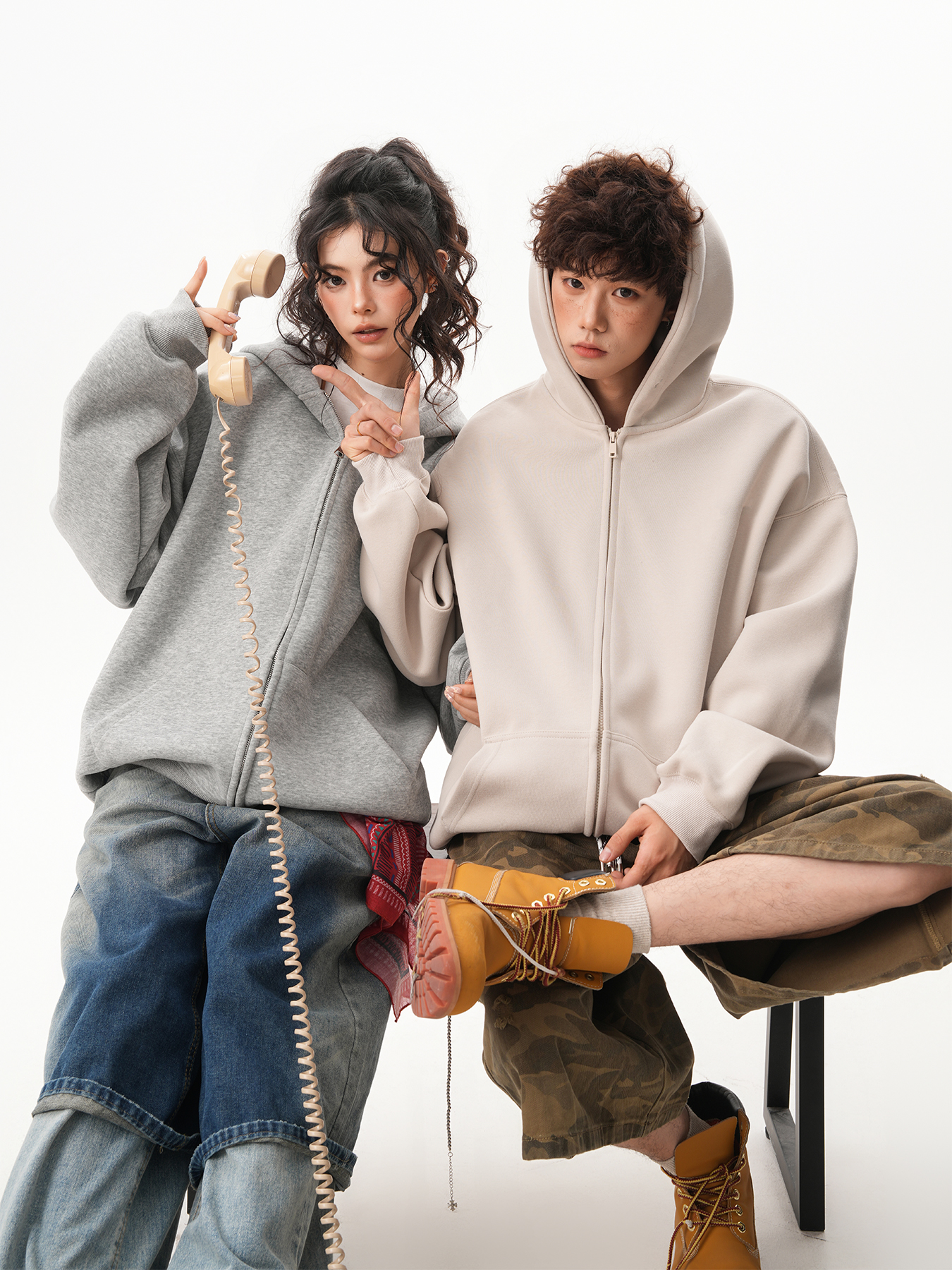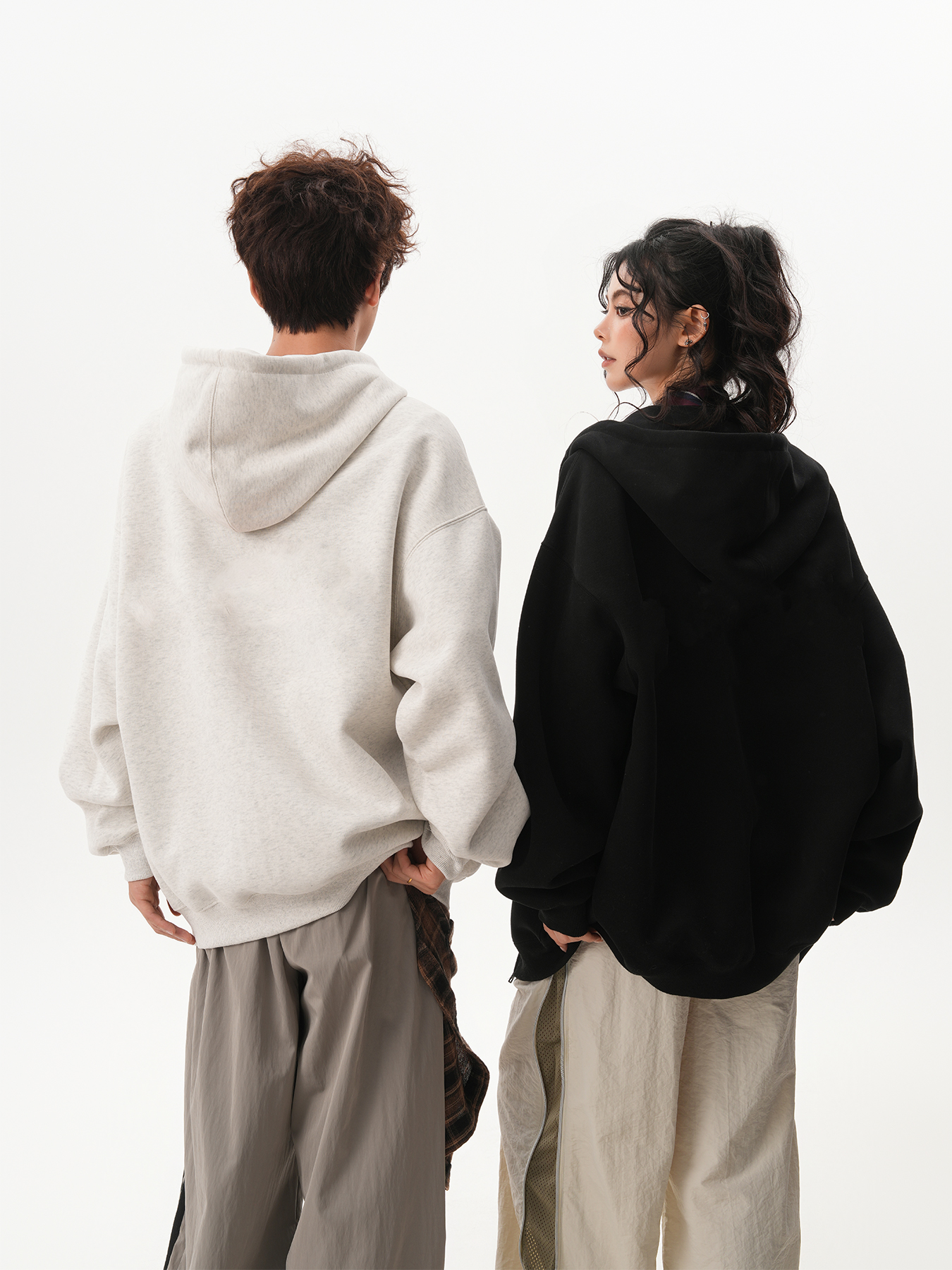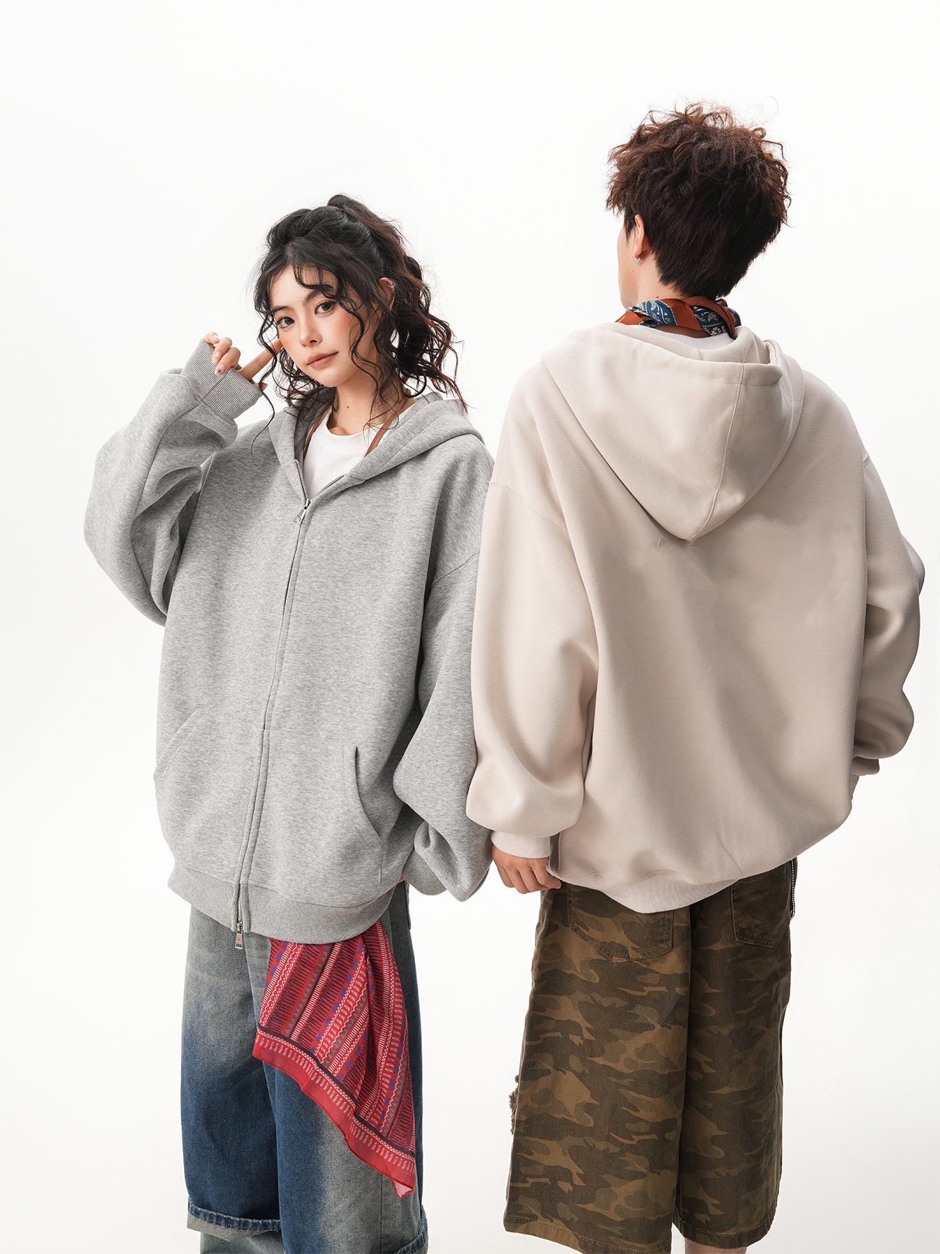 美式復古純色連帽衛衣男女秋季oversize情侶外套寬松百搭開衫上衣