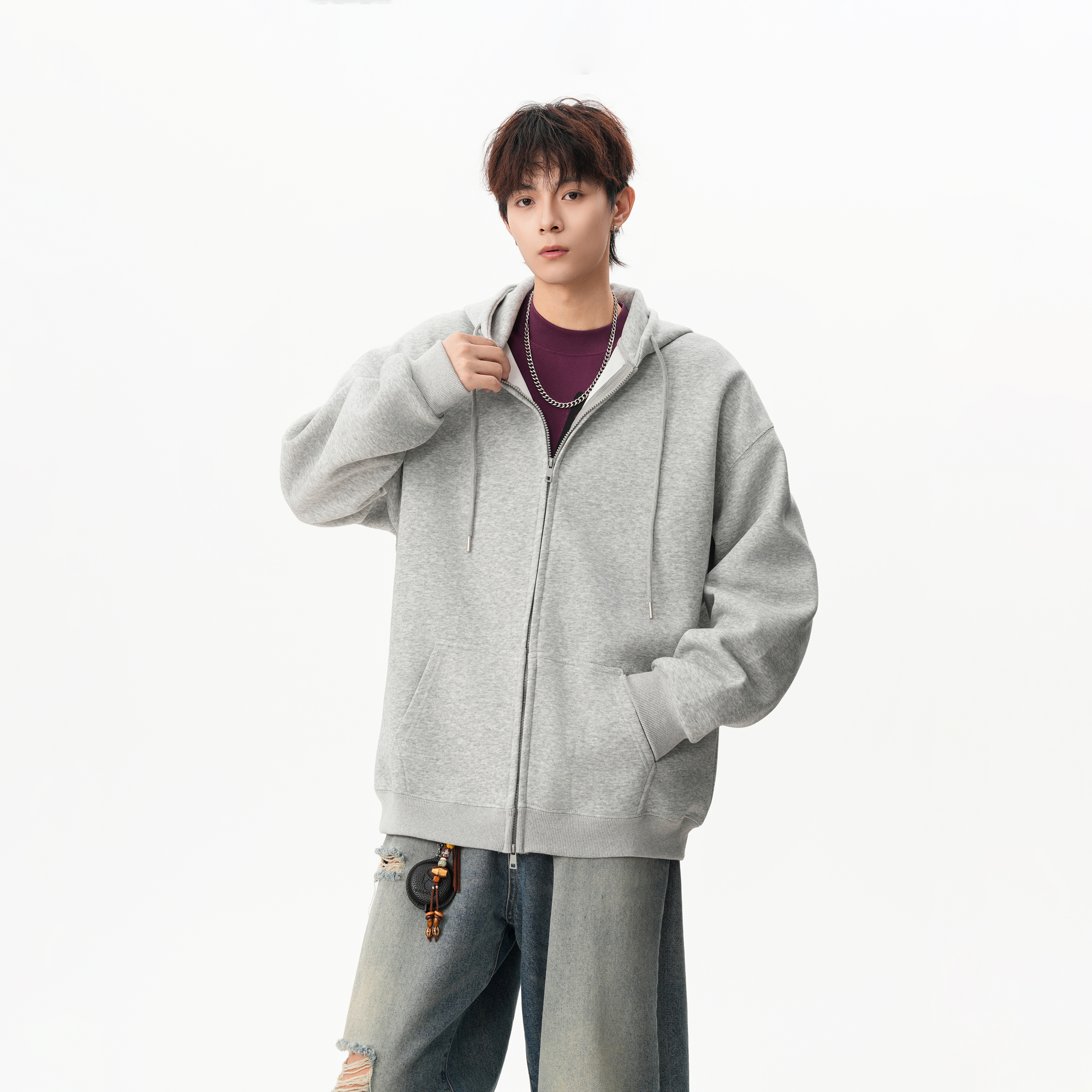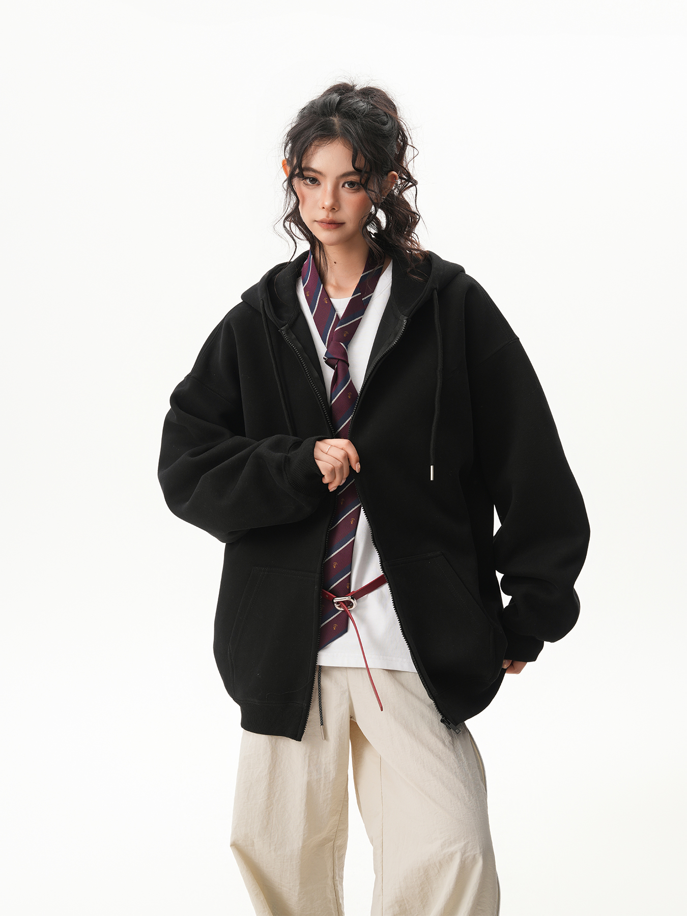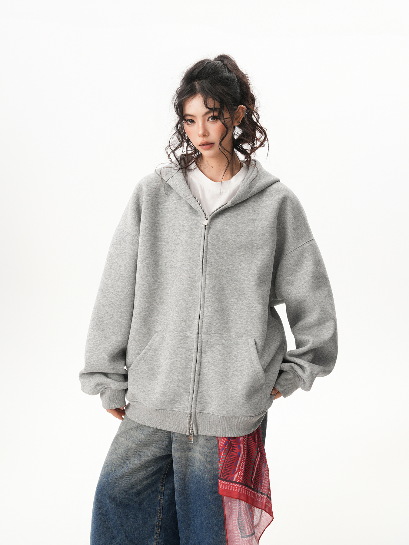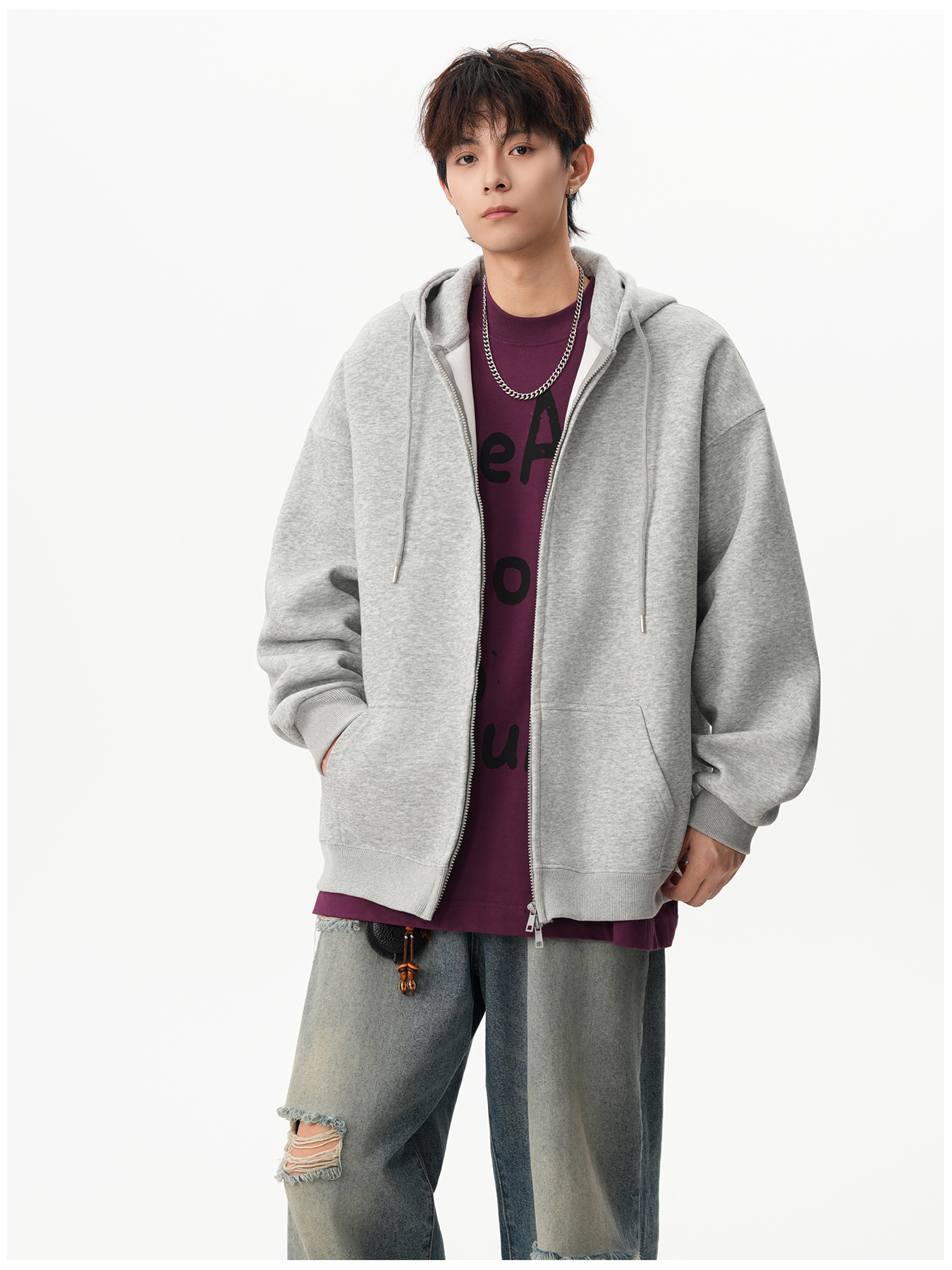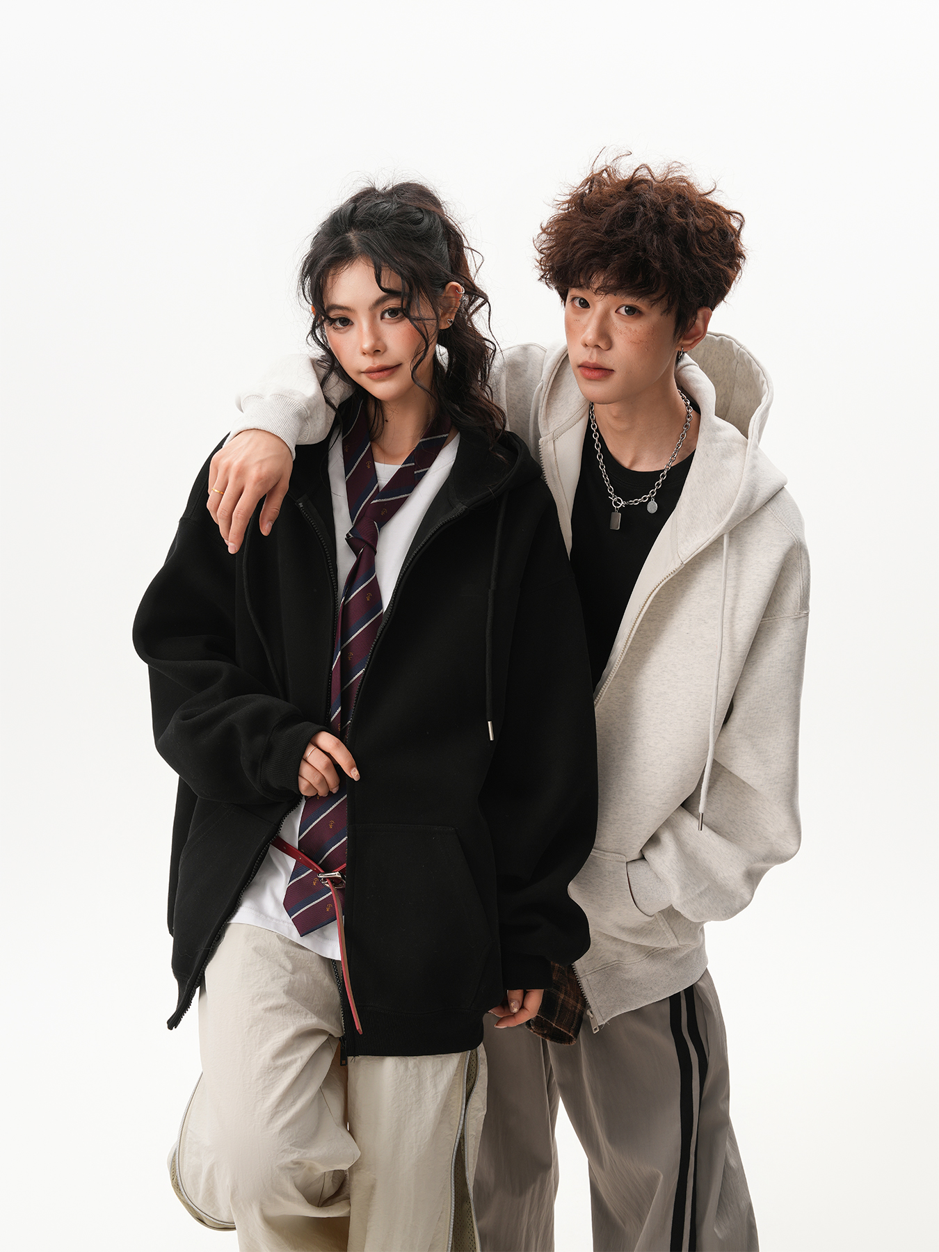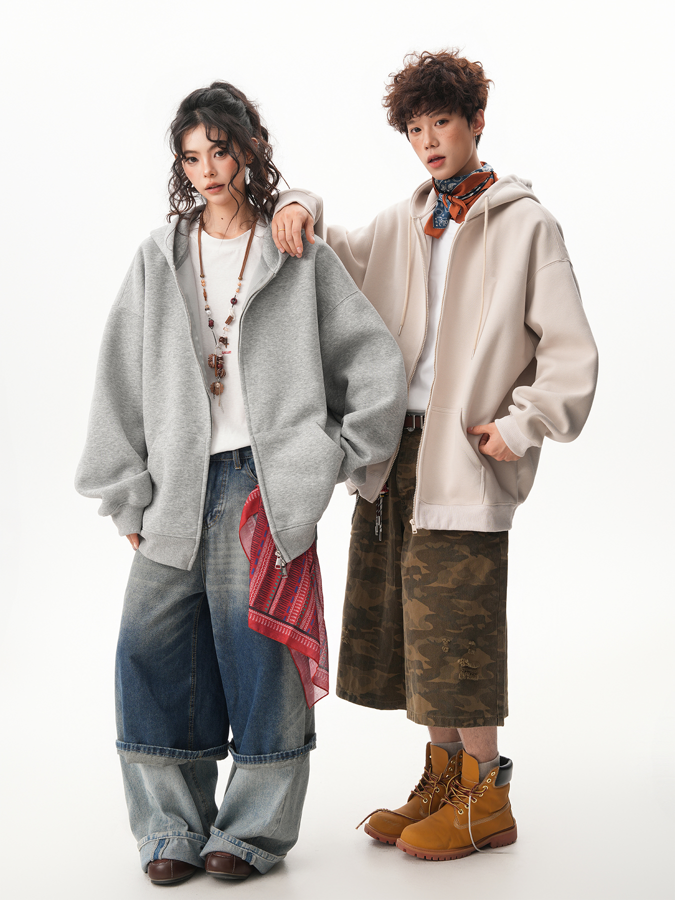 美式復古純色連帽衛衣男女秋季oversize情侶外套寬松百搭開衫上衣