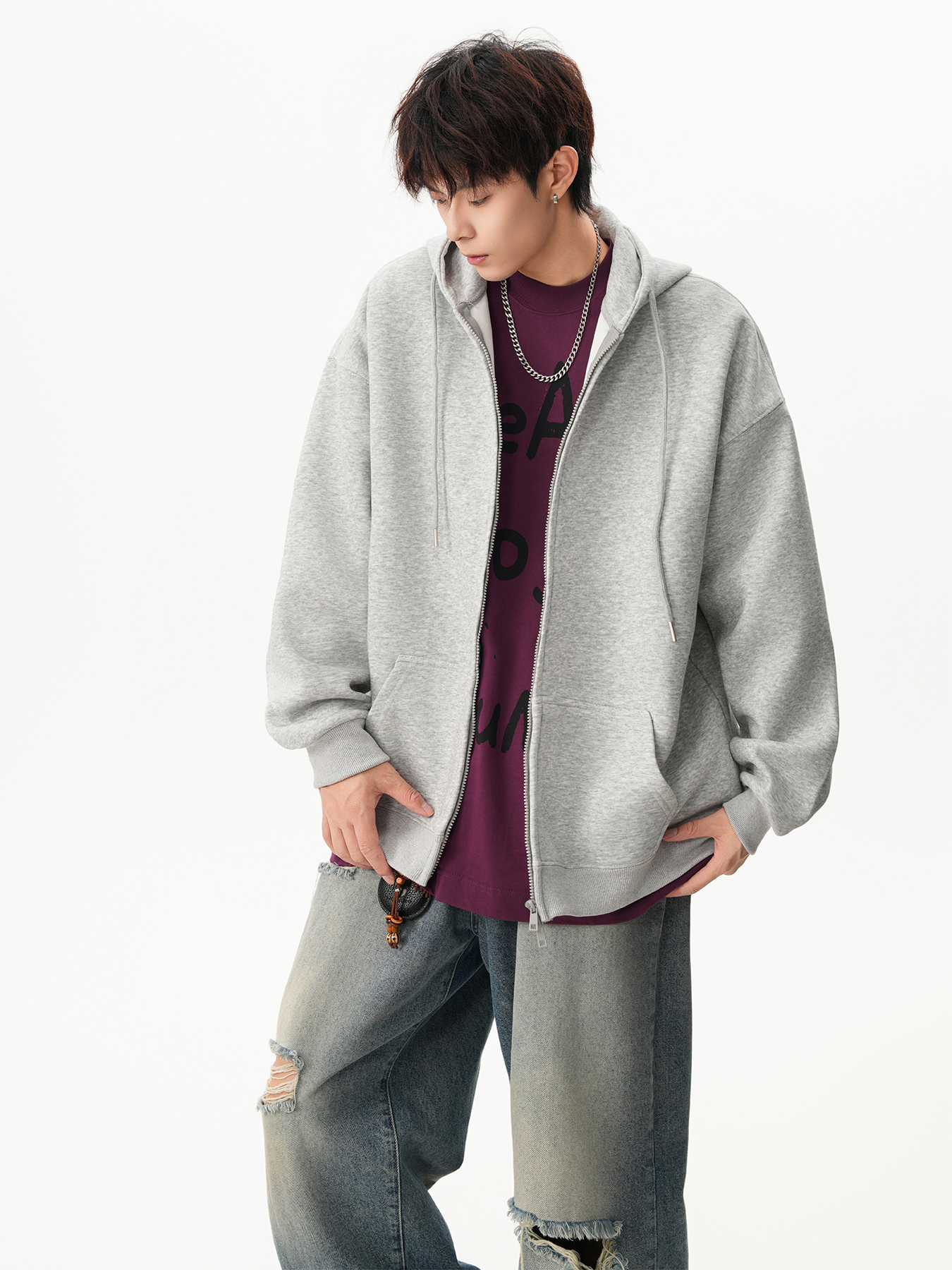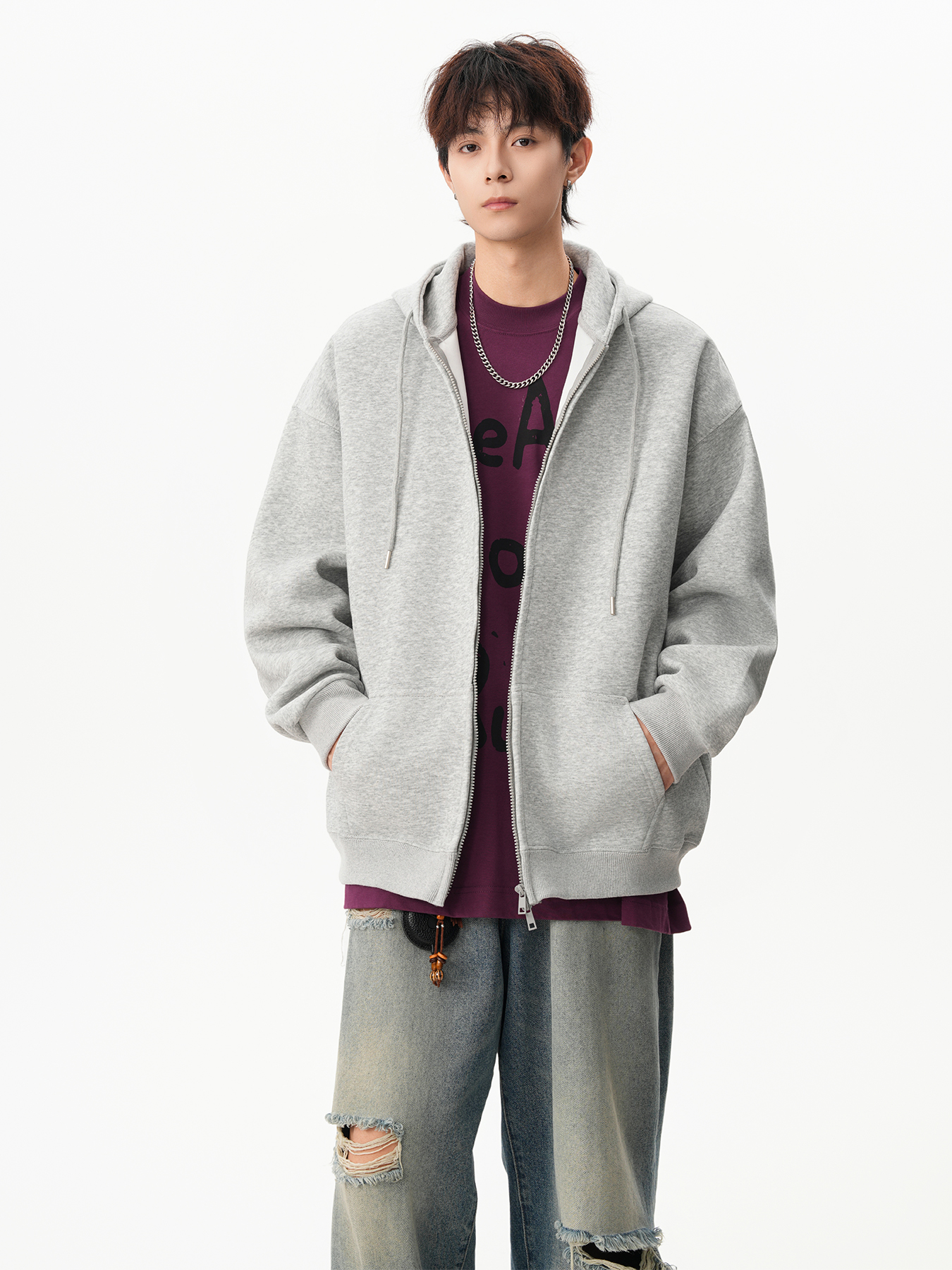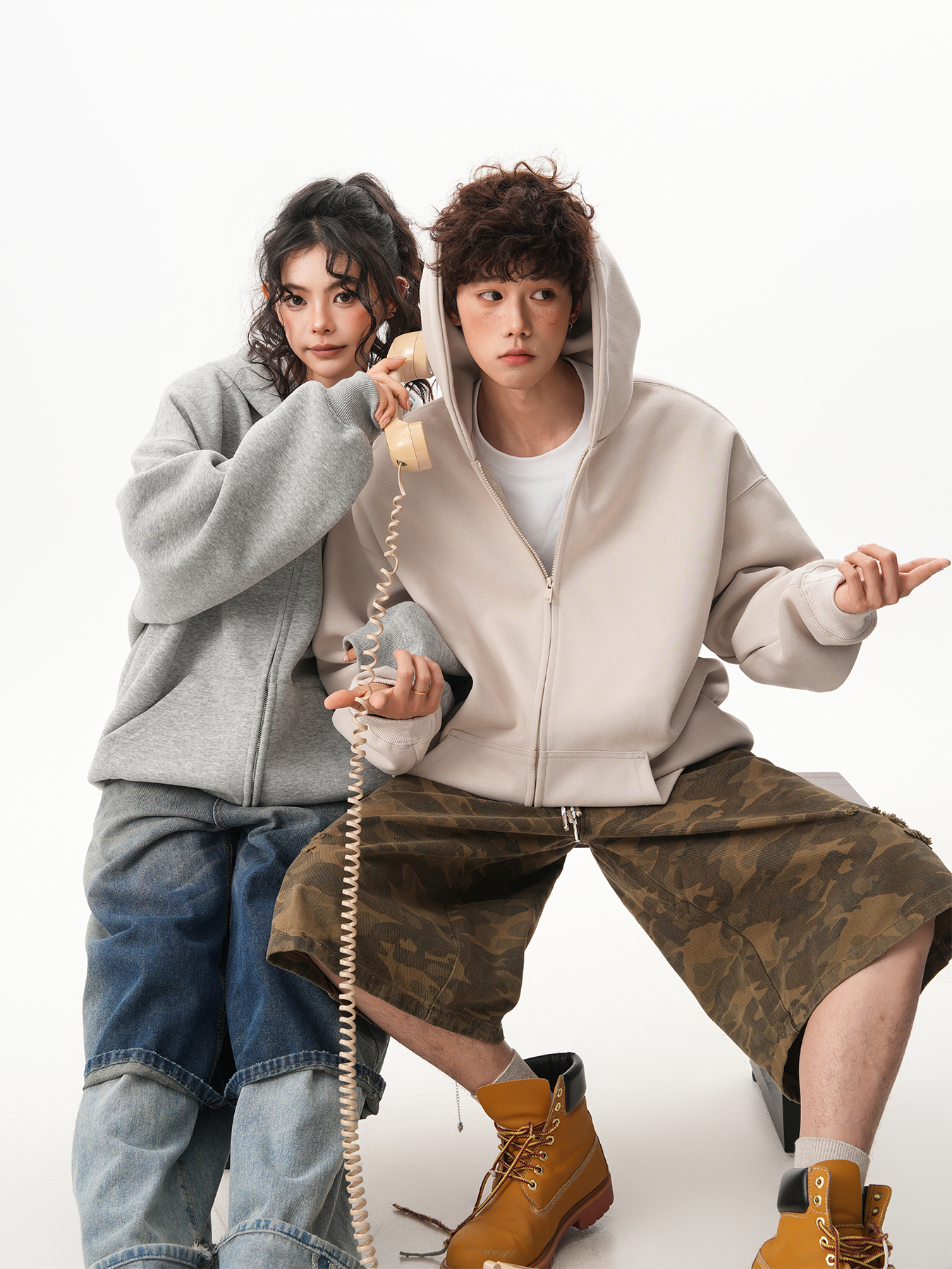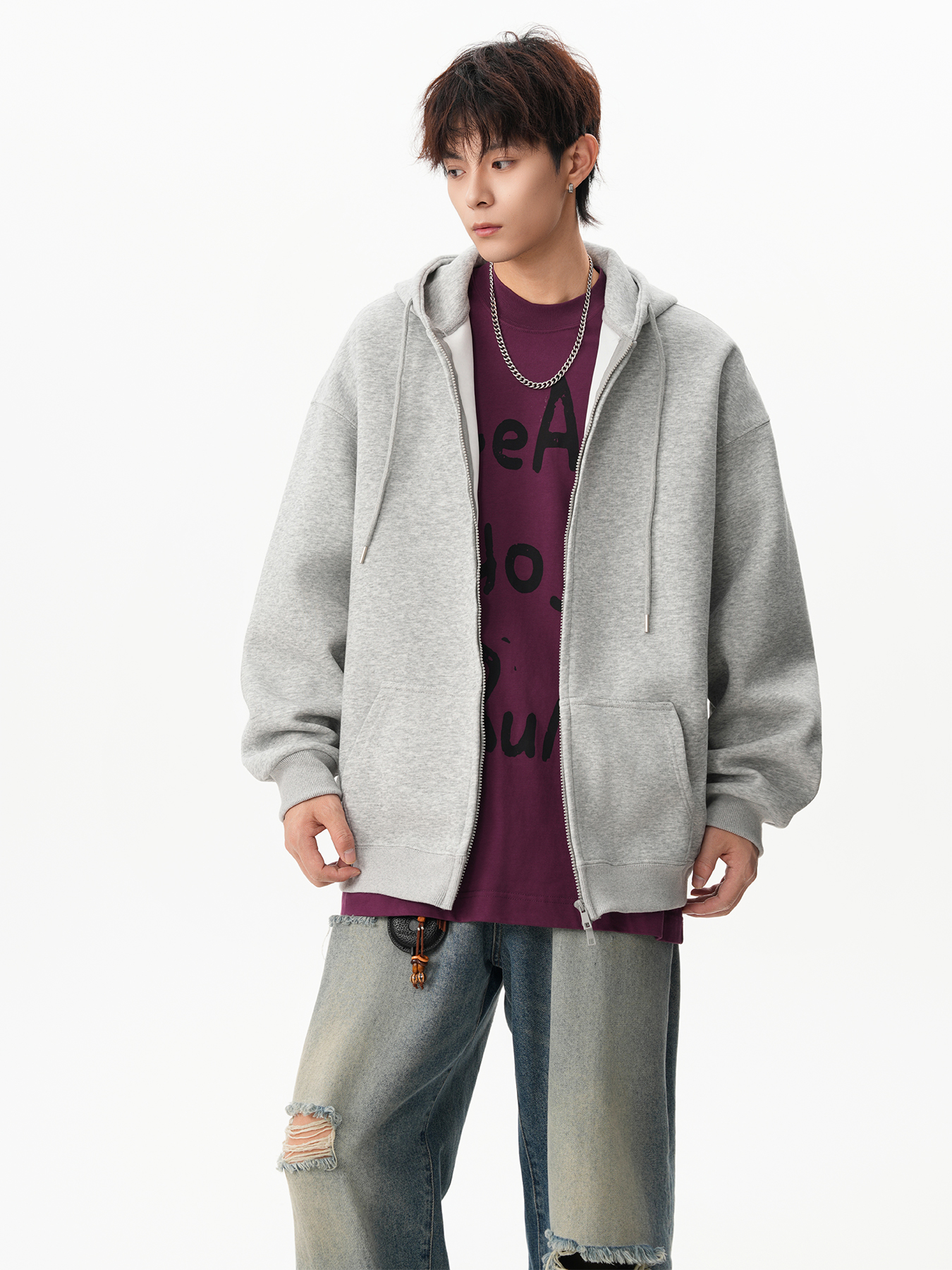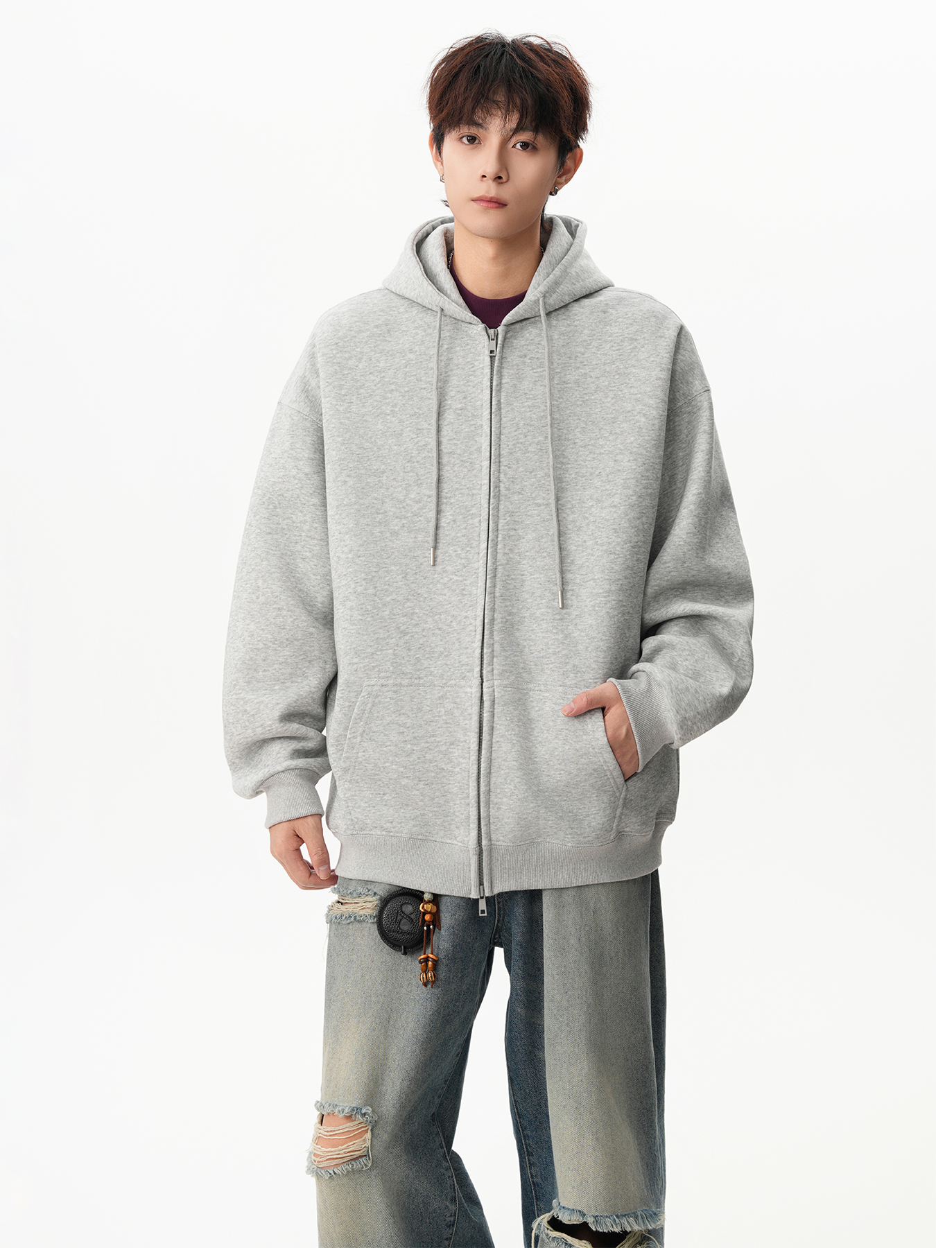 美式復古純色連帽衛衣男女秋季oversize情侶外套寬松百搭開衫上衣