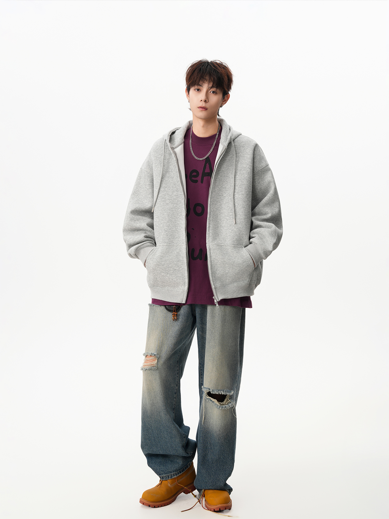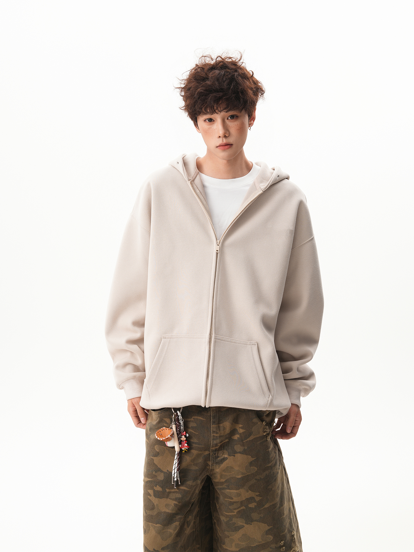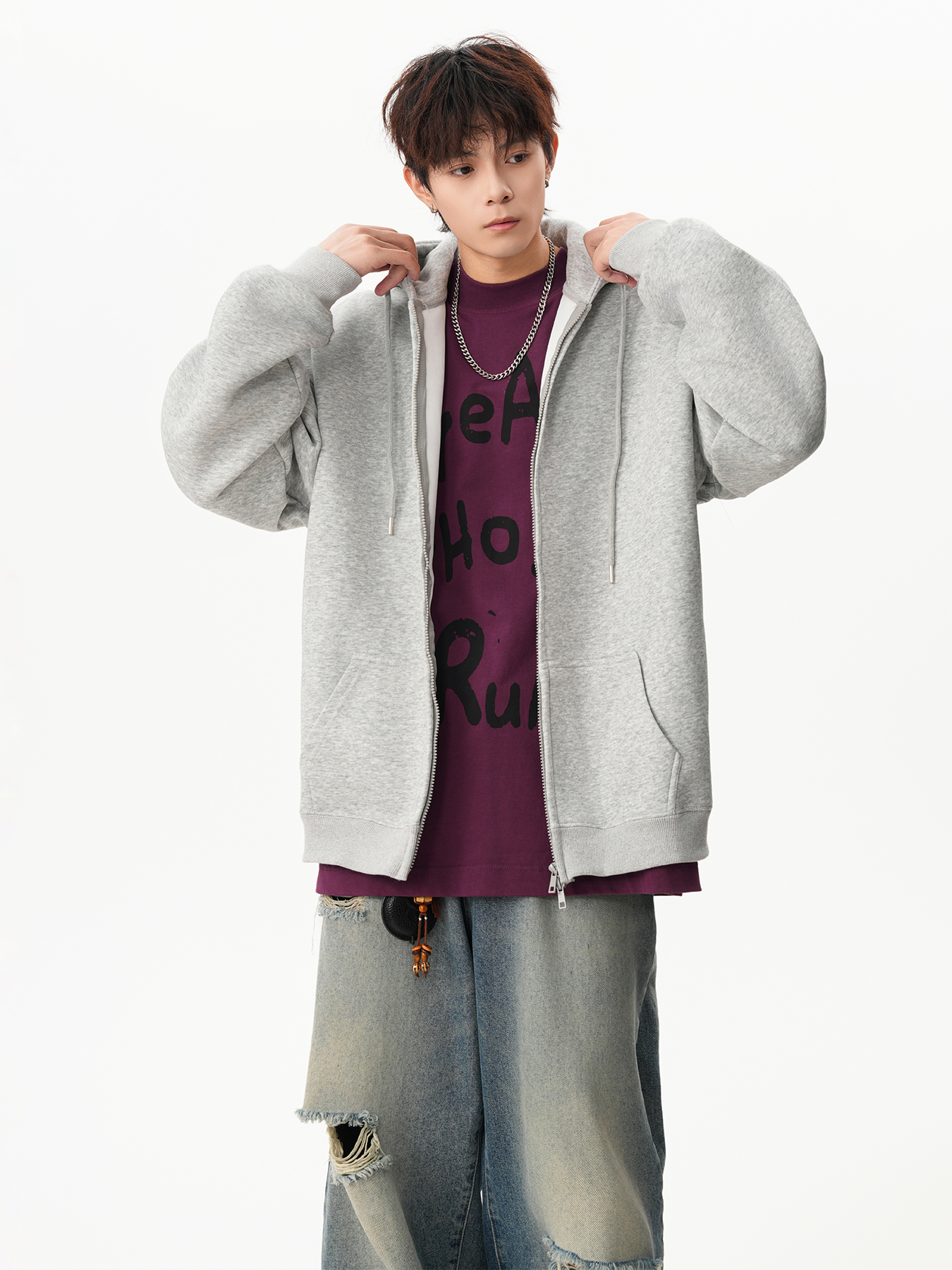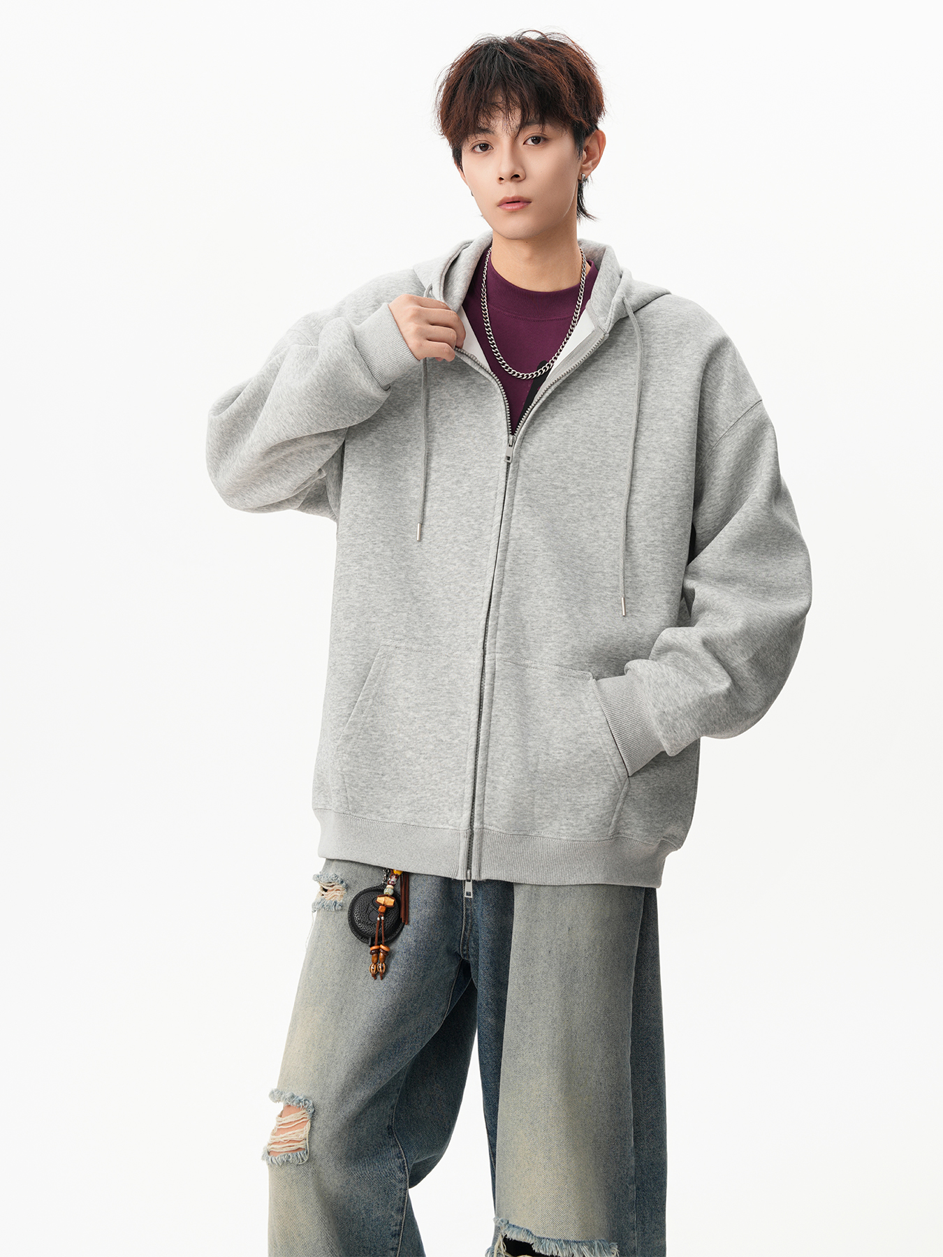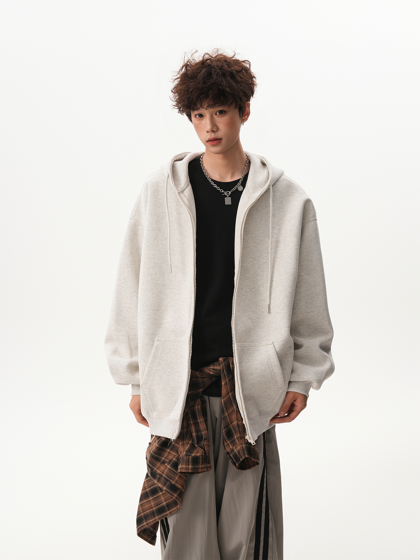 美式復古純色連帽衛衣男女秋季oversize情侶外套寬松百搭開衫上衣