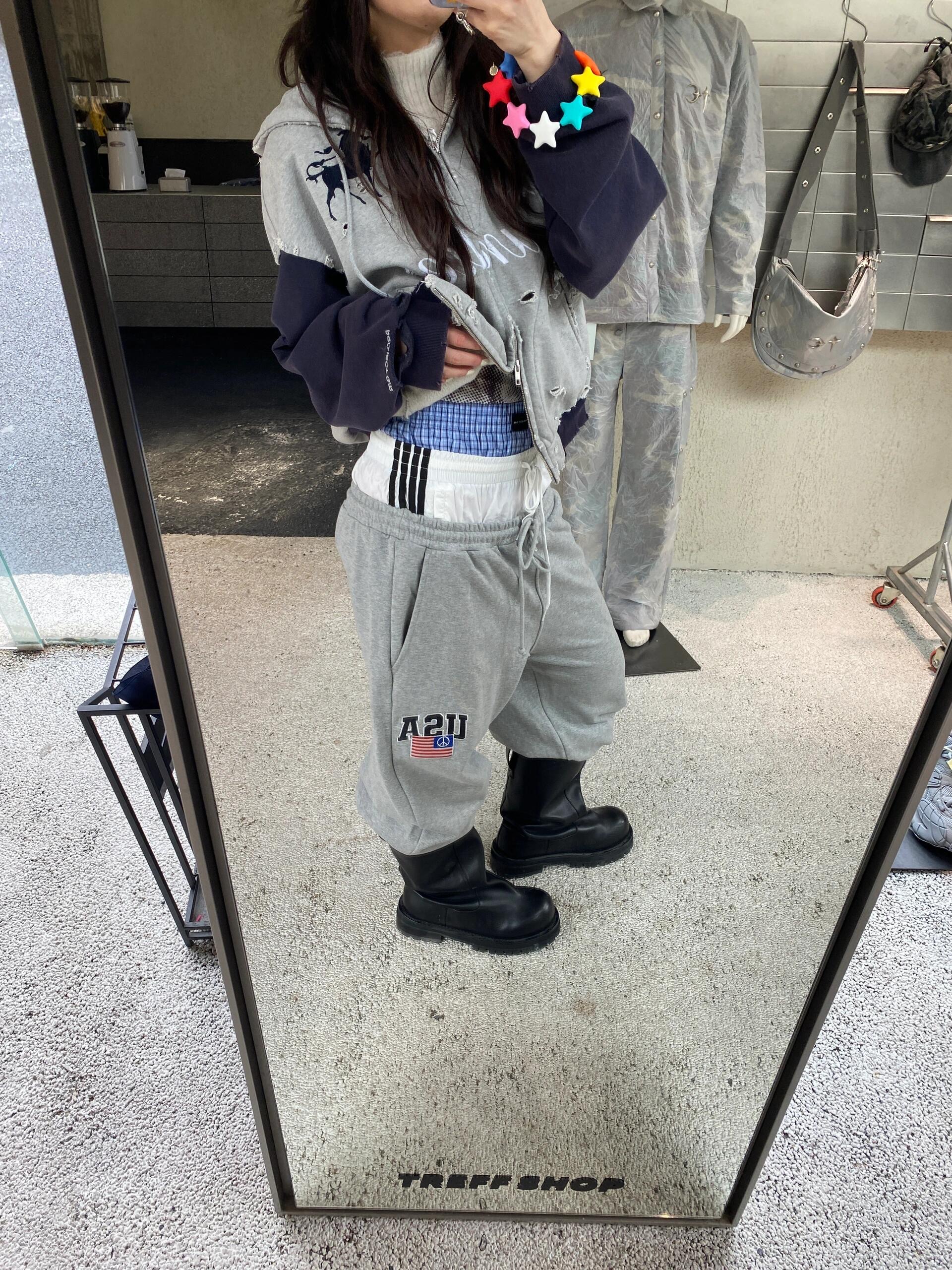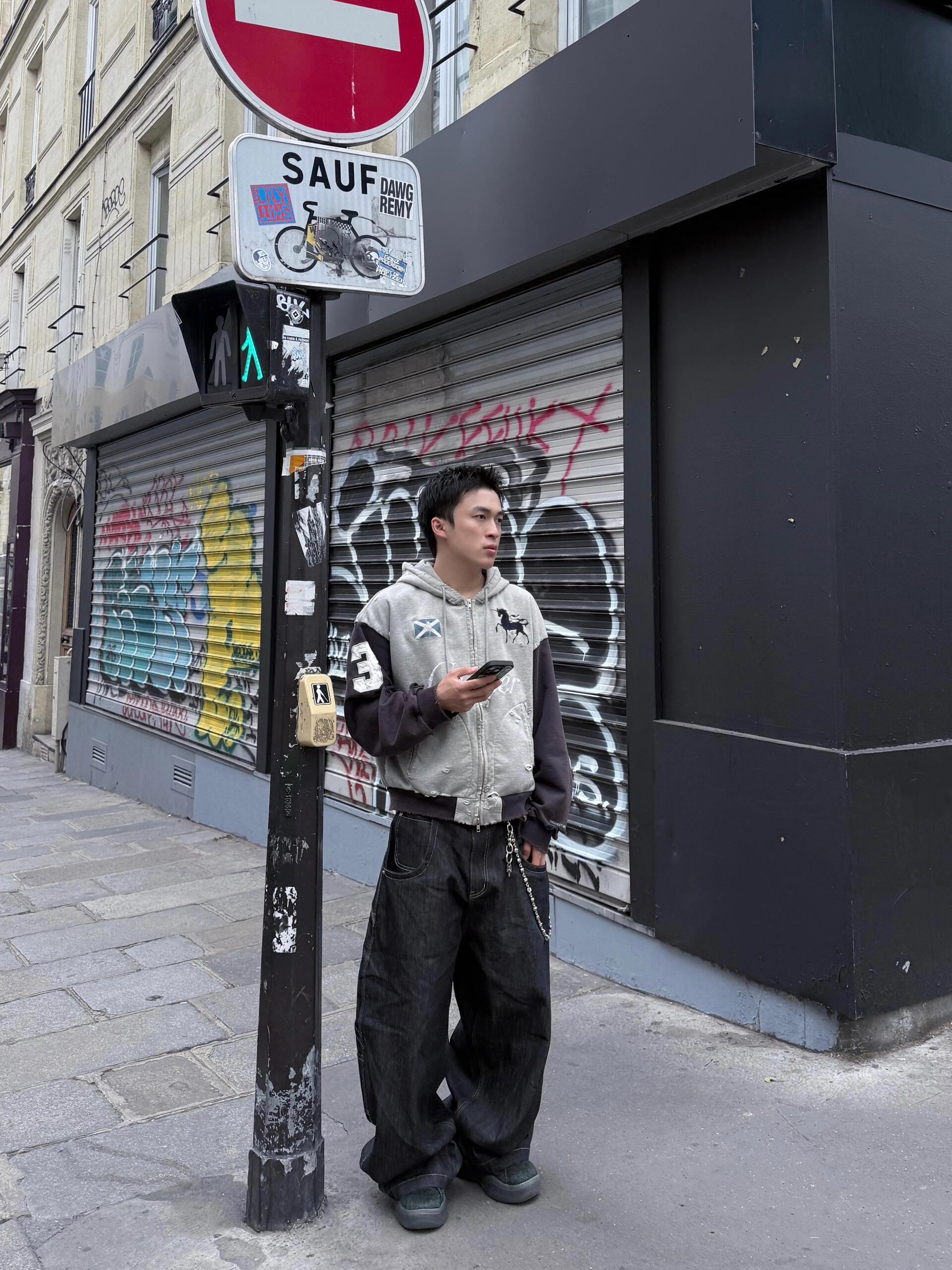 GRAILZ PROJECT GR美式水洗做舊破壞刺綉戰馬拉鍊連帽衫衛衣外套