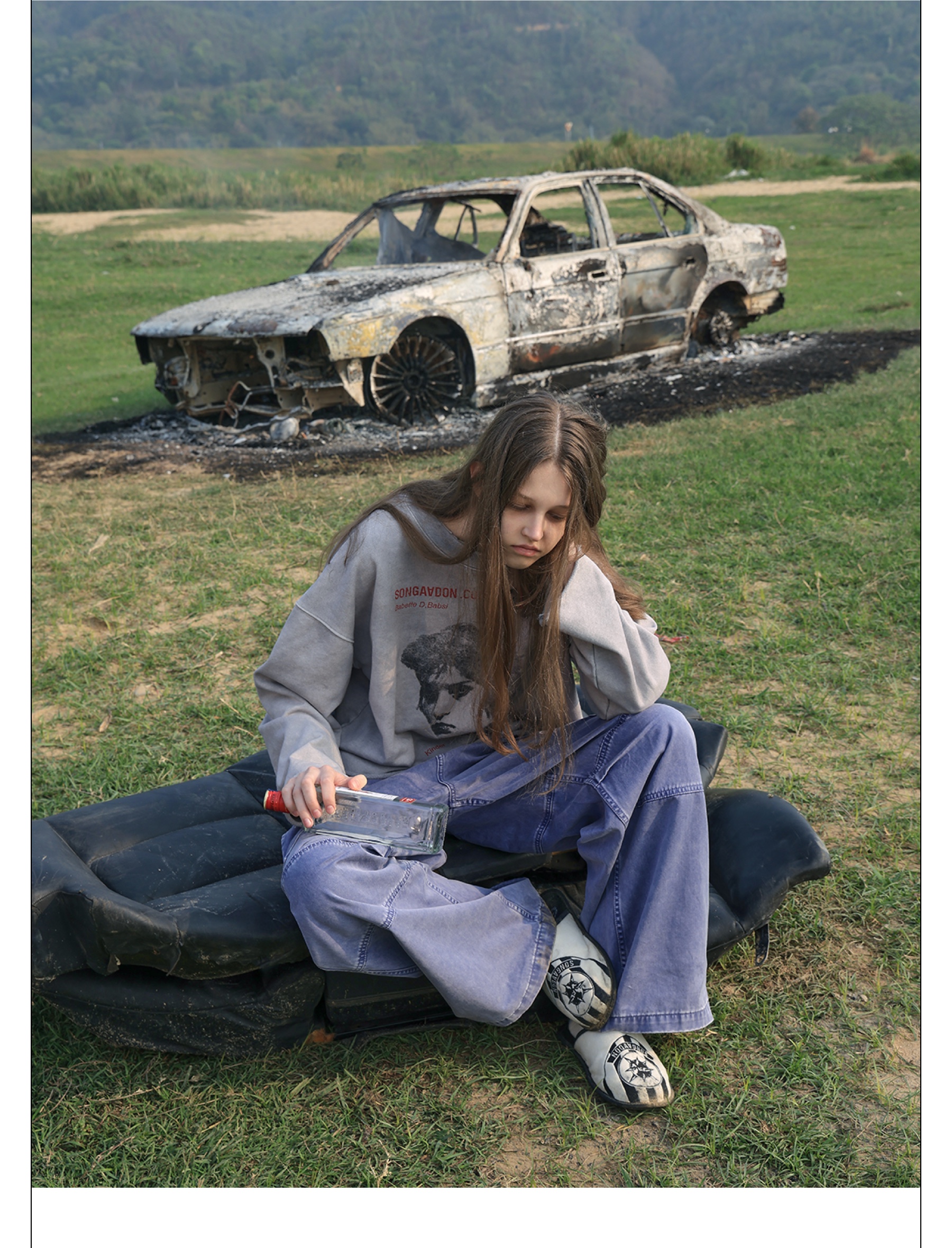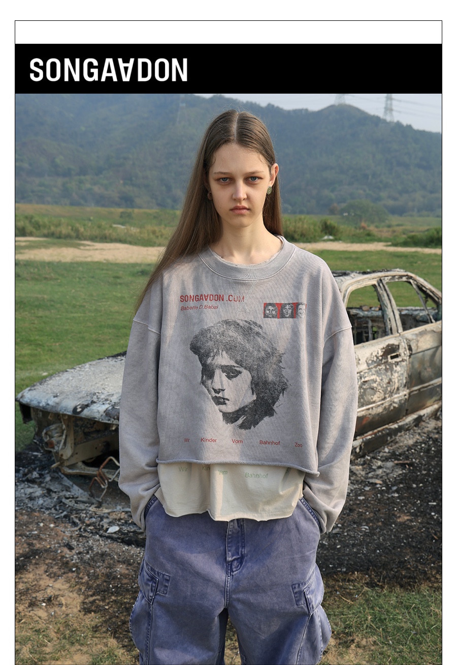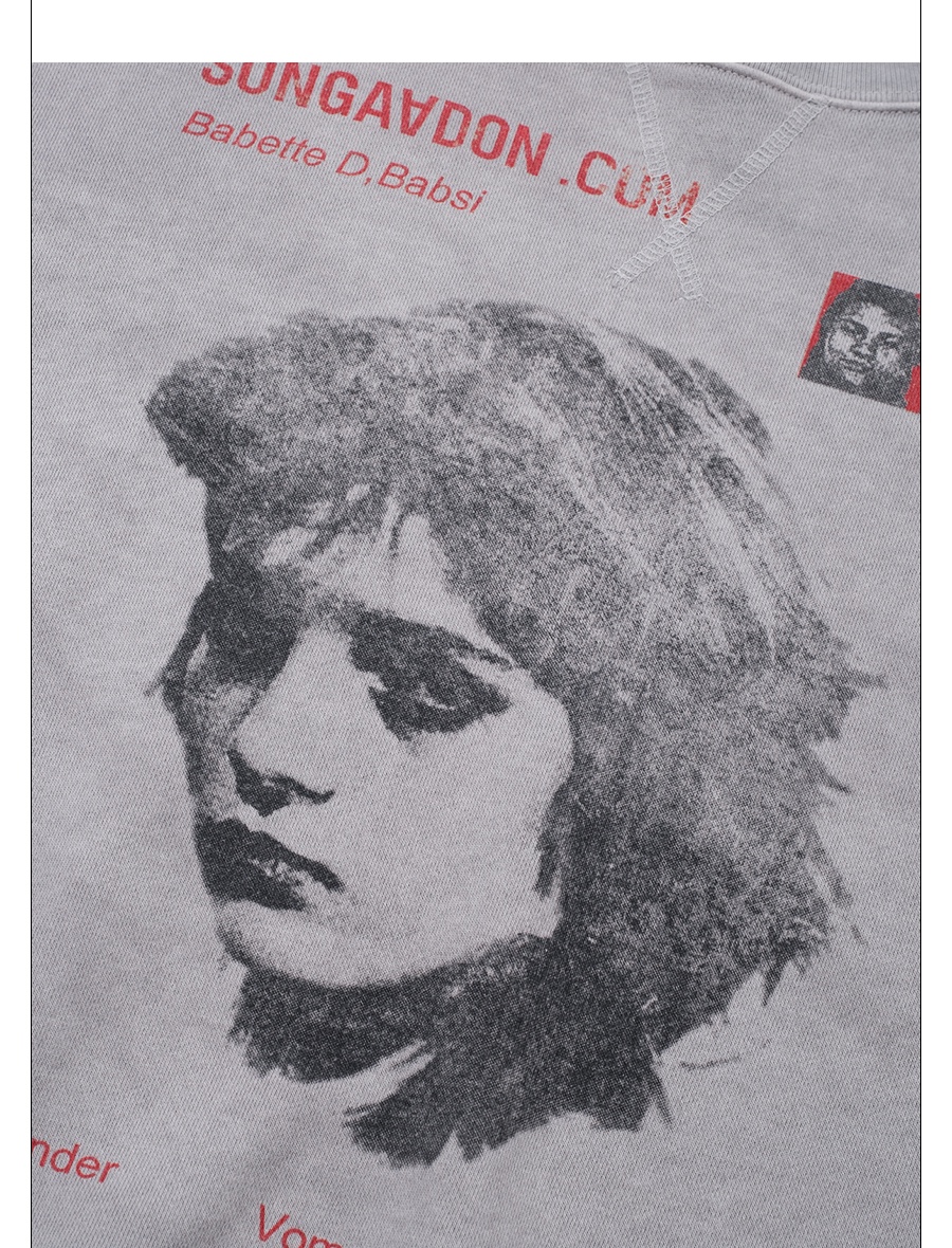 SONGAADON 25FW Babsi人像印花水洗套頭衛衣