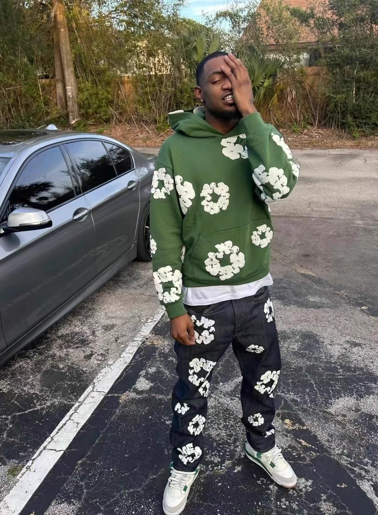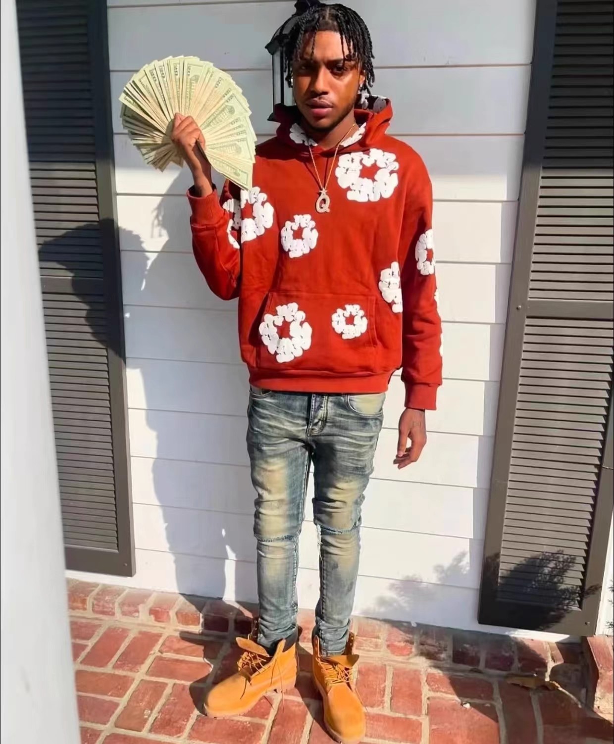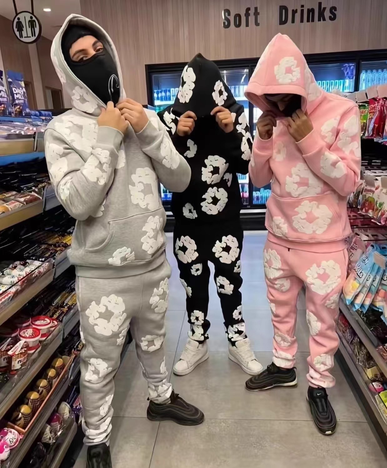 高版本DENIM TEARS木棉花髮泡美式秋冬連帽加絨衛衣男女帽衫加厚