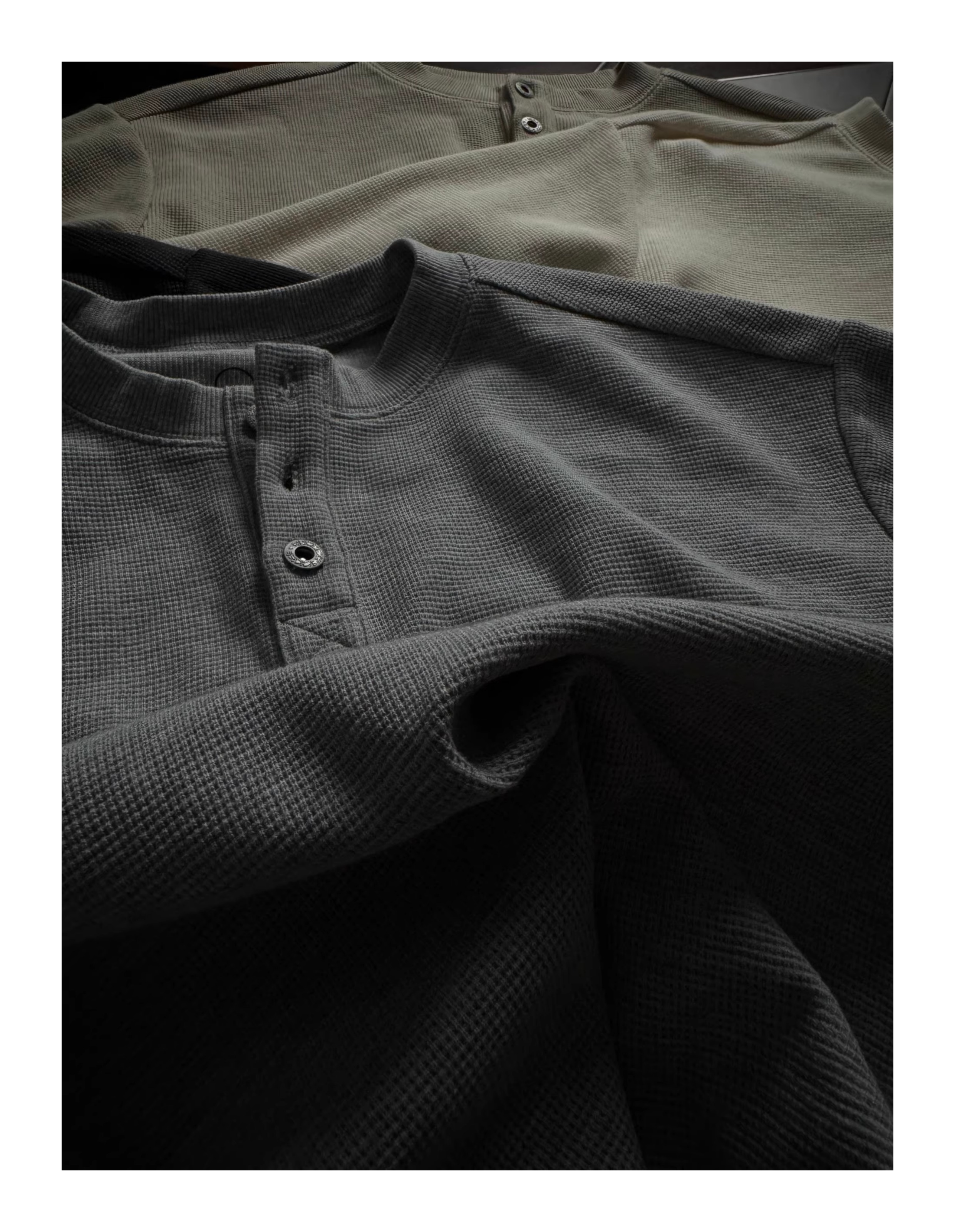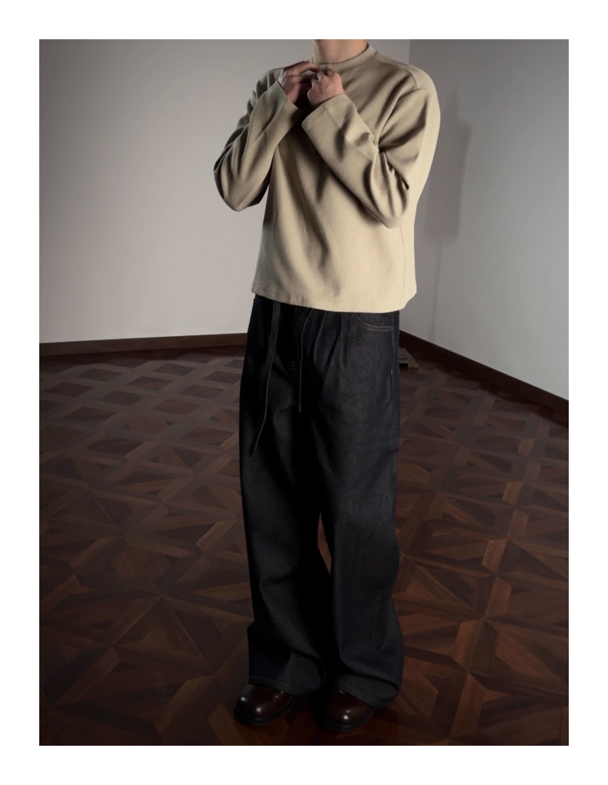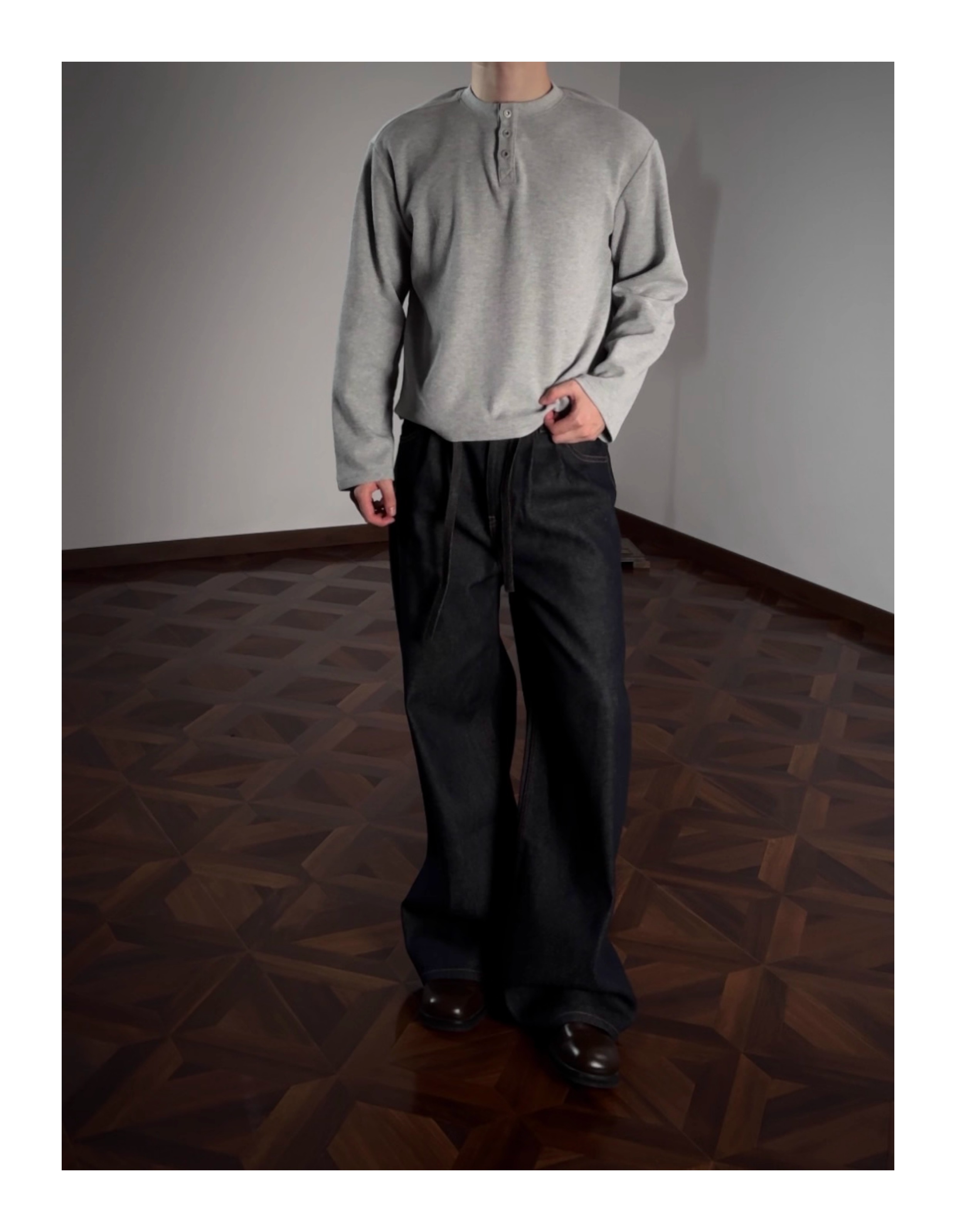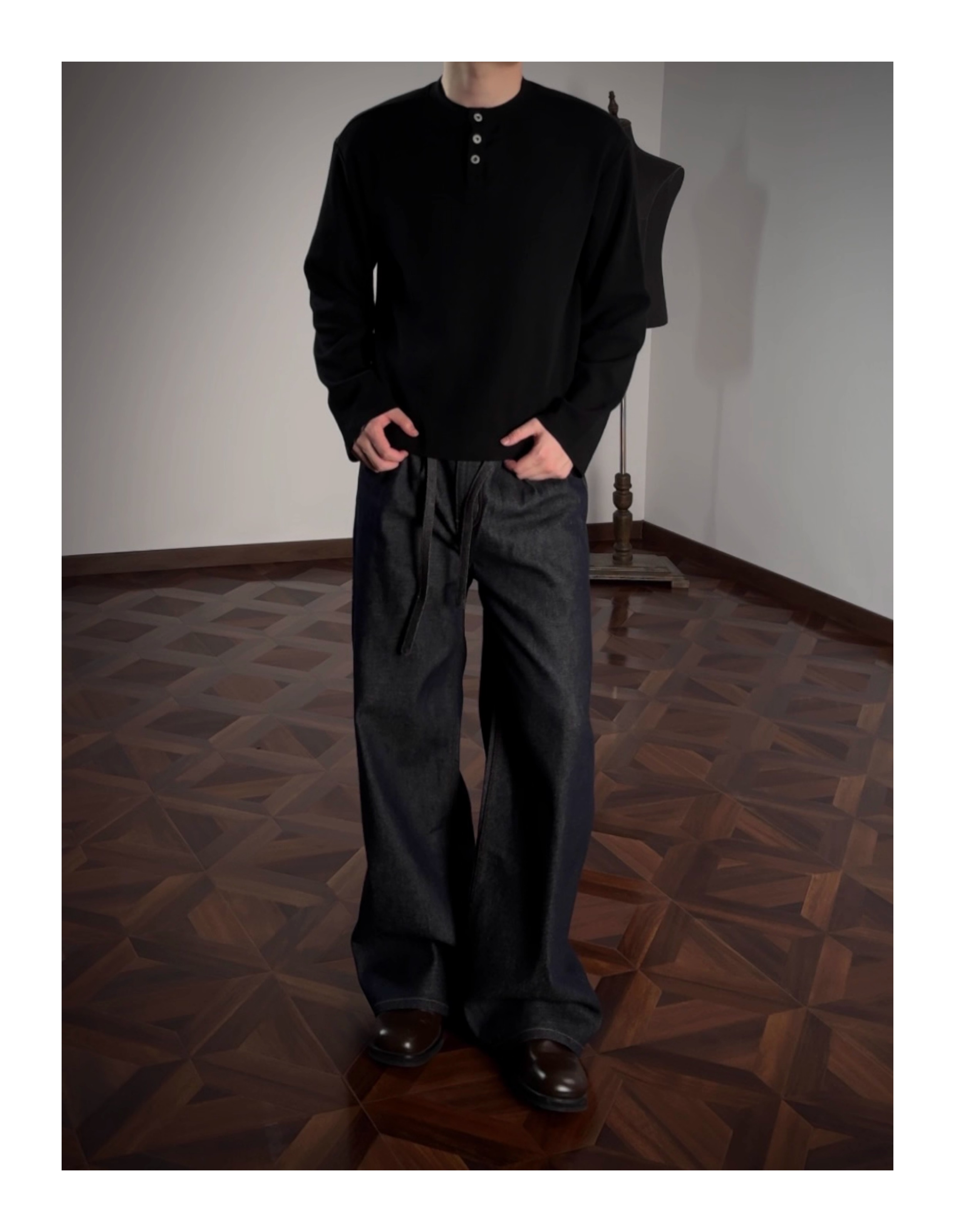 Oclin軟糯華夫格亨利領復古麥穗釦克羅風格基礎口糧長袖正肩微廓