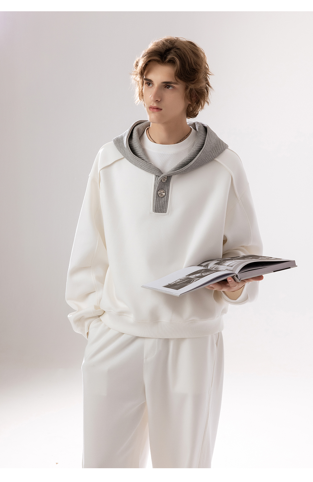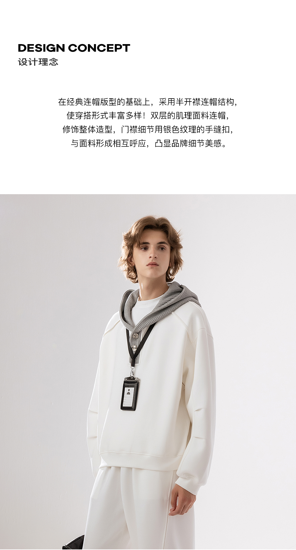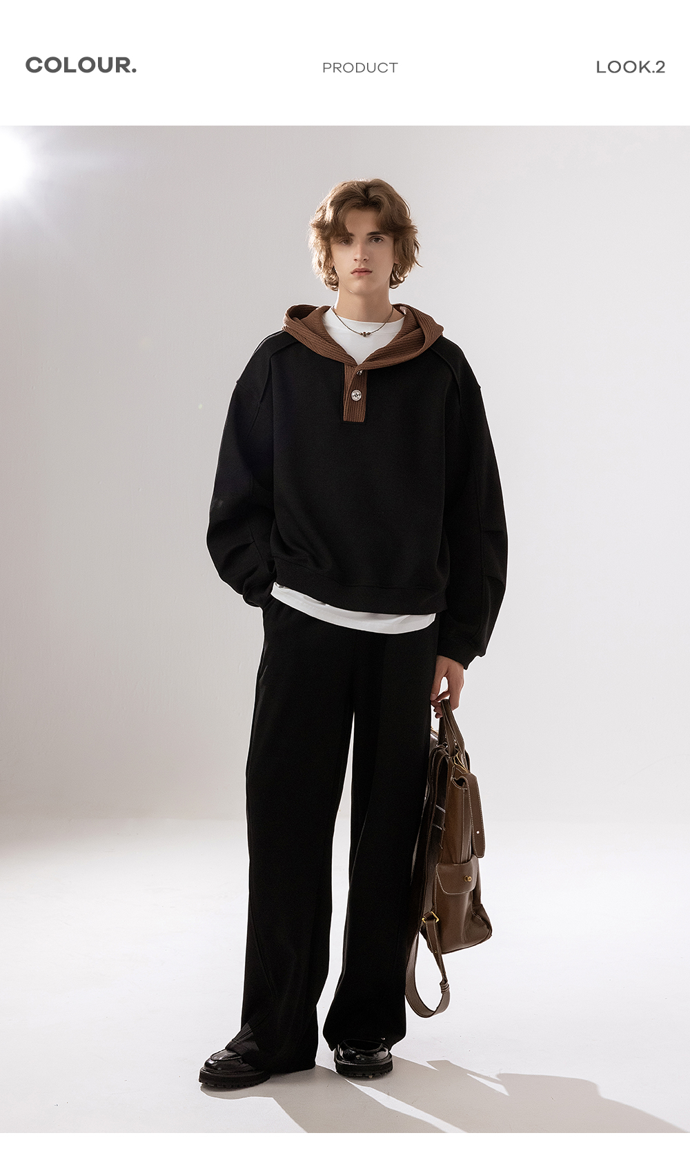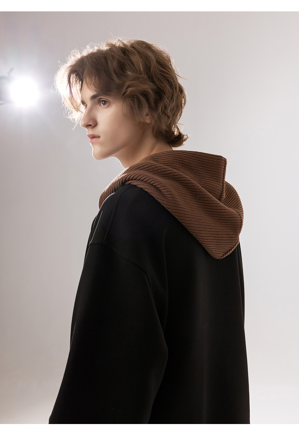 CHOR高級感休閒簡約半開襟連帽肌理針織拼色衛衣男生秋冬季上衣潮