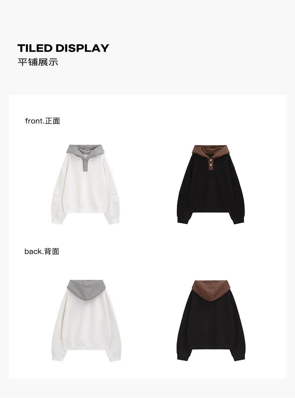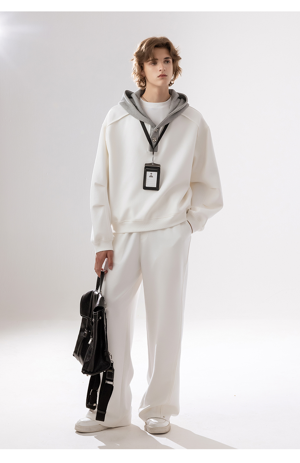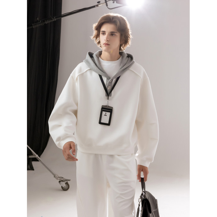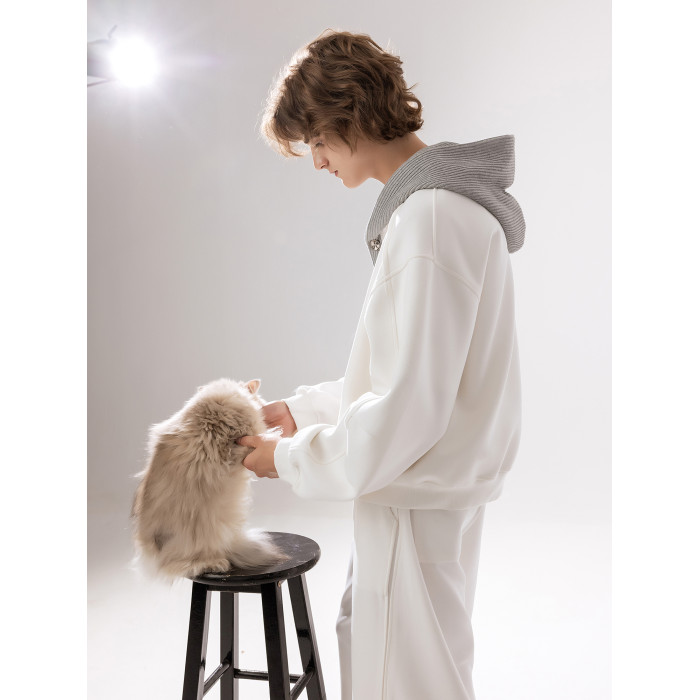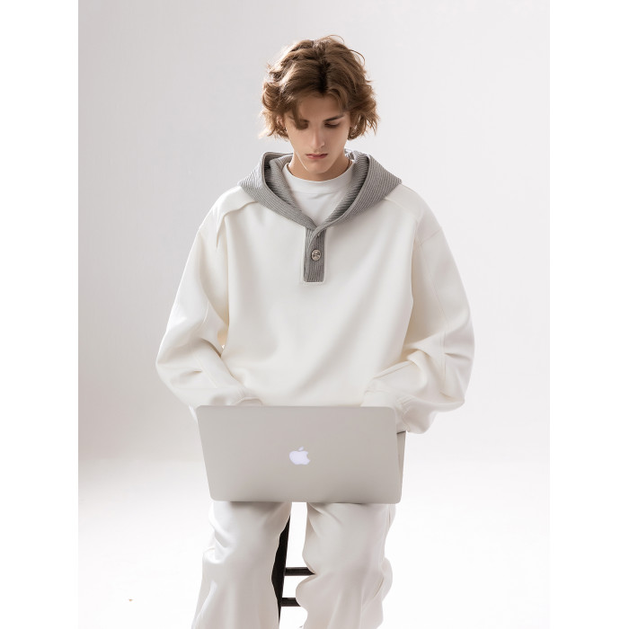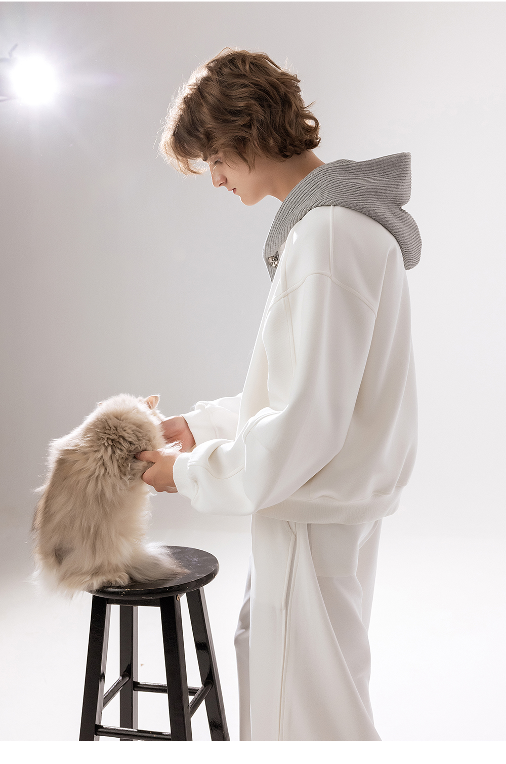 CHOR高級感休閒簡約半開襟連帽肌理針織拼色衛衣男生秋冬季上衣潮