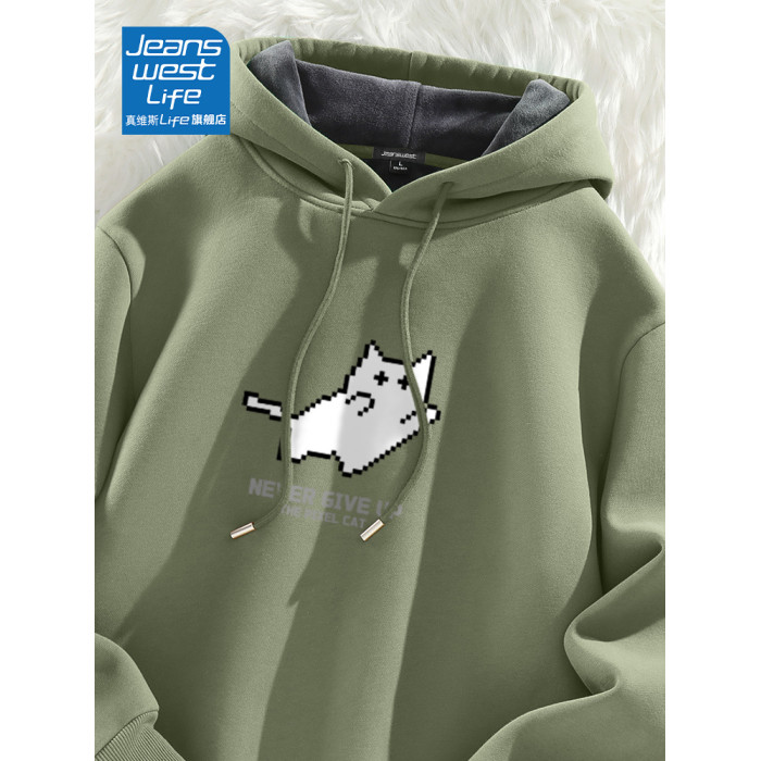 真維斯LIFE加絨衛衣男生冬季潮流百搭加厚保暖連帽上衣男款M
