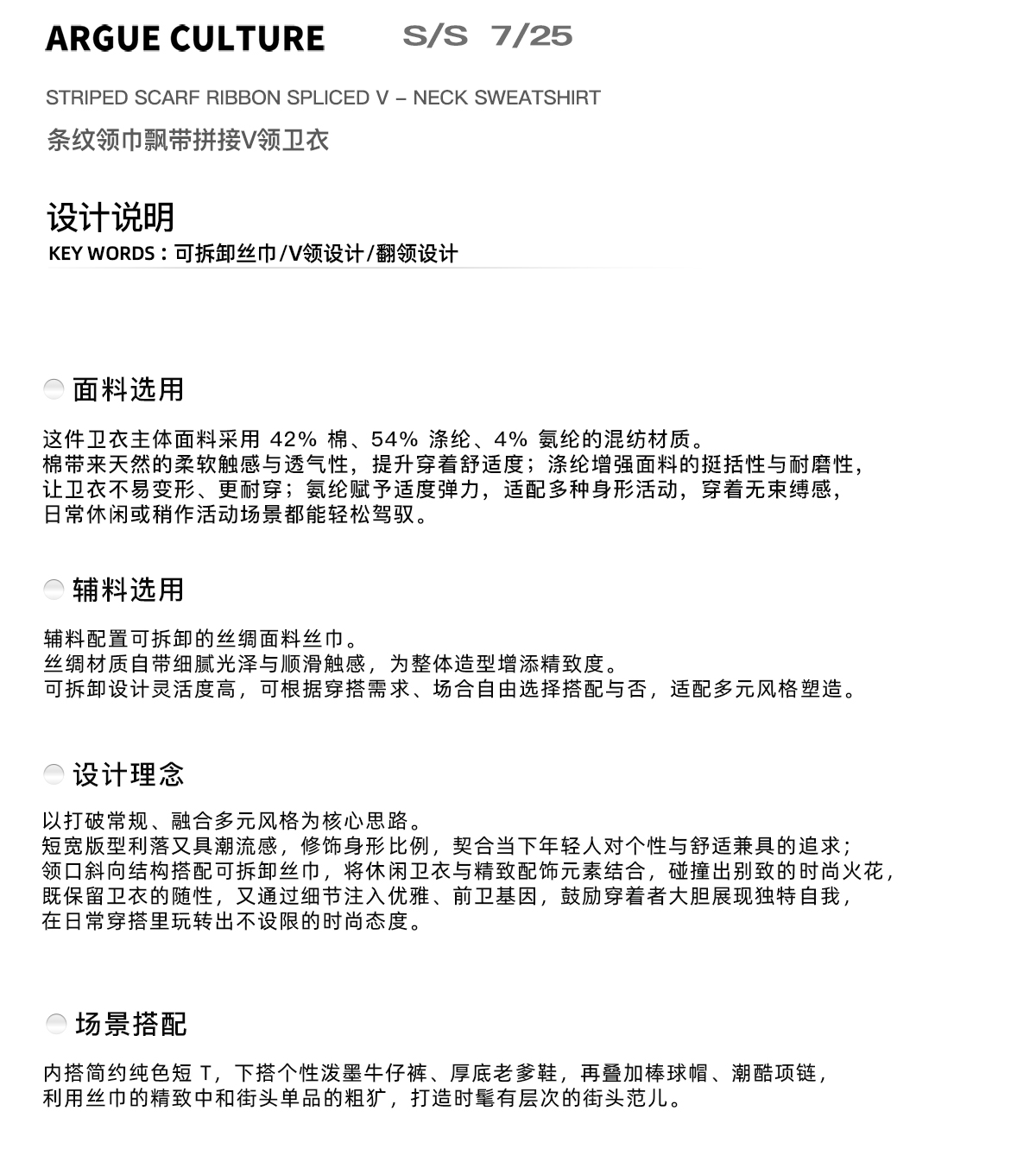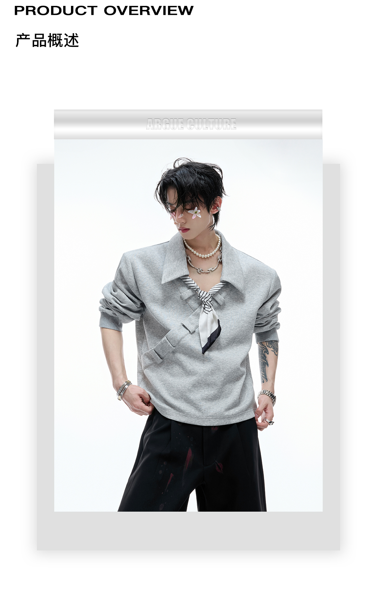 ArguE CulturE歸韻*條紋領巾飄帶拼接V領POLO衫寬松高級長袖衛衣