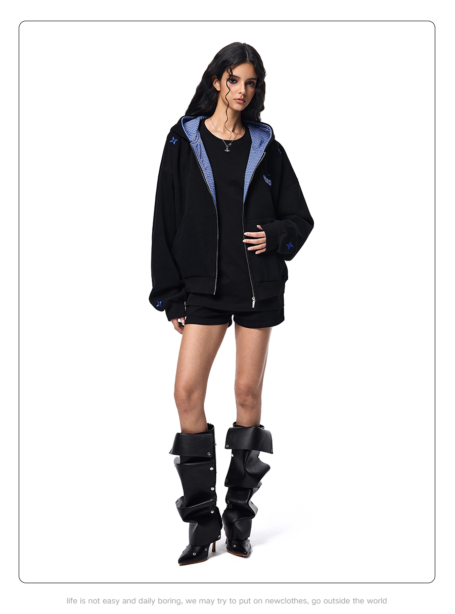 【Achock官方店】美式復古新款格子拼接開衫外套潮牌重磅情侶衛衣