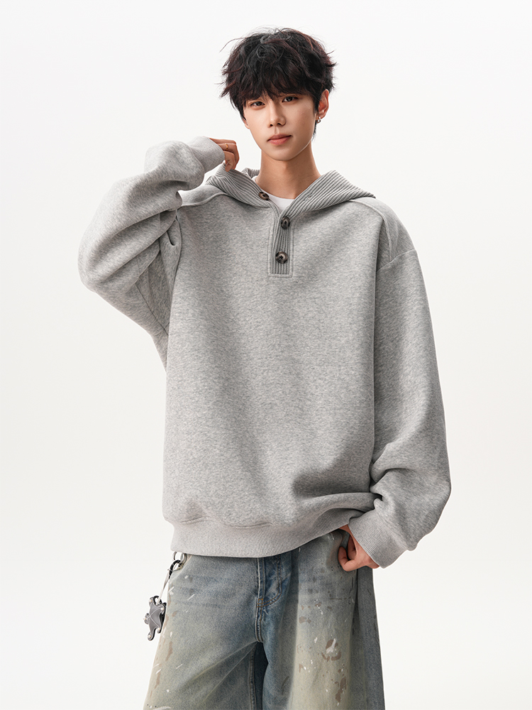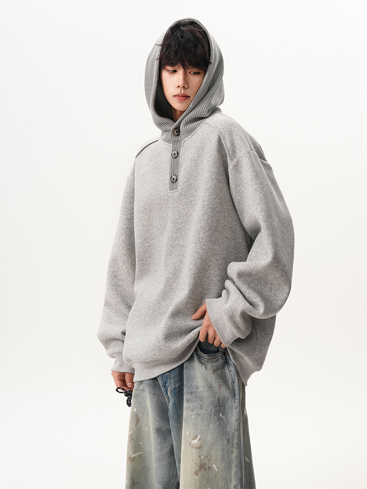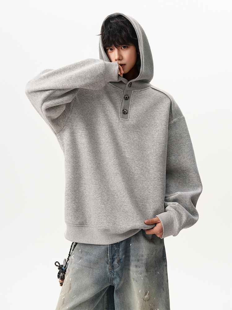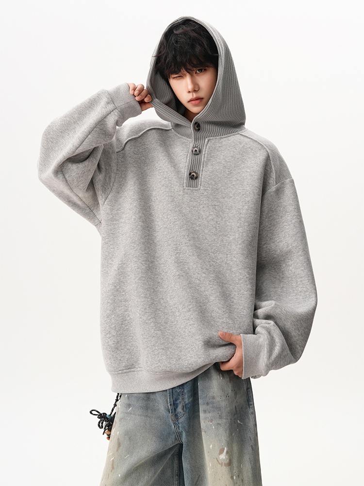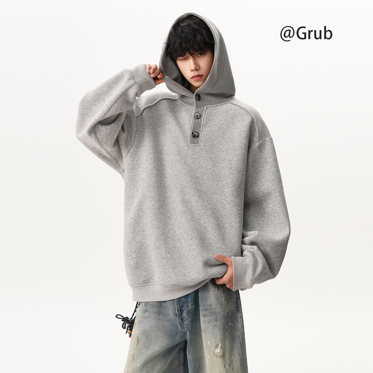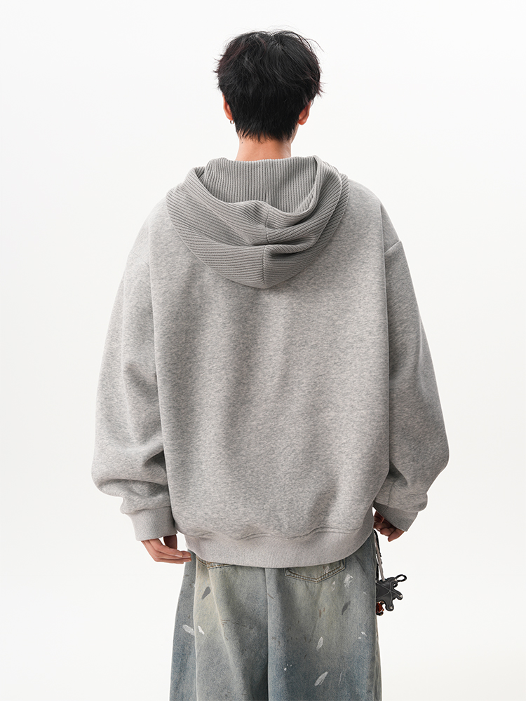 重磅針織連帽衛衣男女秋季美式復古灰色情侶外套寬松大碼運動上衣